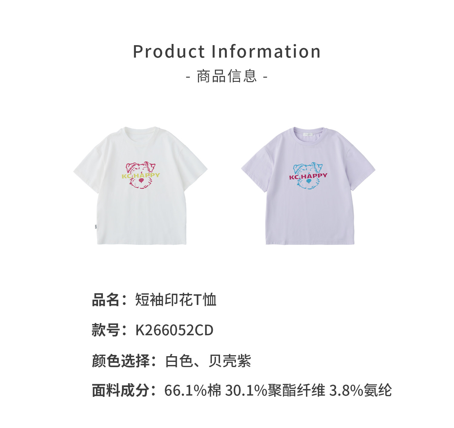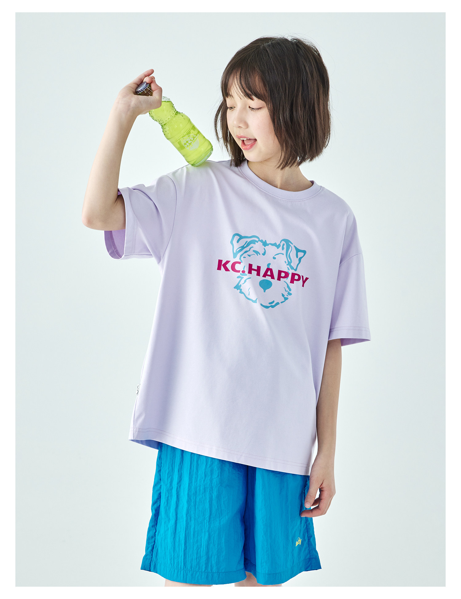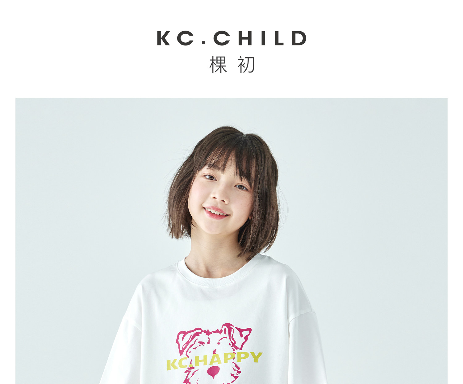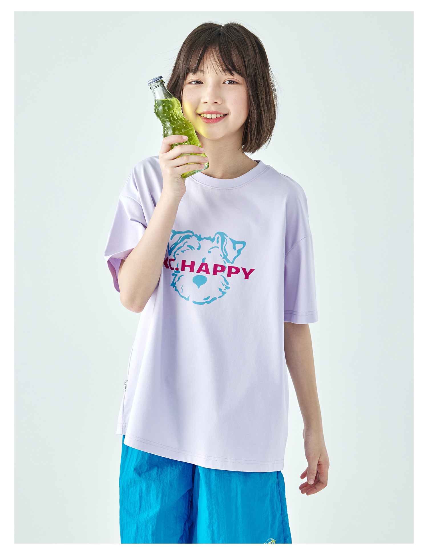 棵初26年夏季新款中大女童小狗印花凉感T恤7A抗菌UPF50+防晒短袖