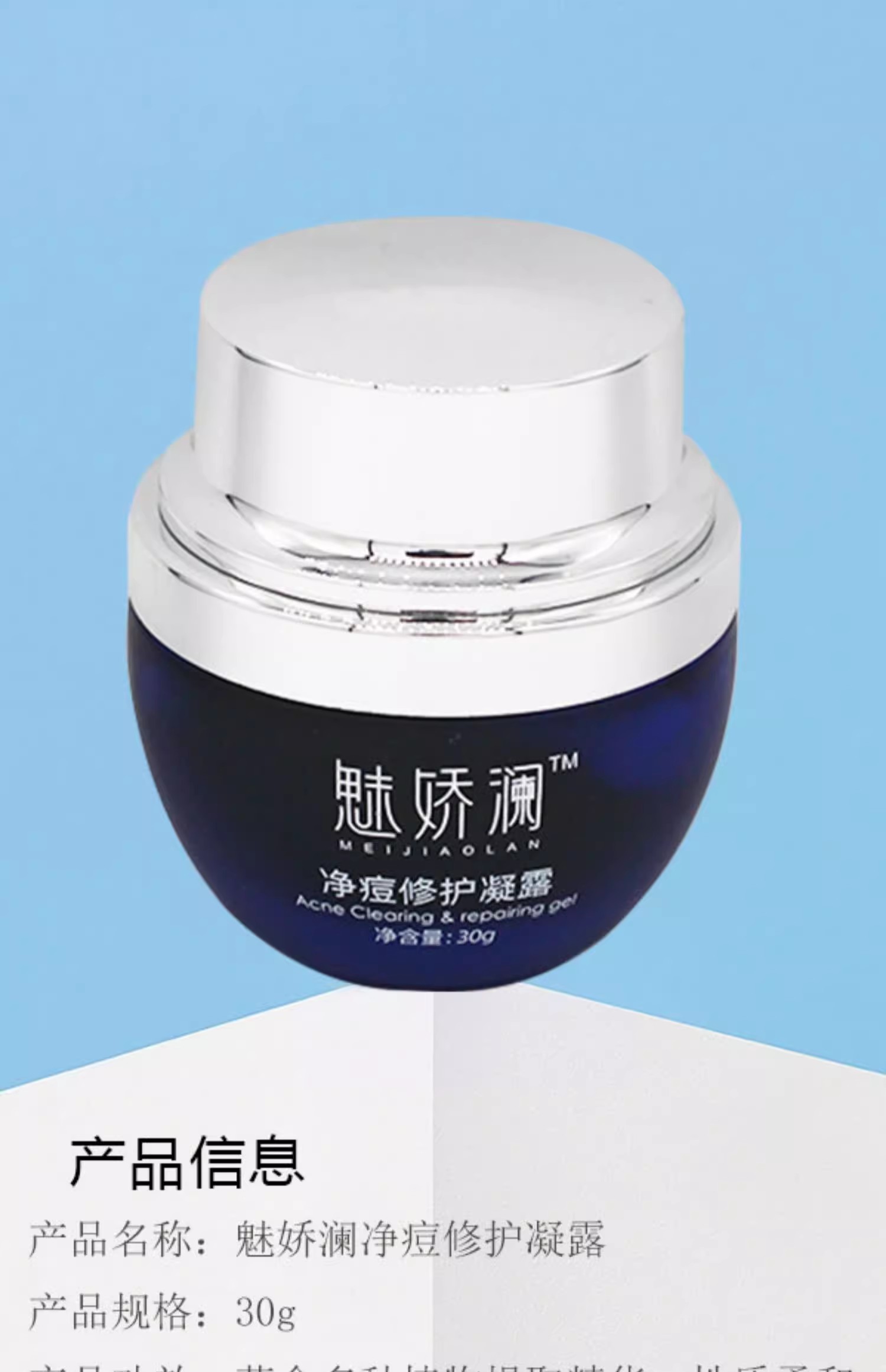 魅娇澜净痘修护凝露新品苦参银杏凝露30g美容院正品包邮改善痘痘肌肤舒缓镇定滋润