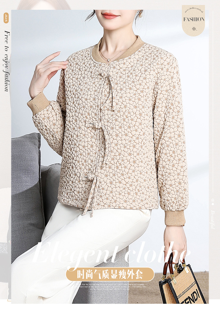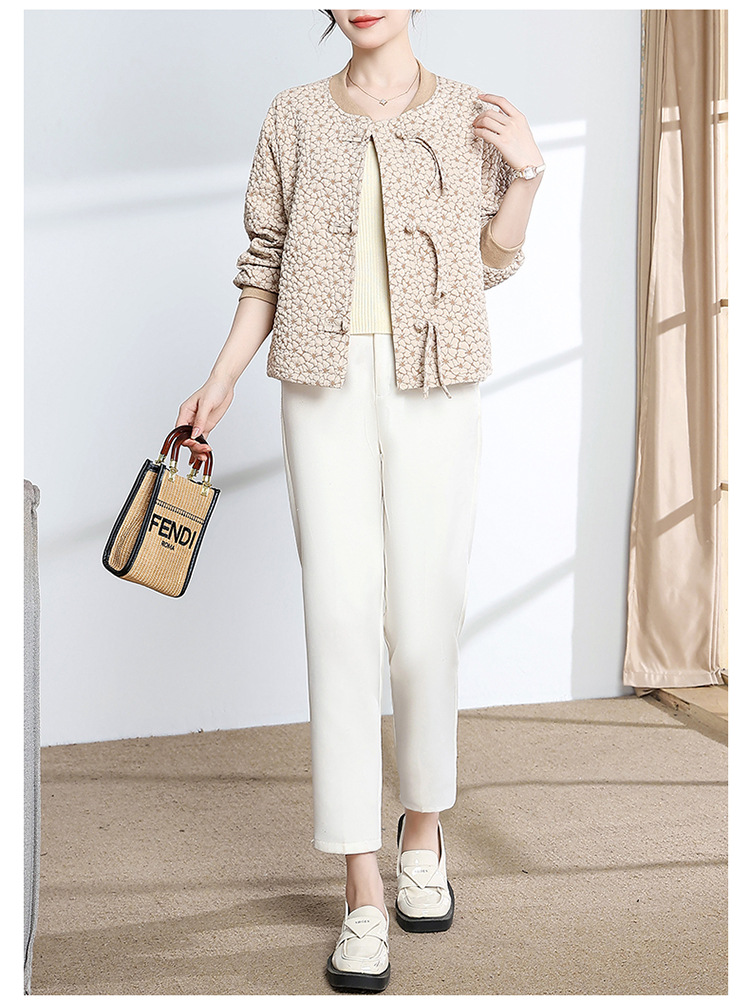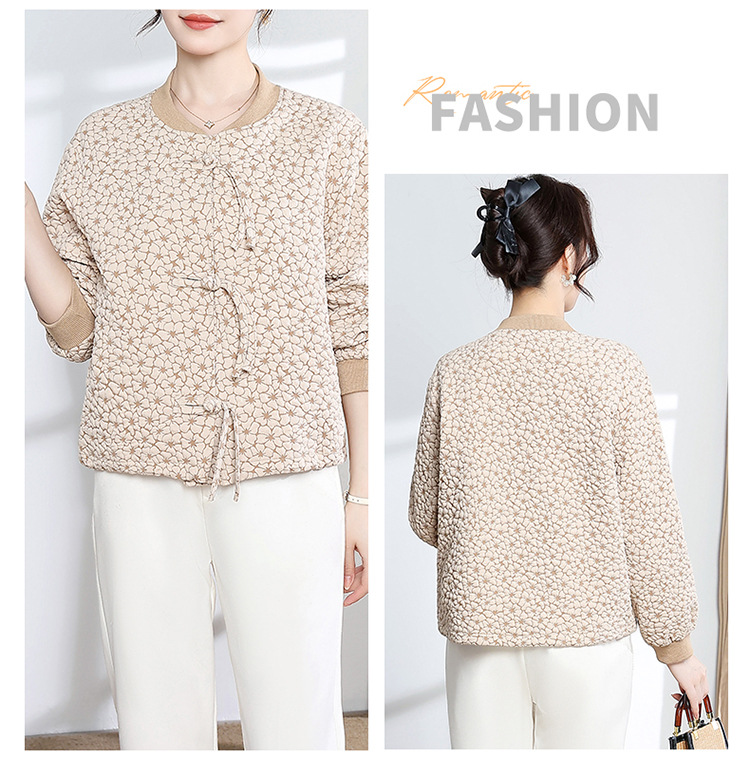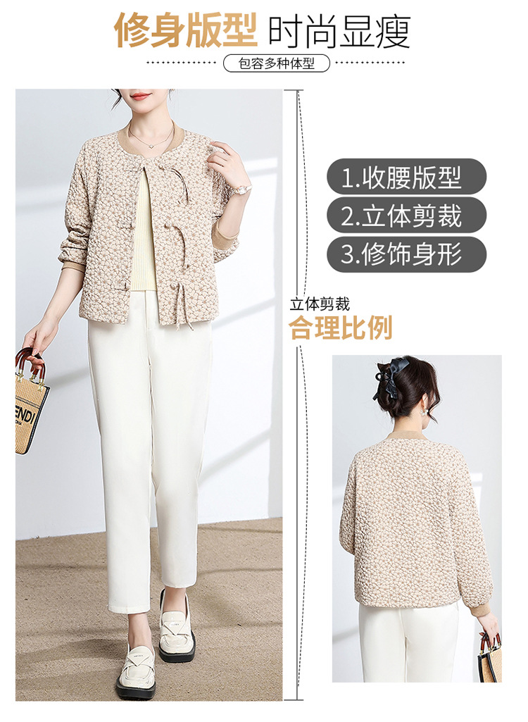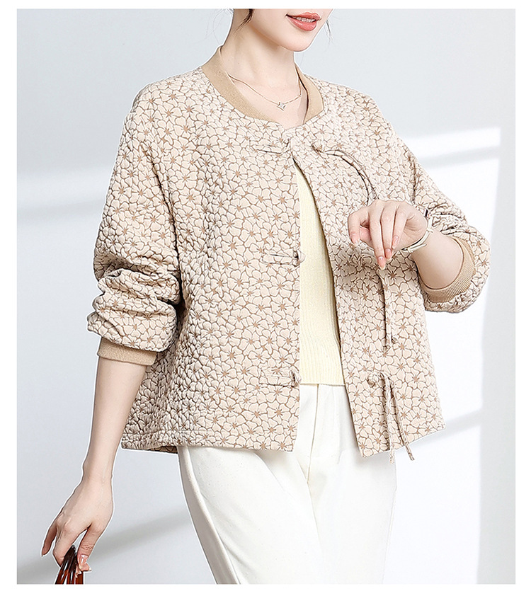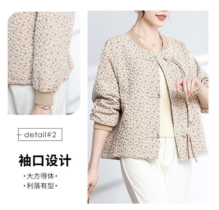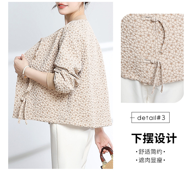 复古盘扣小外套,秋季新款长袖低领开衫休闲上衣提花时尚气质外搭QYM-JJ-C1038-Y