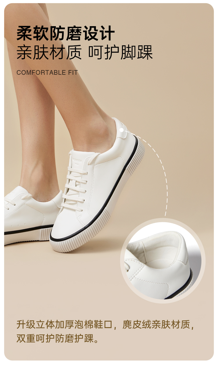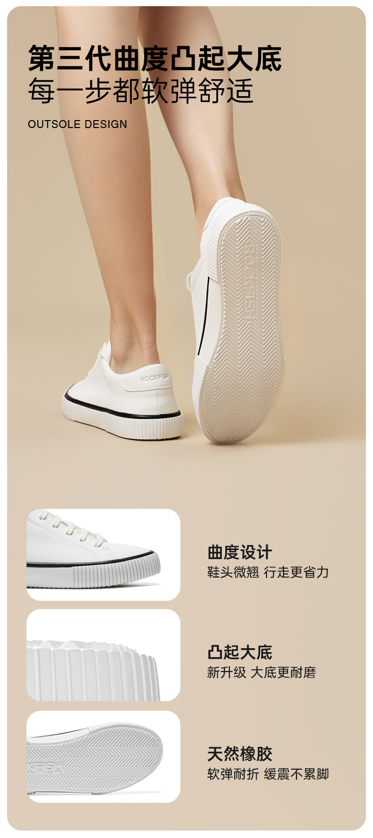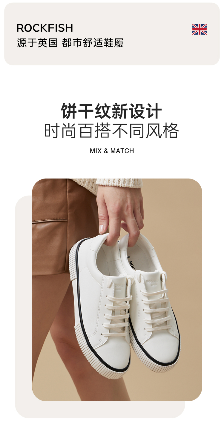 Rockfish英国775不怕湿皮面云朵软糯平底休闲鞋小白鞋