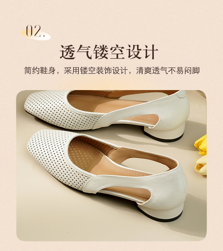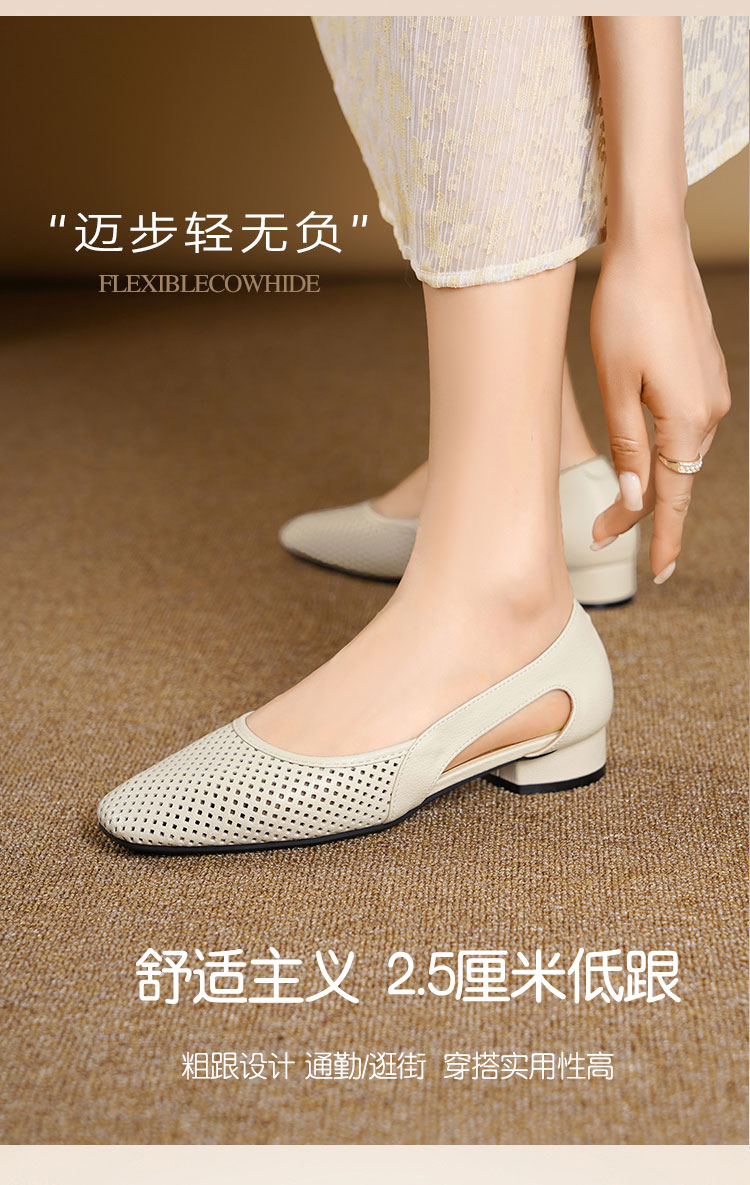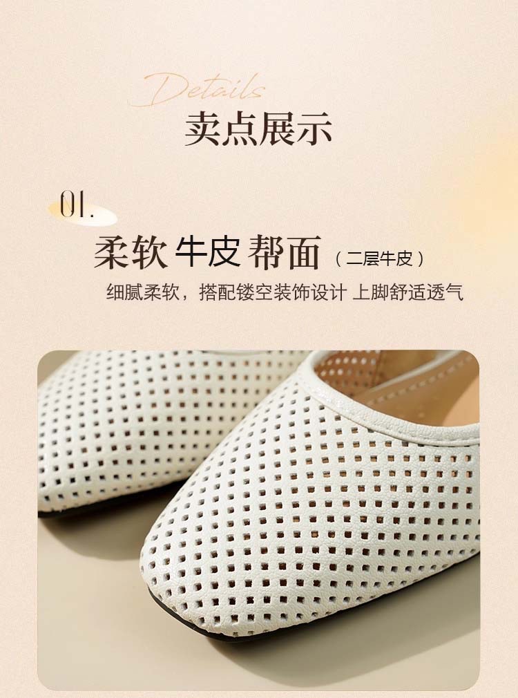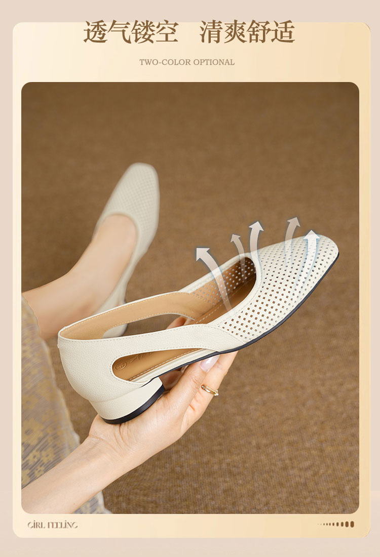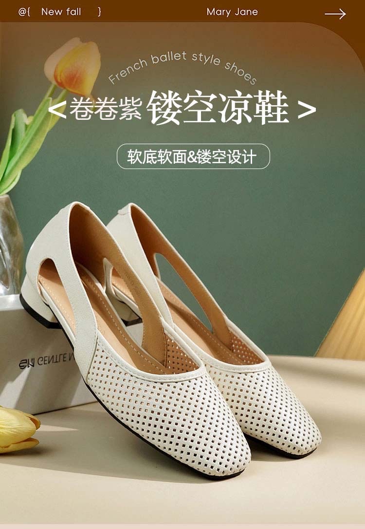 卷卷紫透气镂空气质凉鞋 优质柔软镂空皮面透气清爽不闷汗 小方头设计上脚显瘦 气质温柔百搭