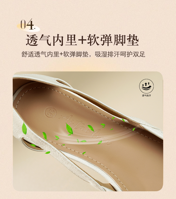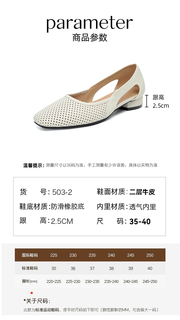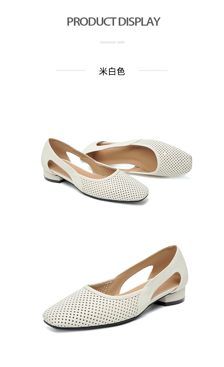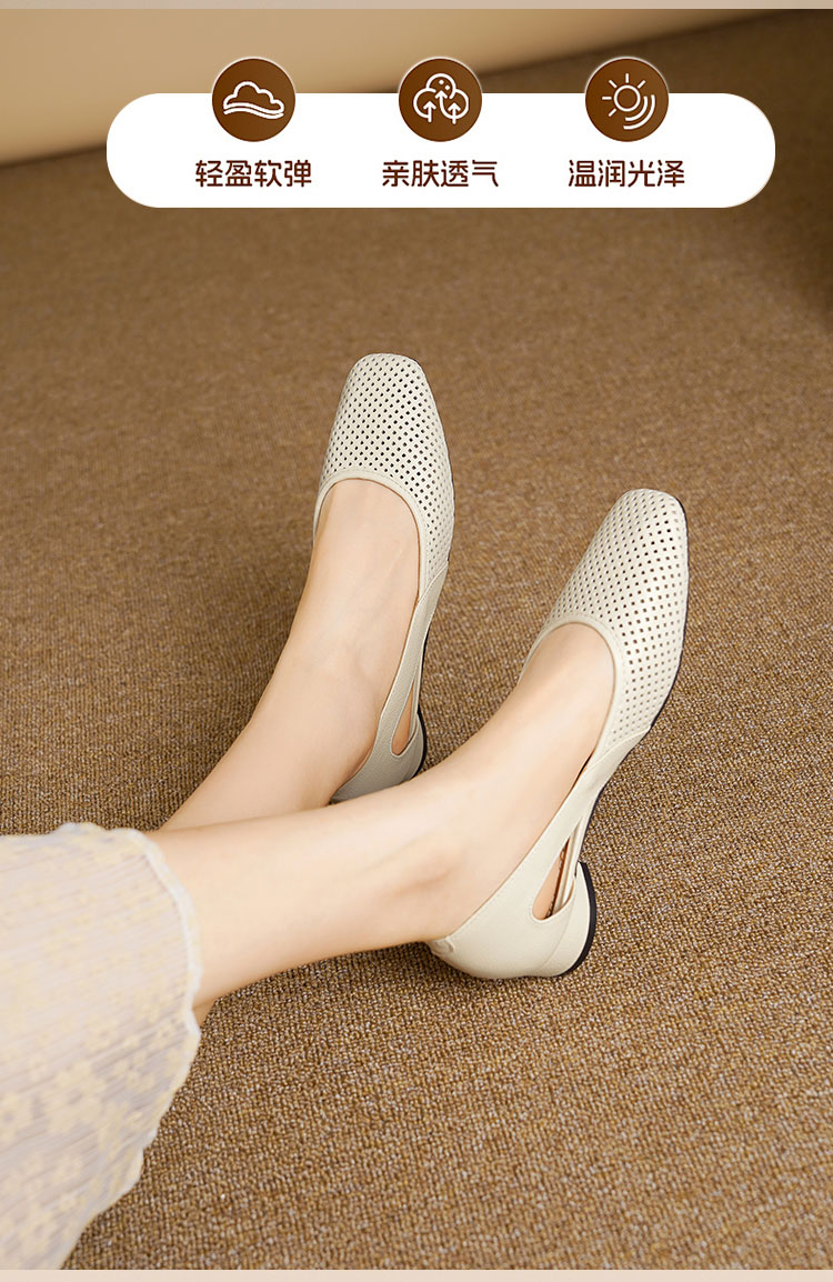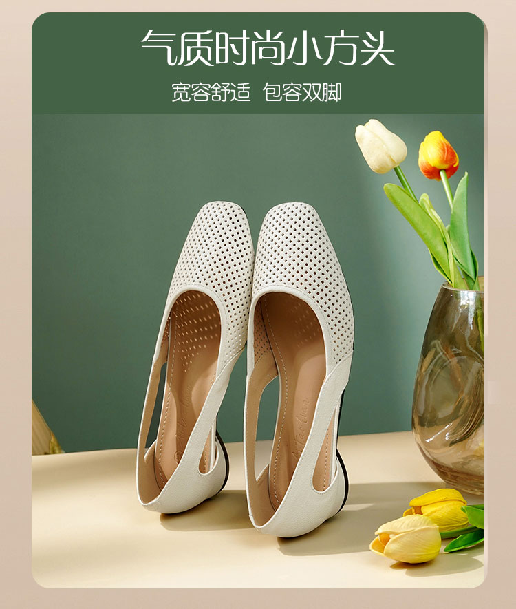 卷卷紫透气镂空气质凉鞋 优质柔软镂空皮面透气清爽不闷汗 小方头设计上脚显瘦 气质温柔百搭