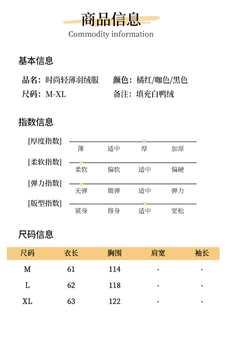 QYM 25KB797-Y时尚轻薄羽绒服韩版宽松加白鸭绒保暖羽绒服