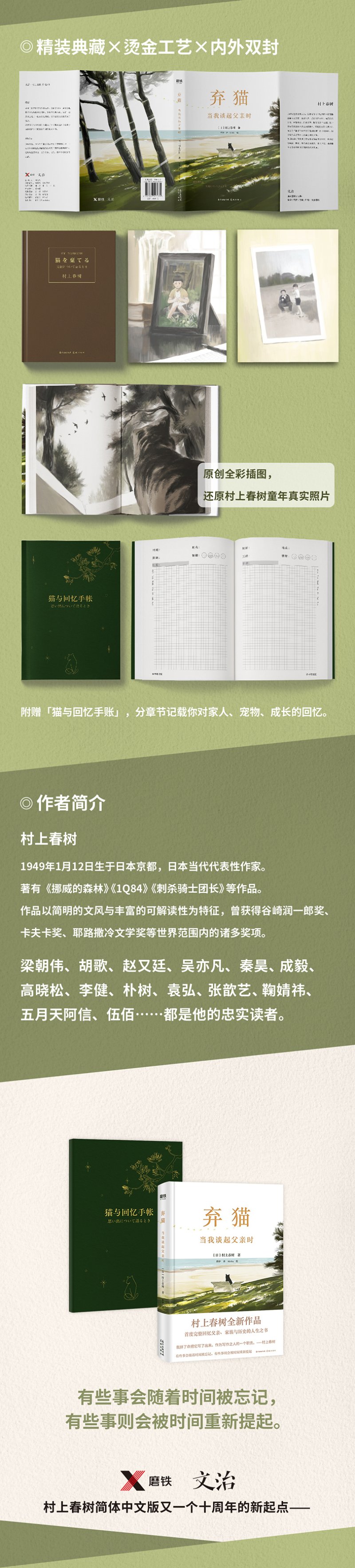 随书附赠“猫与回忆手账”,分栏目记载自己对家人、宠物、成长的回忆,完成一本属于自己的《弃猫》。