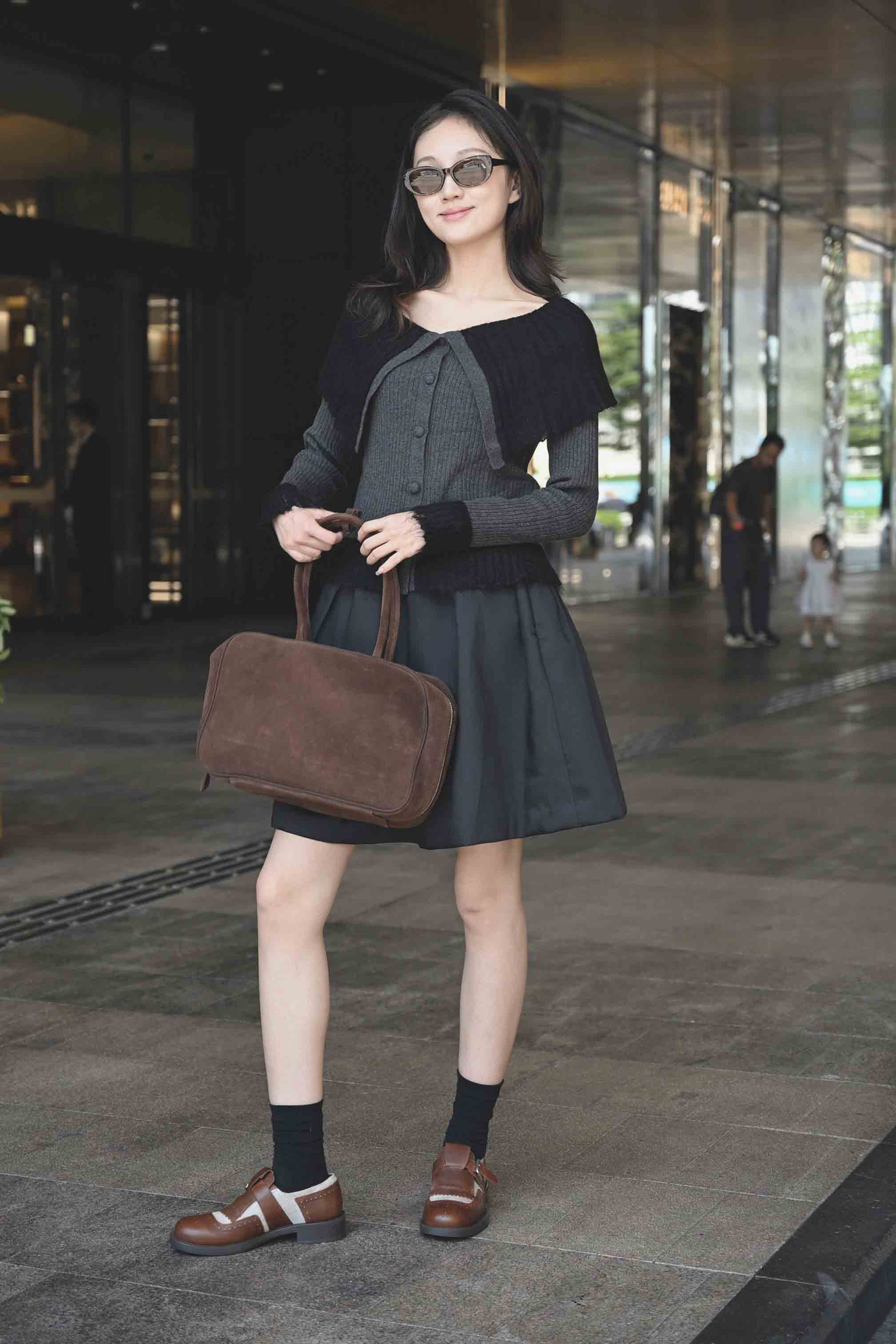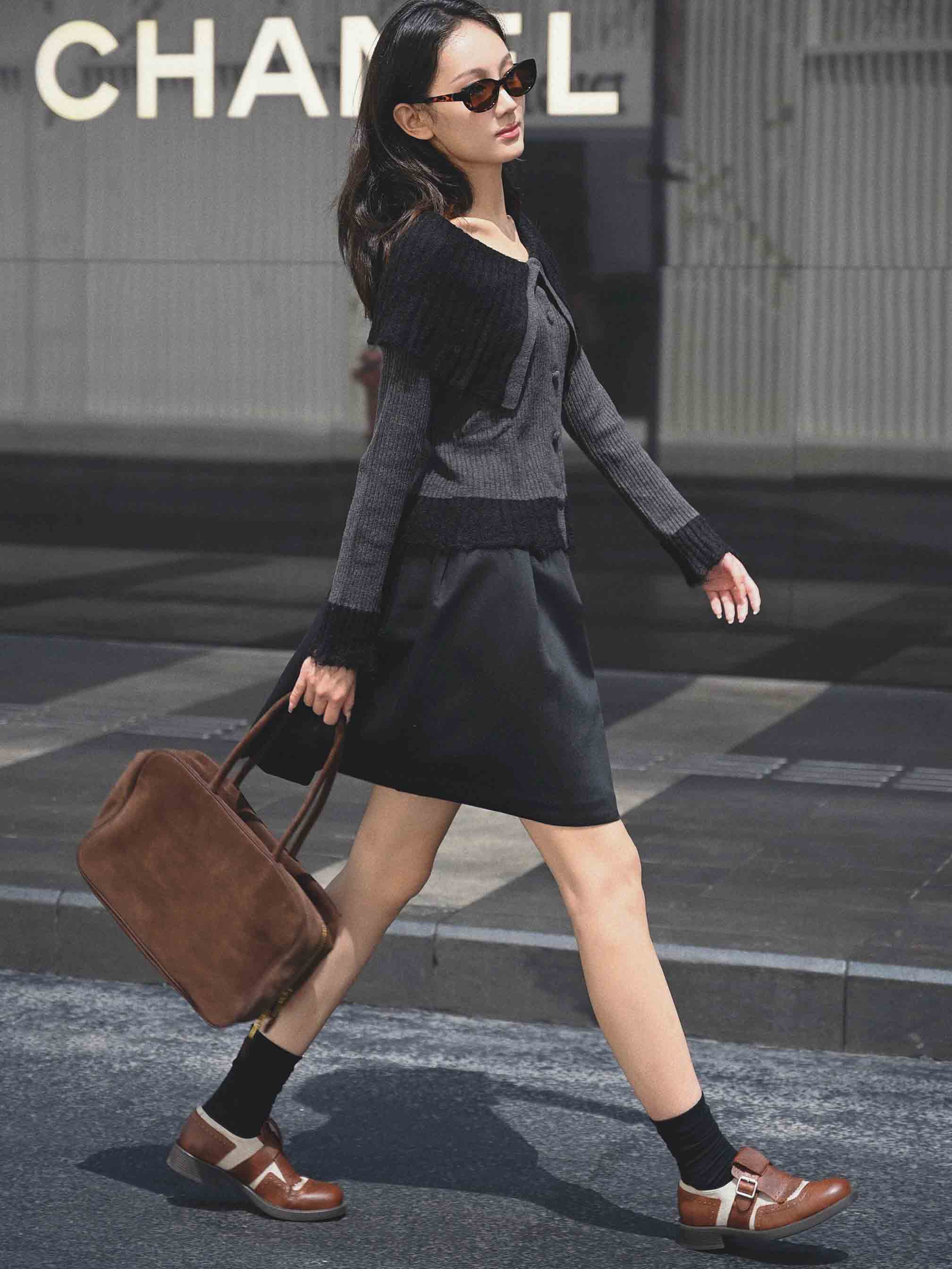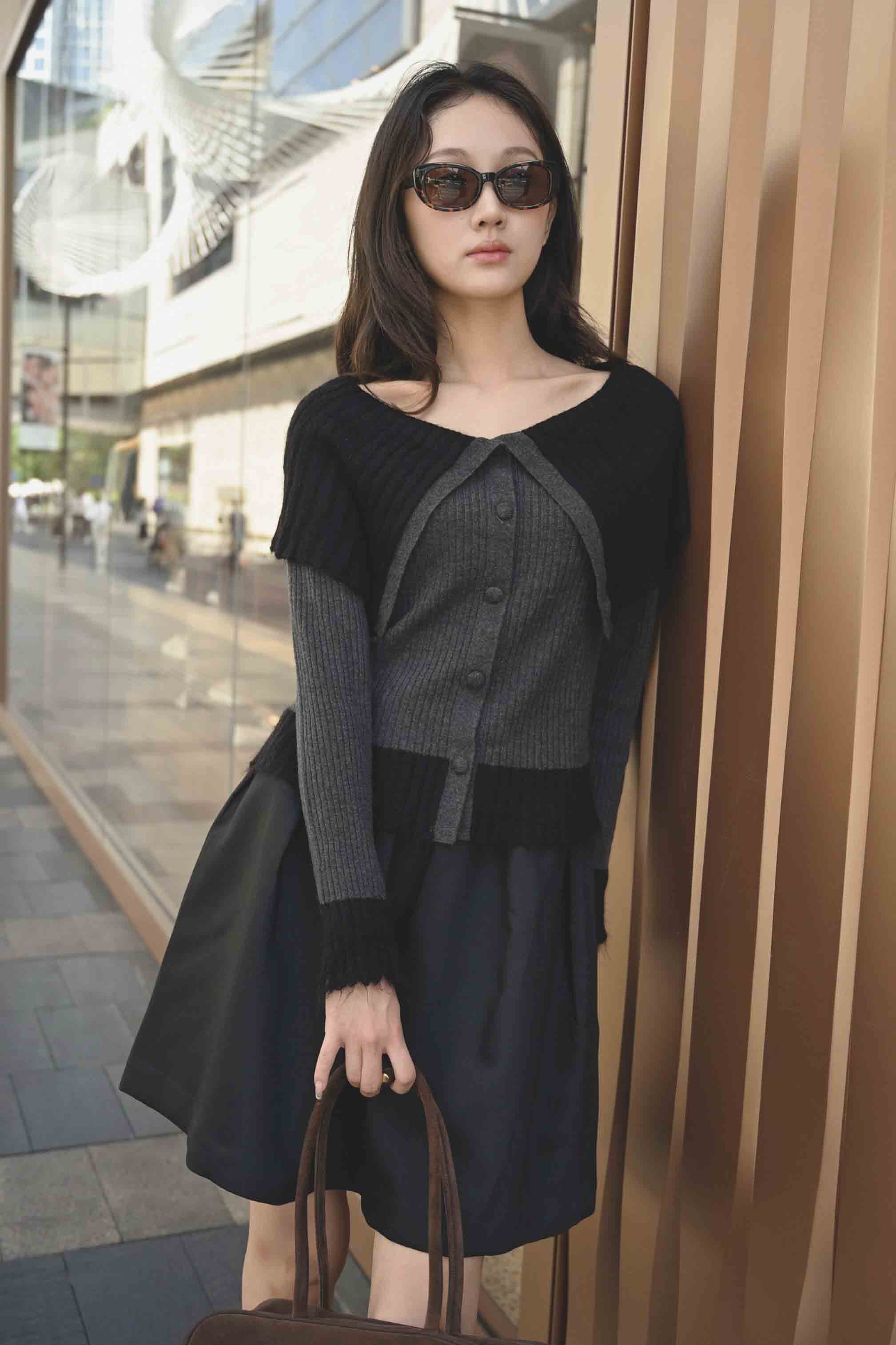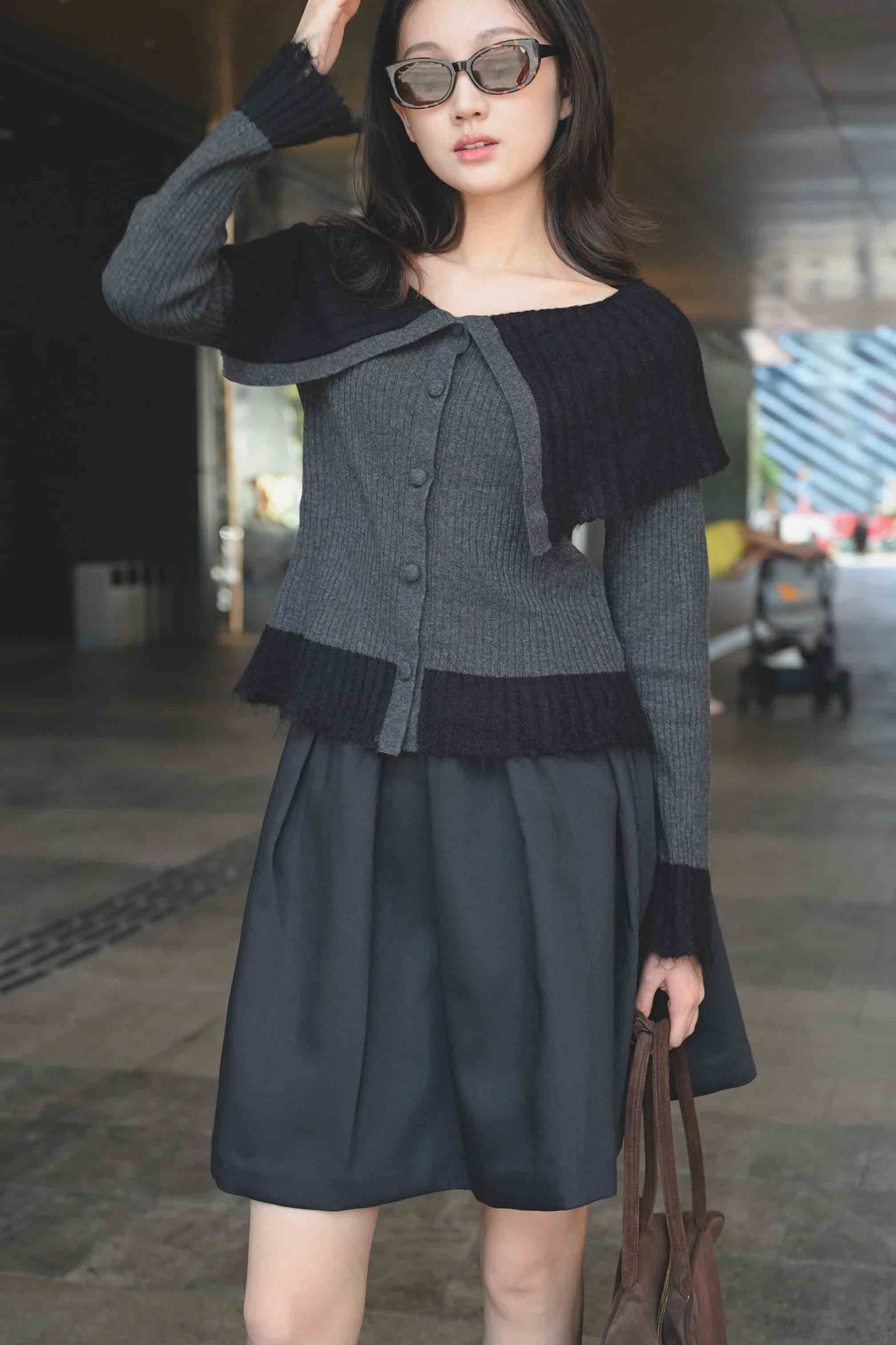 大翻领造型+灰黑撞色/黑色,秒变纸片人