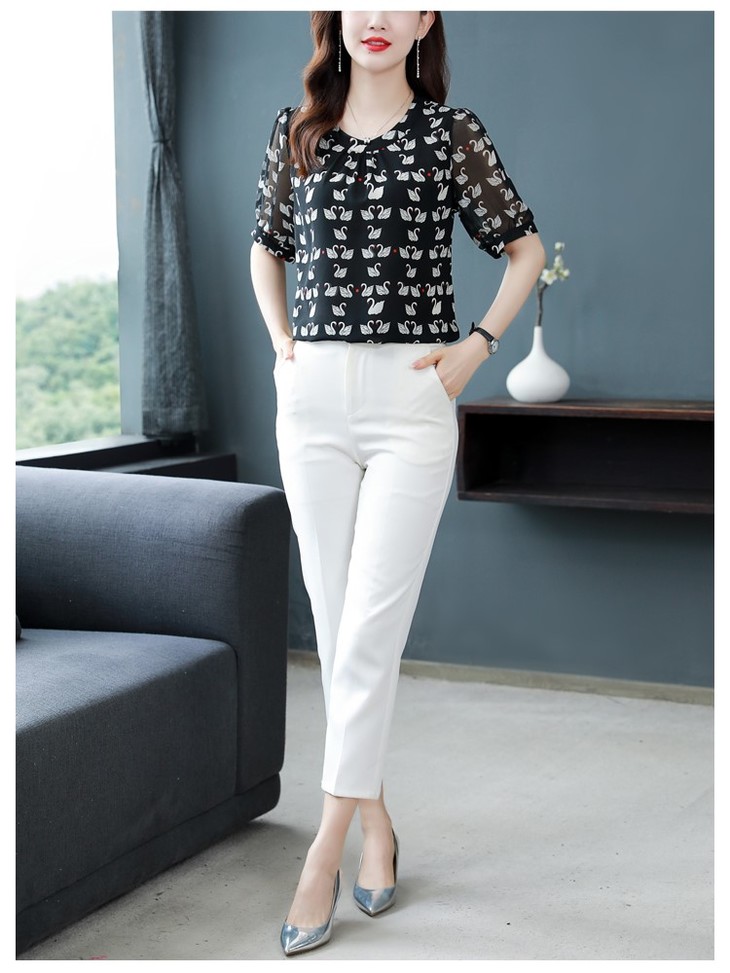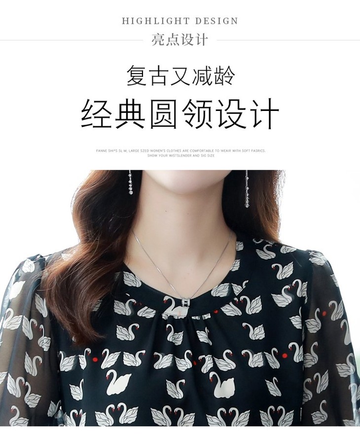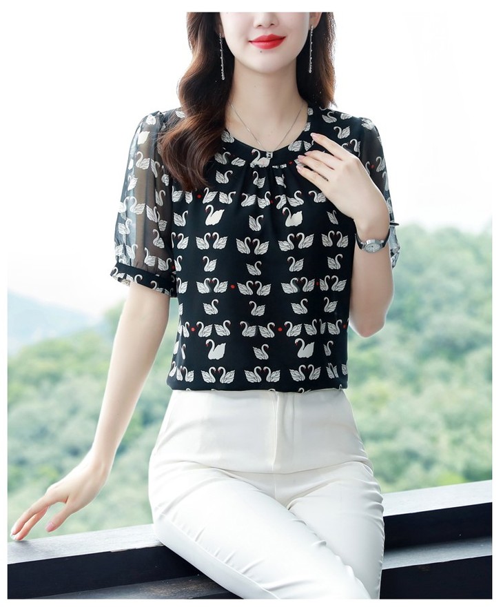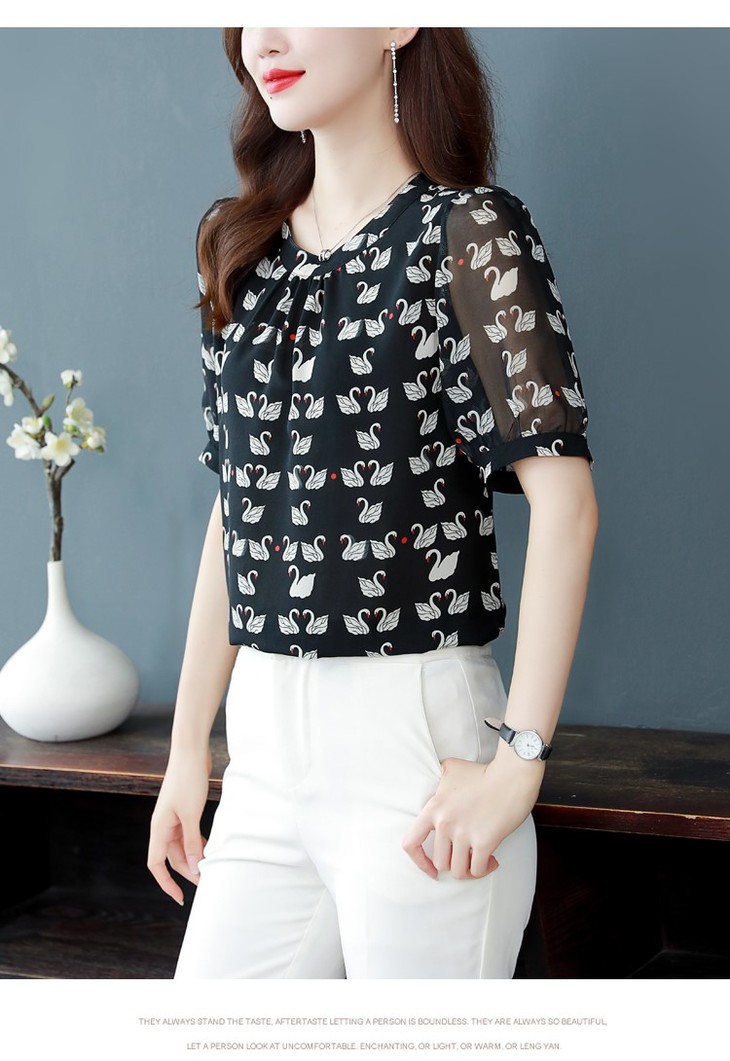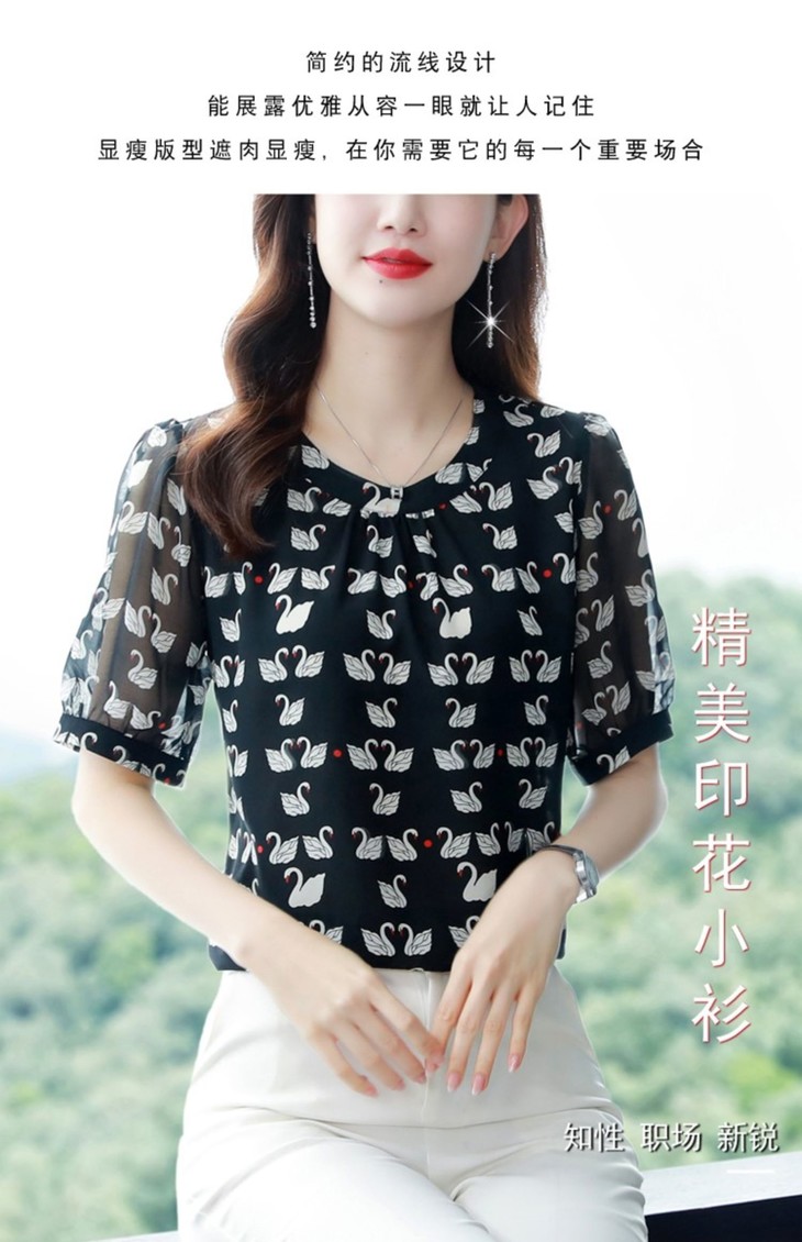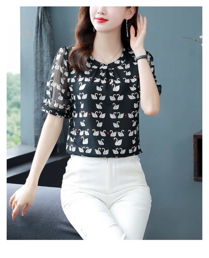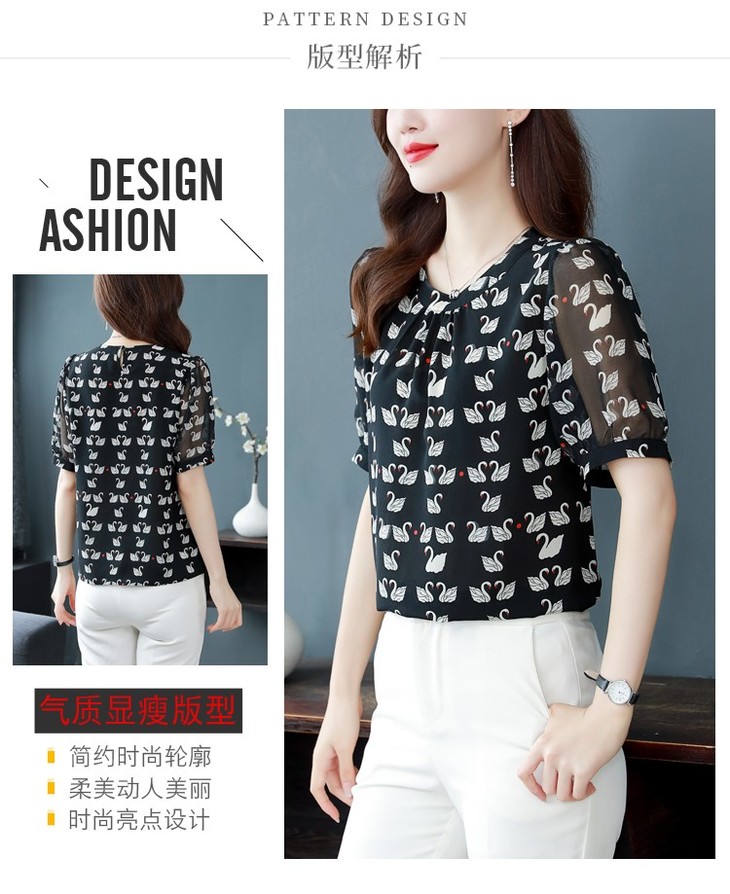 MZ803592 夏季设计感小众休闲宽松百搭减龄白天鹅印花蕾丝拼接2022新款上衣