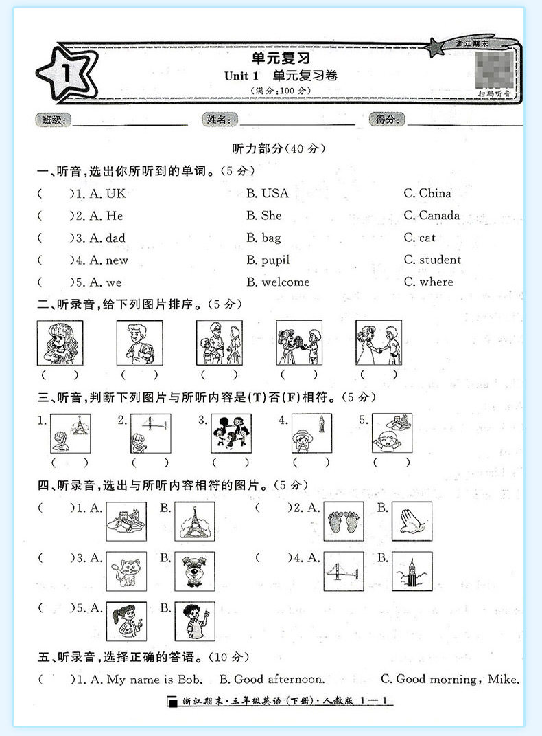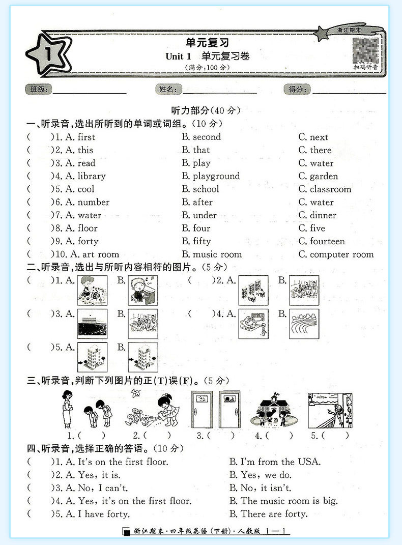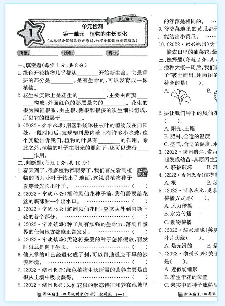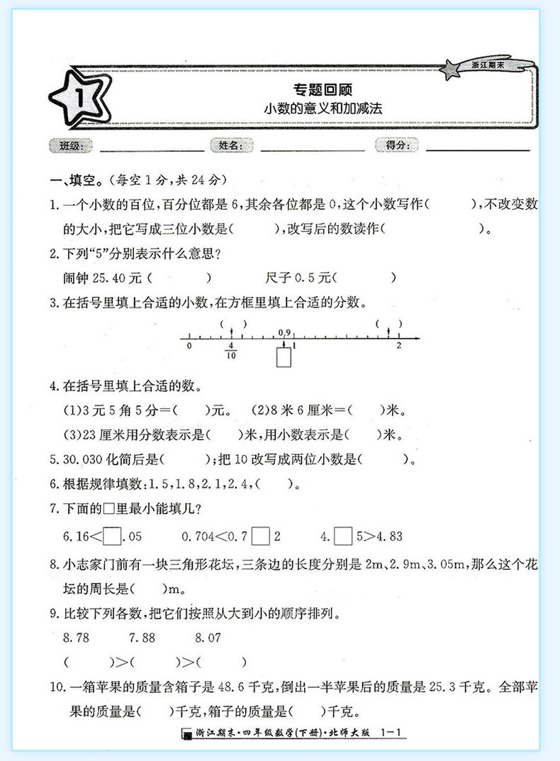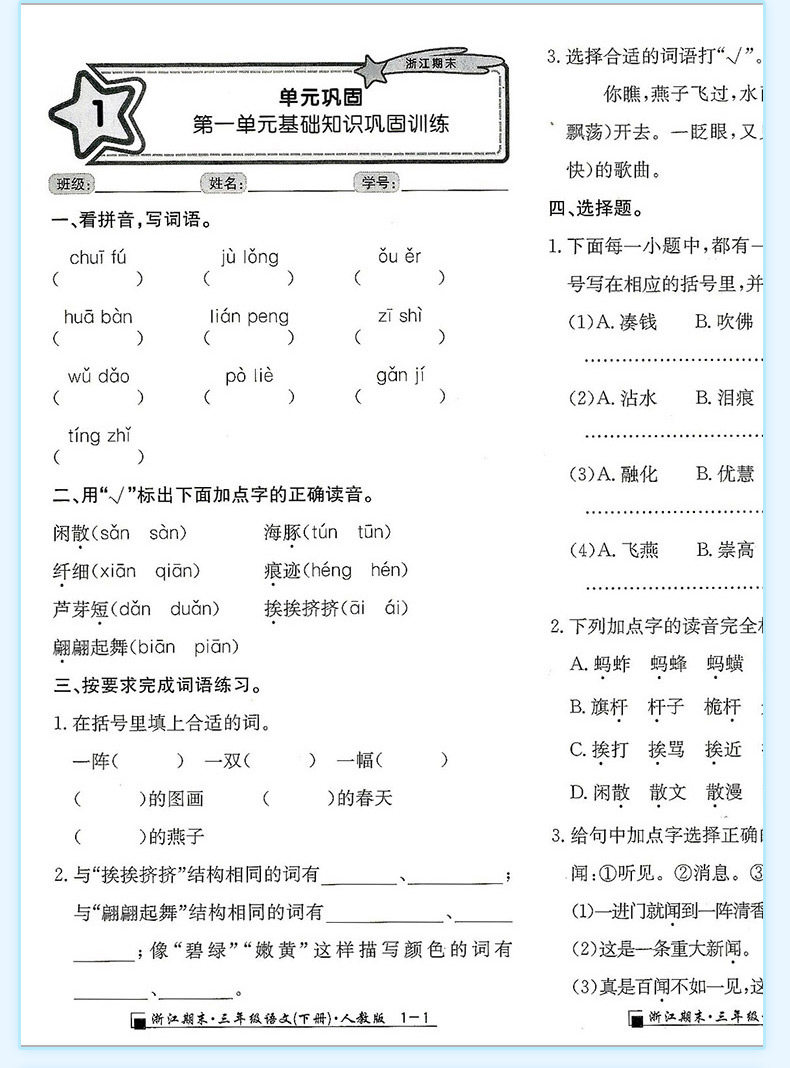 2025秋浙江期末上册人教励耘书业小学试卷测试卷全套复习期末总复习