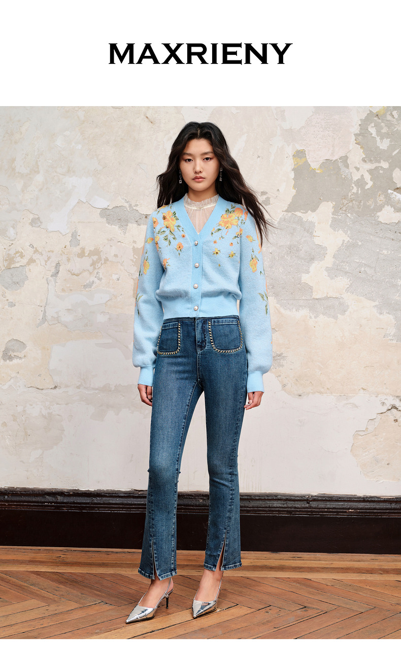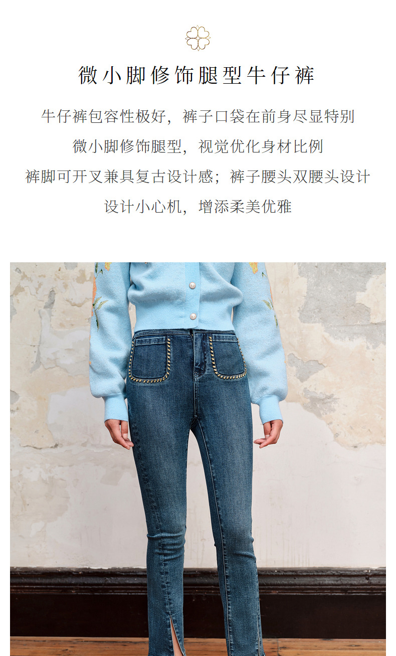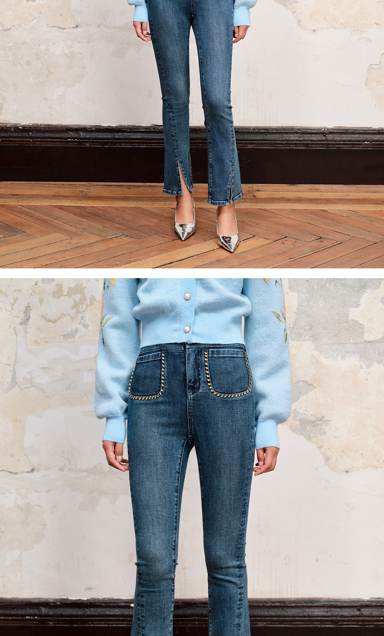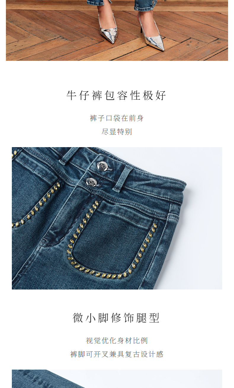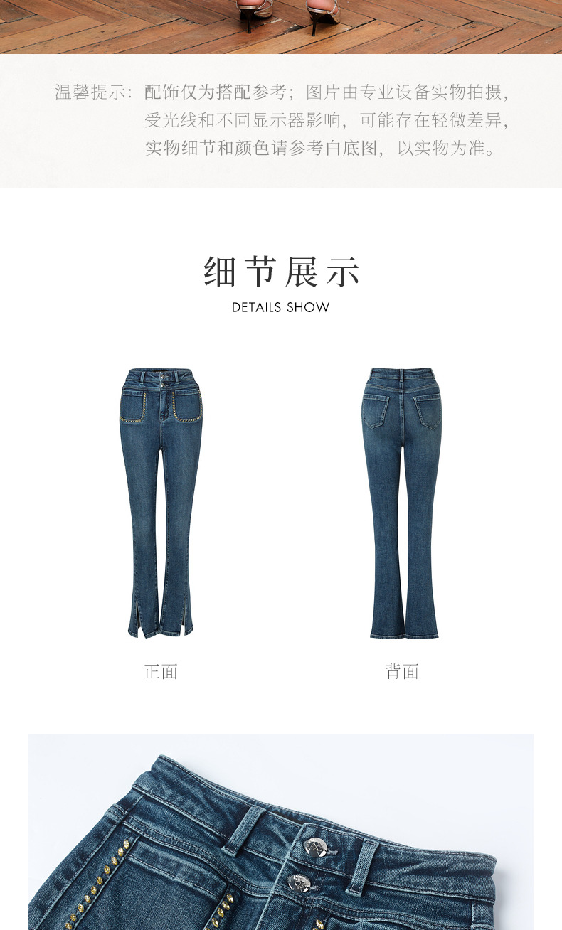 【商场同款】MAXRIENY精致复古微喇牛仔裤2023秋冬新款开叉小脚裤(货号:MC88PA552)