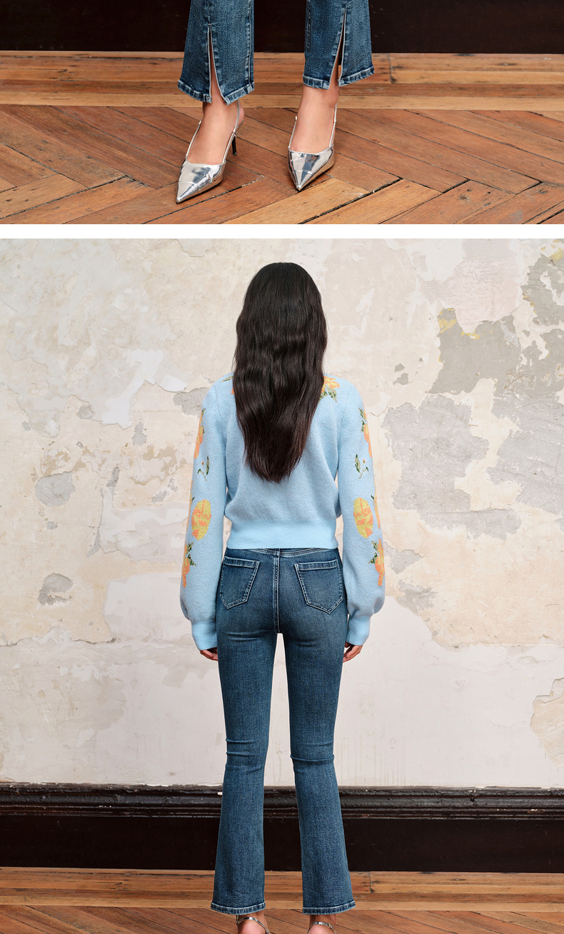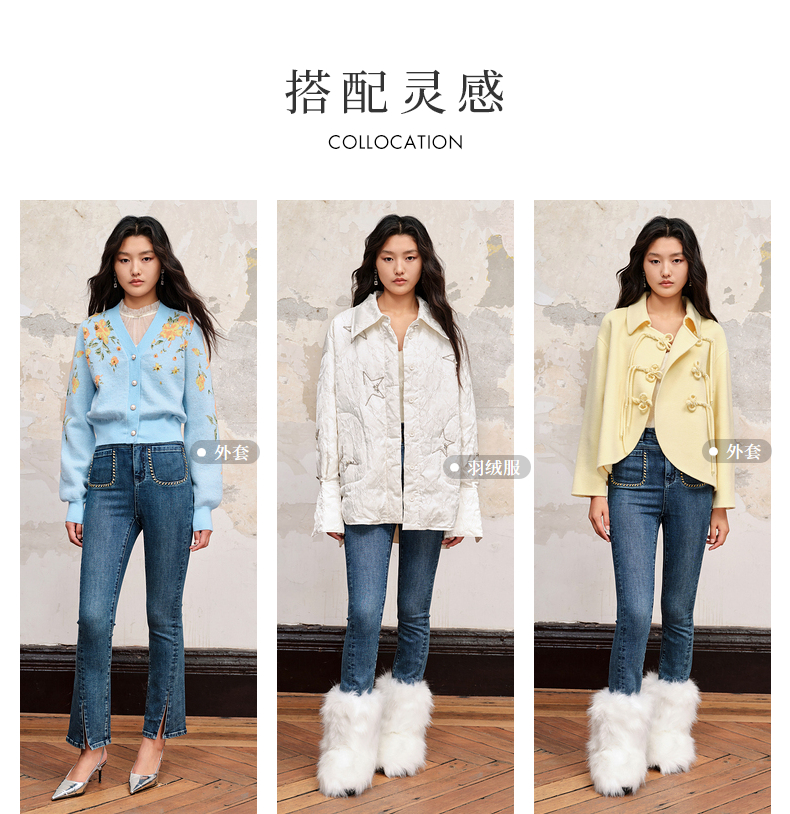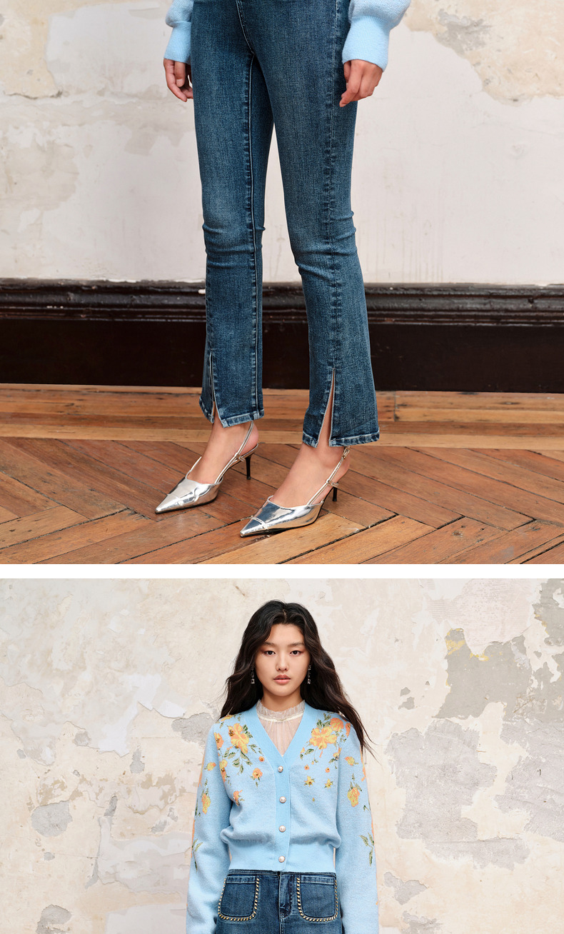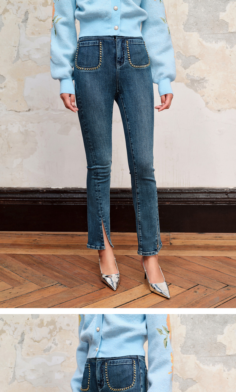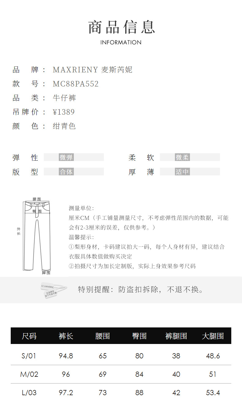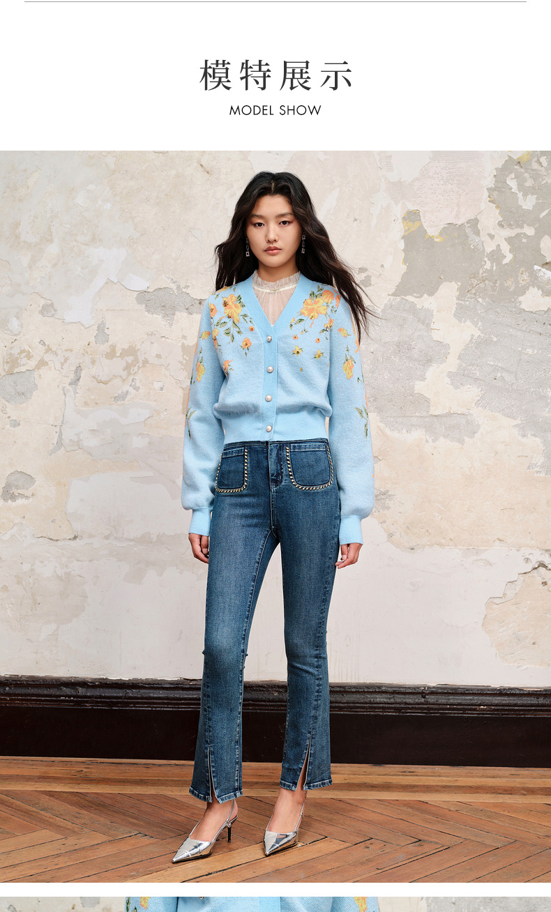 【商场同款】MAXRIENY精致复古微喇牛仔裤2023秋冬新款开叉小脚裤(货号:MC88PA552)