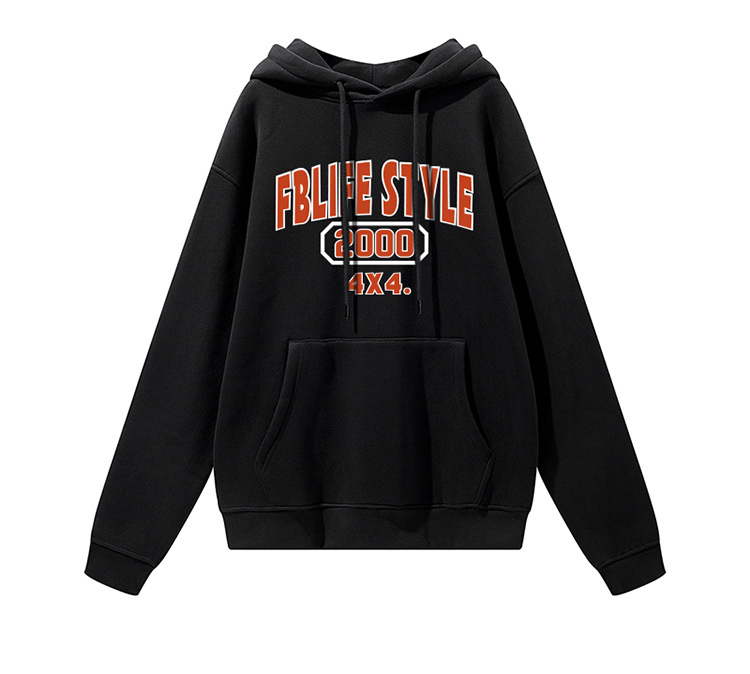 FBLIFE越野e族国潮男女休闲连帽抓绒卫衣秋冬情侣帽衫宽松字母印花 NMT-1738