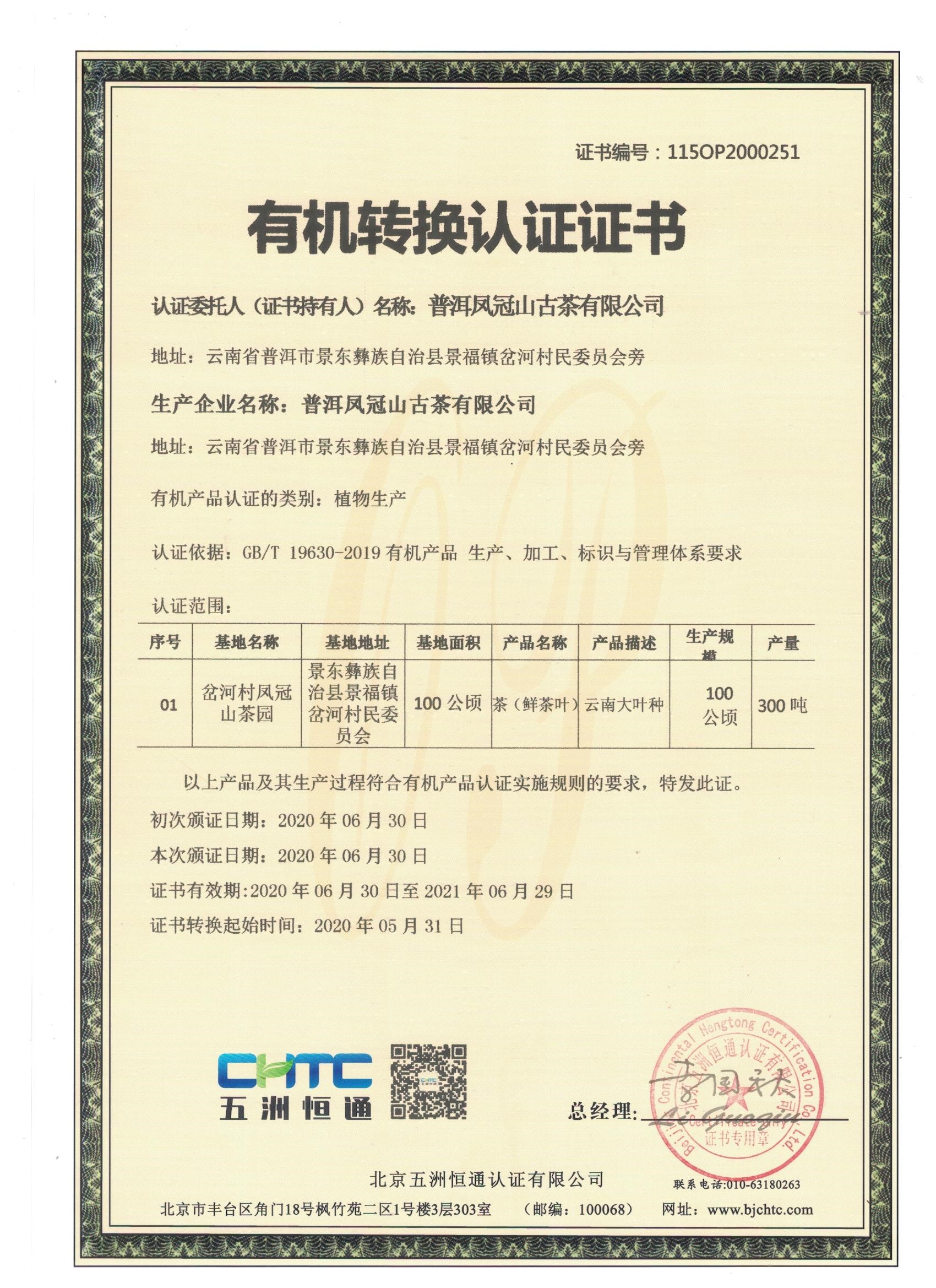 2020【凤冠山古树有机茶】超欧盟标准的有机认证!