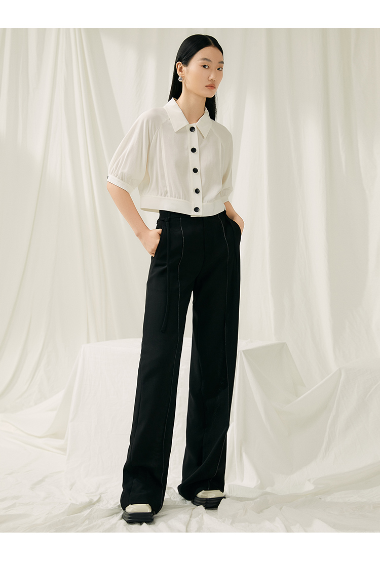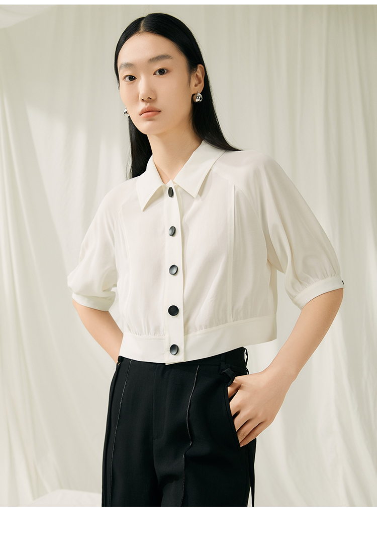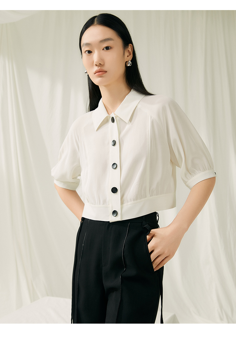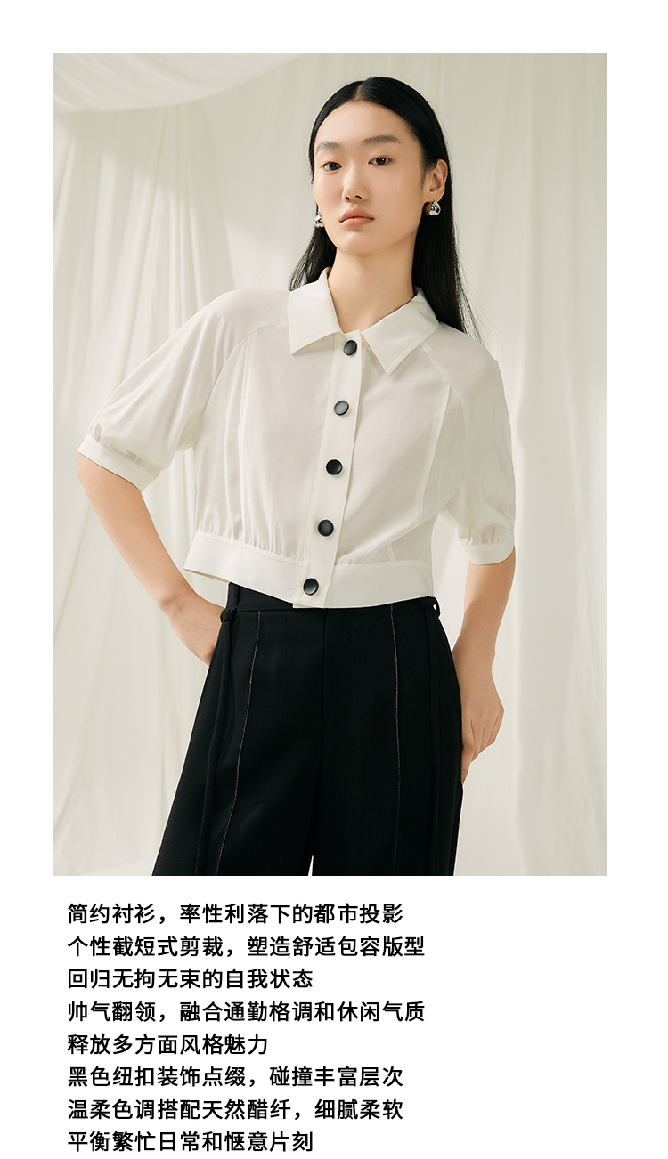 VIMAGE纬漫纪夏季新款简约短款衬衫女上衣衬衣V1909512