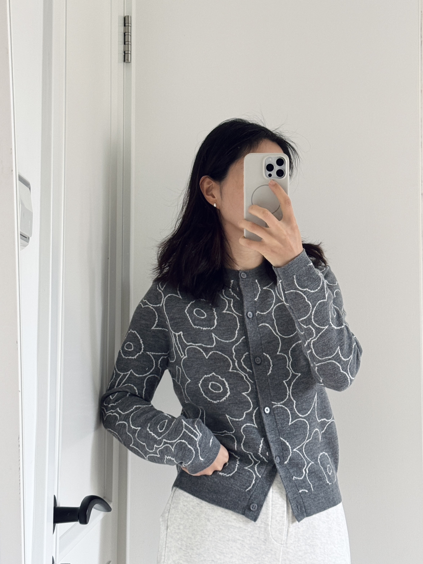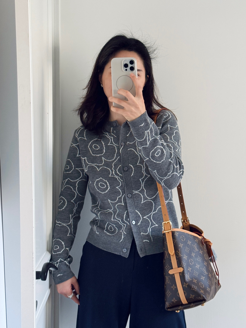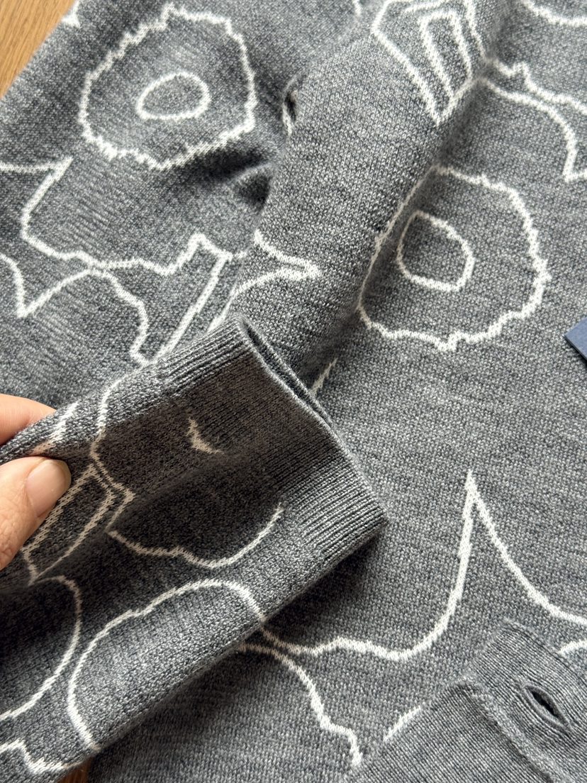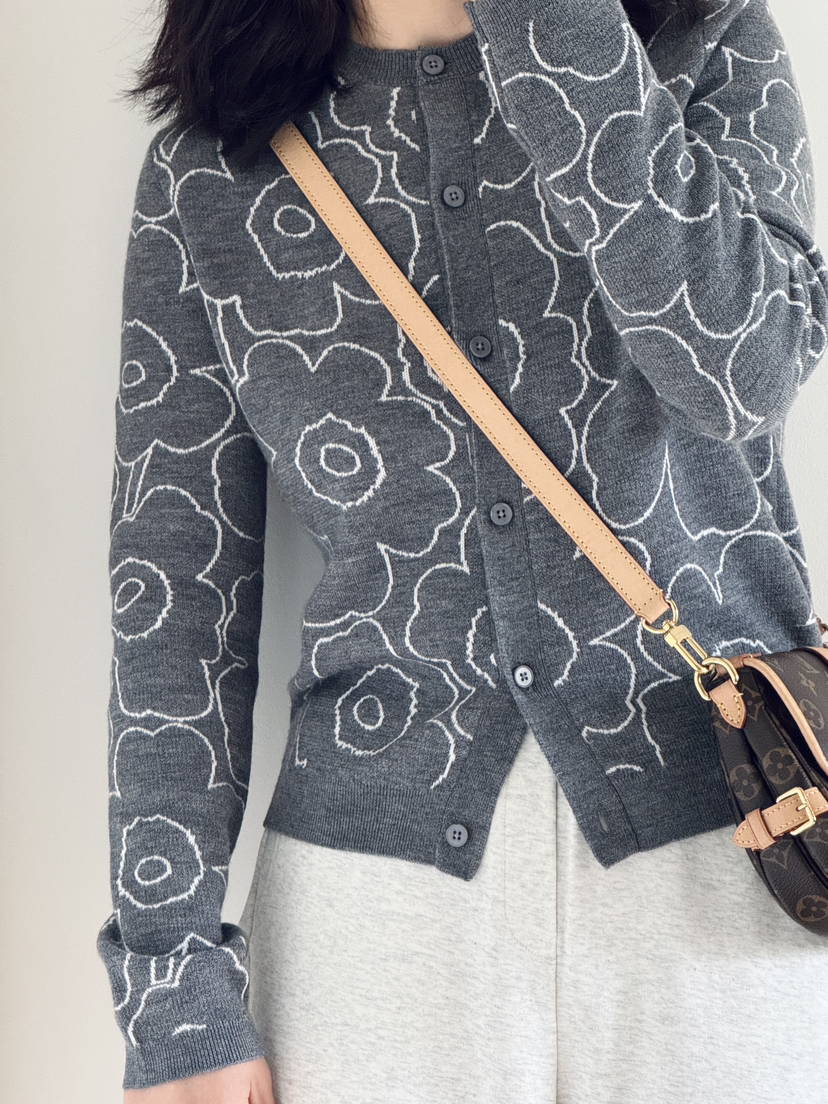 羊毛针织开衫颜值与品质共存,杨子纱,细纱线不易起球,品质和黑色花朵毛衣差不多,这件推荐上班通勤的姐妹人手必备!质感真的特别特别好,可以媲美砖柜,闭眼入,版型合身的,特别显瘦一点不累赘,久穿不松懈,经典耐看!