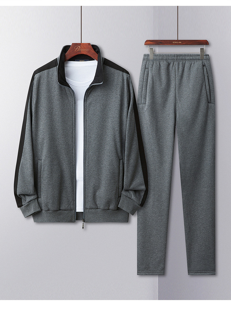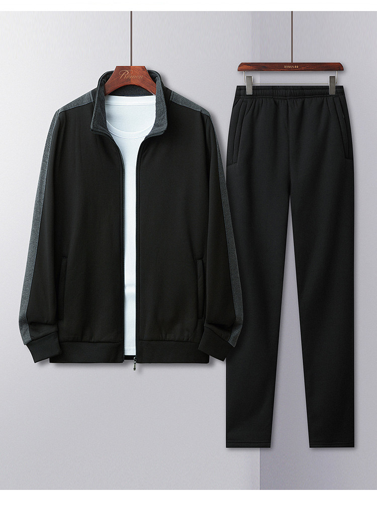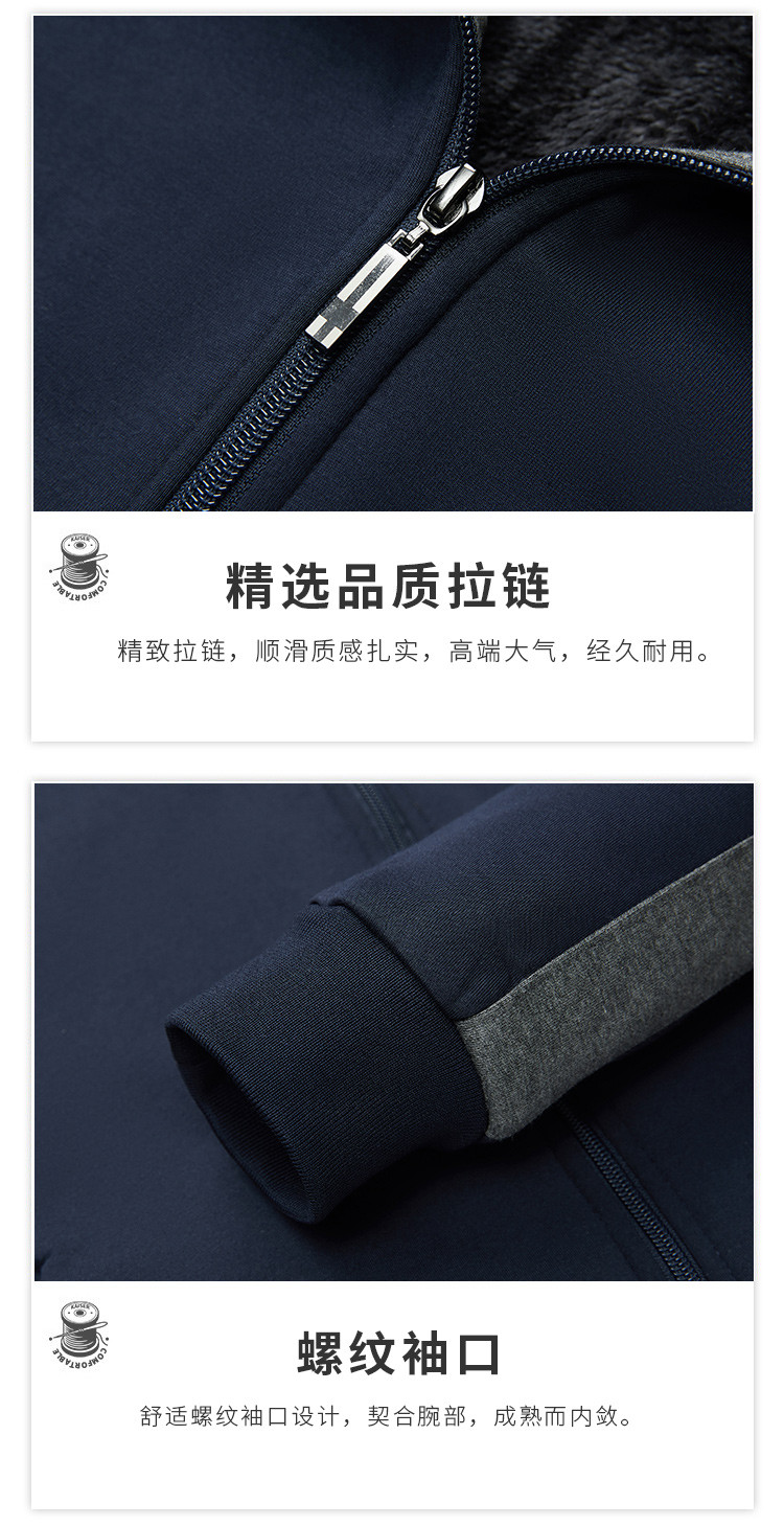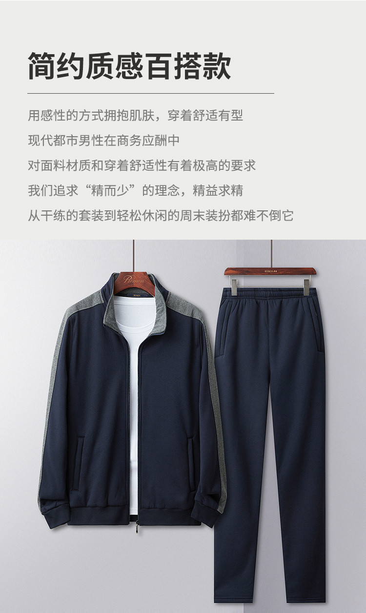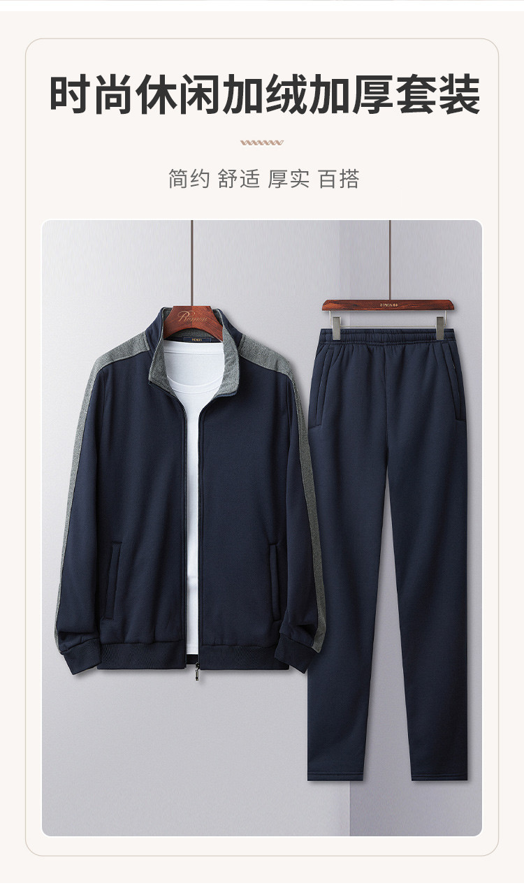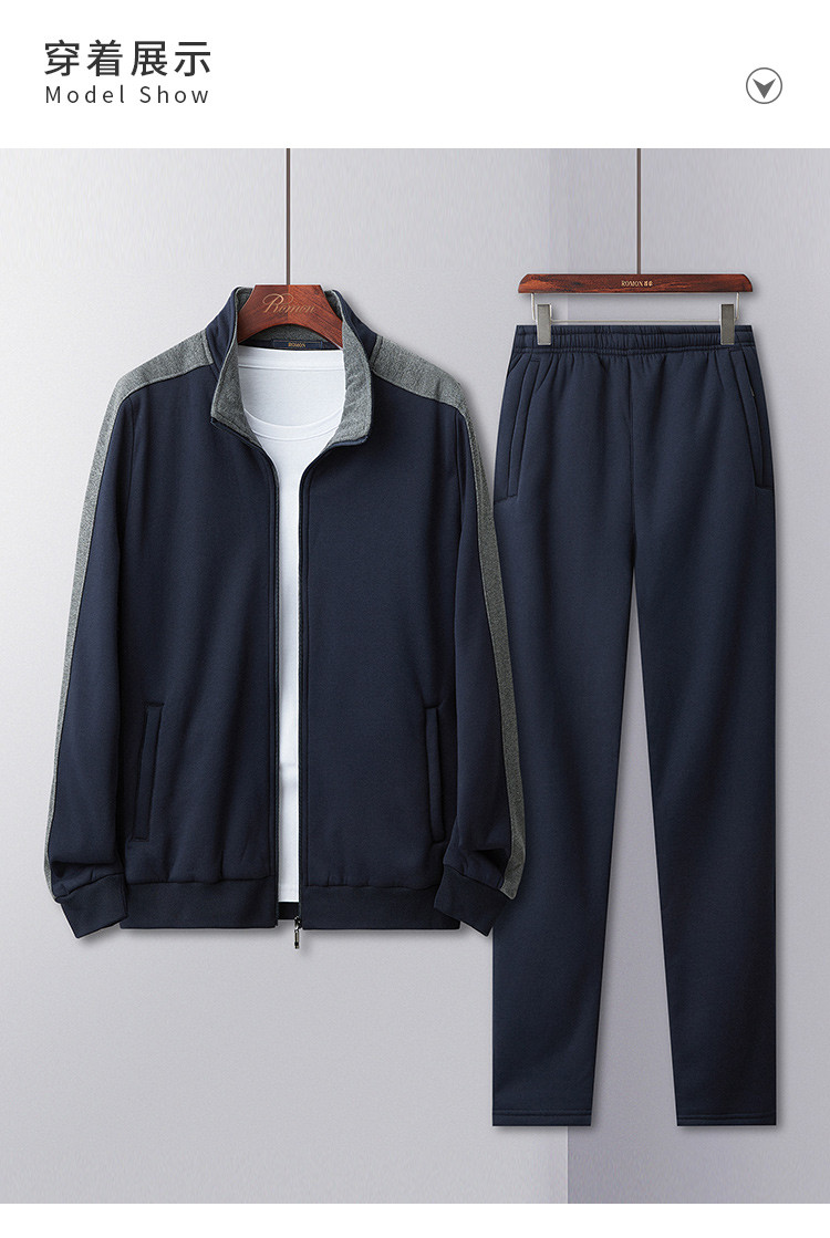 【加绒加厚两件套】罗蒙秋冬加绒保暖两件套男士运动装休闲撞色外套男
