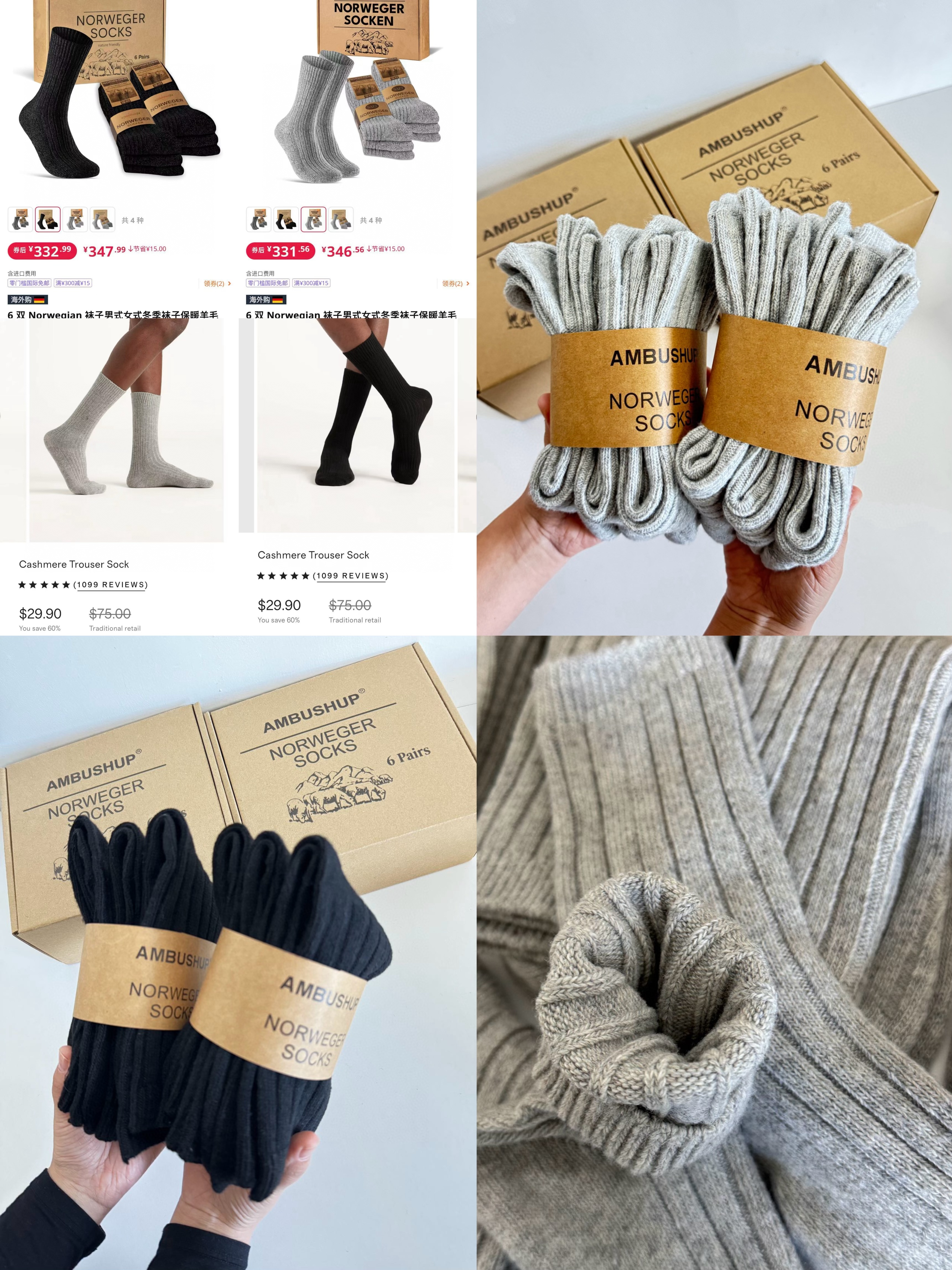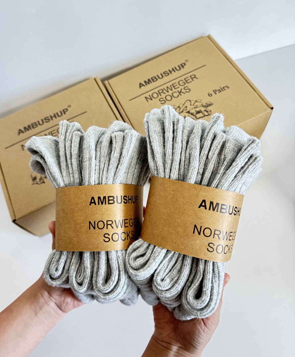 挪威订单亚马逊售价300➕一盒!仅800盒。全部原包装正品AMBU&SHUP男士羊毛袜套装 暖暖暖告别冰块脚!十年老牌外贸工厂出品! 这个冬天,只需要一盒羊毛袜就可以啦🔥🔥 这款挪威风羊毛袜把冬日温暖焊在脚上 AMBU&SHUP挪威风羊毛袜“从脚尖暖到心尖”!六双一盒,针织纹理细腻又有质感, 中筒版型适配各种靴子、运动鞋,日常穿搭完全不挑风格~ 羊毛材质自带保暖buff,哪怕在寒风里暴走,双脚也能一直暖暖的,再也不用怕冻脚啦! 材质:聚酯纤维63.6%腈纶20.1%绵羊毛11.1%其他纤维4.0%氨纶1.2%!全部都是盒装出货!特别棒!AMBUSHUP品牌匠心出品,每一双都经过严格品质把控。这个冬天,让双脚住进“恒温小暖房”,温暖过冬就靠它!