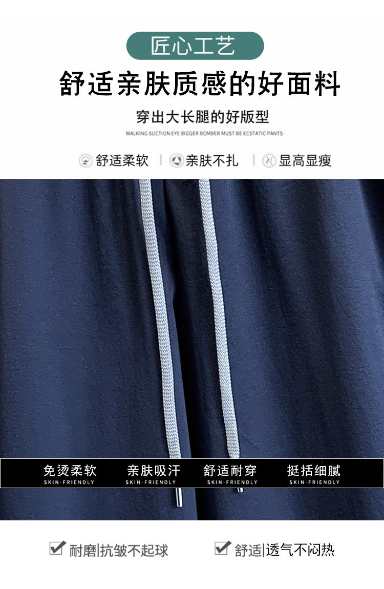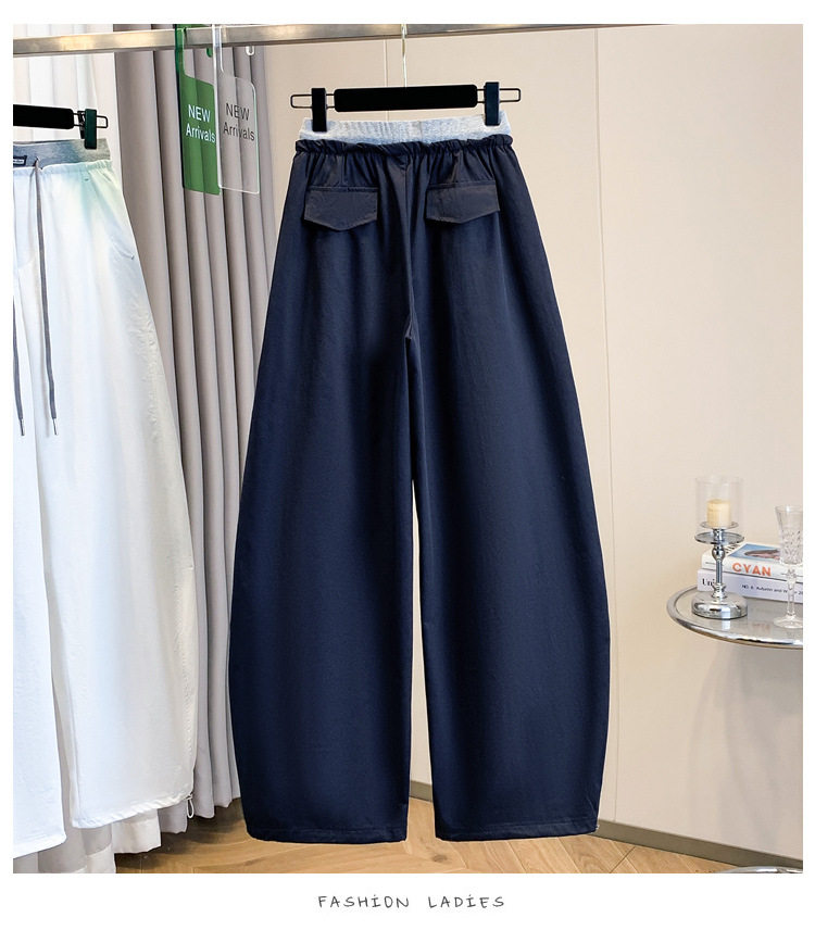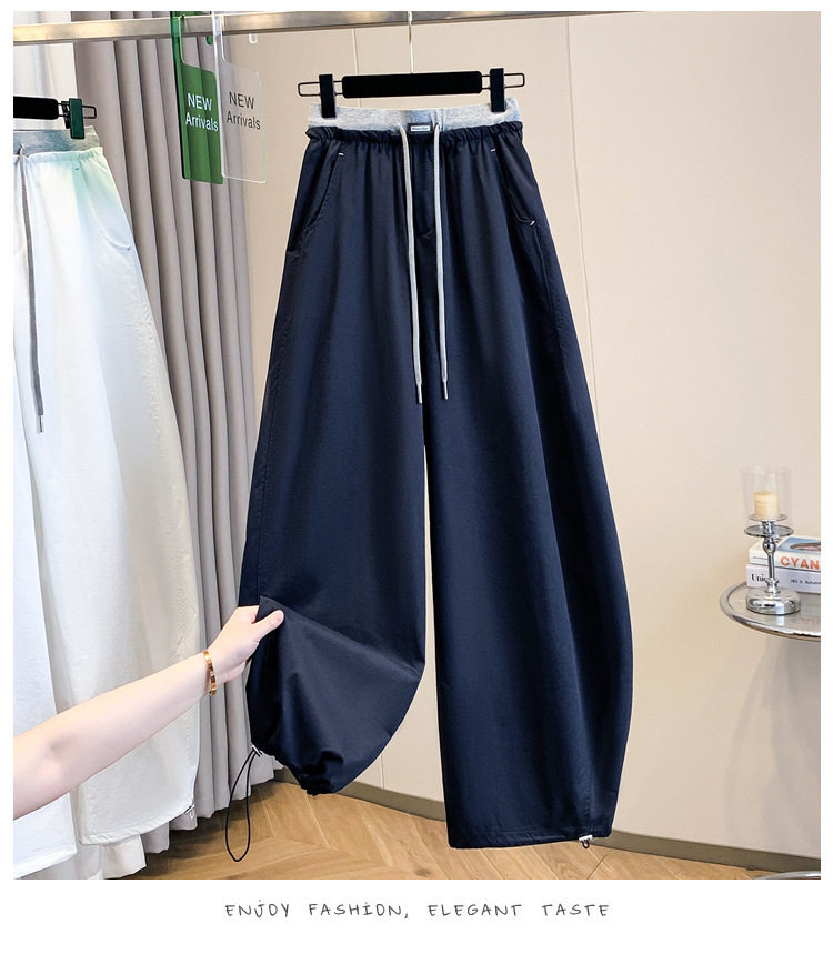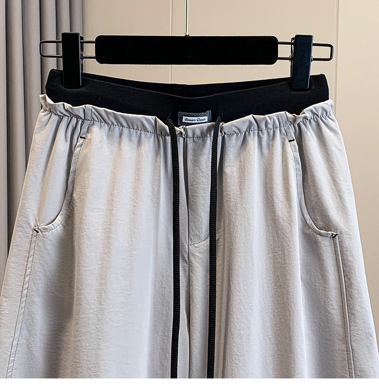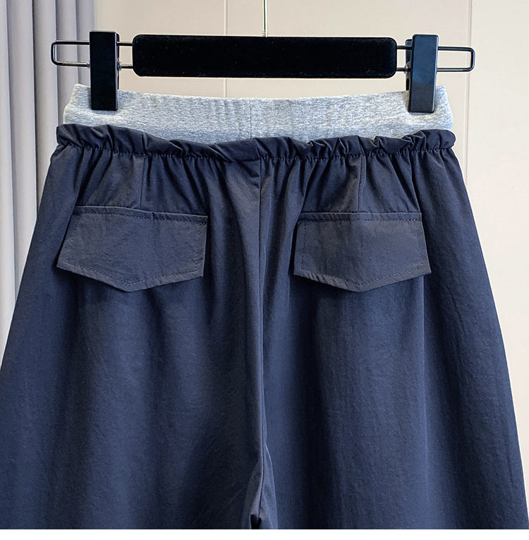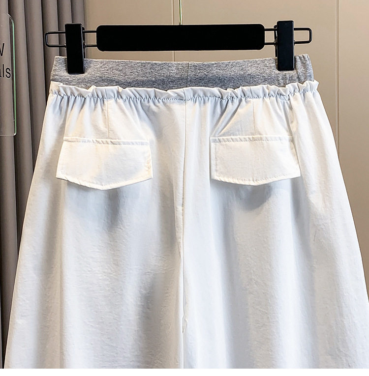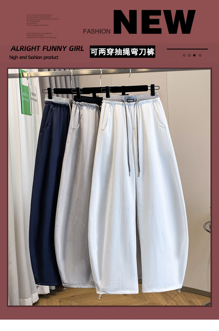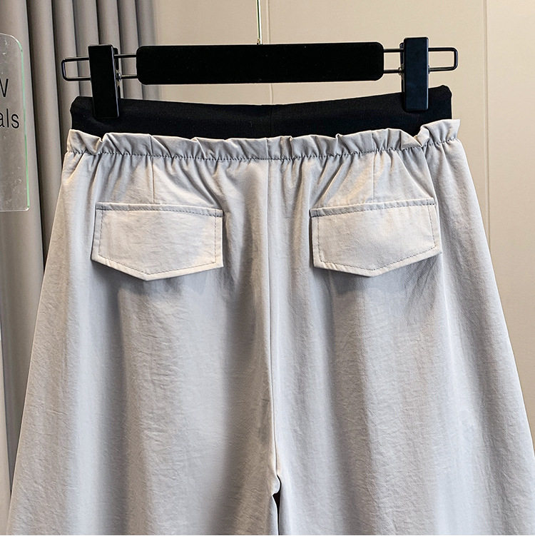 春夏爆款高腰系带阔腿裤女拼接腰头宽松显瘦休闲裤束脚两穿弯刀裤 NDK-X8029