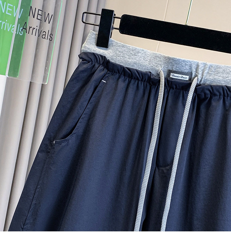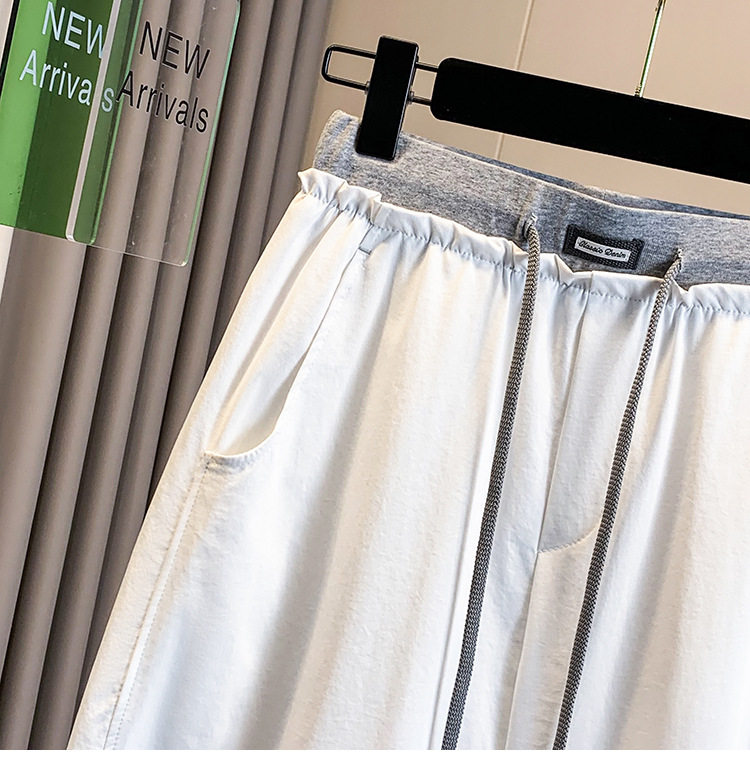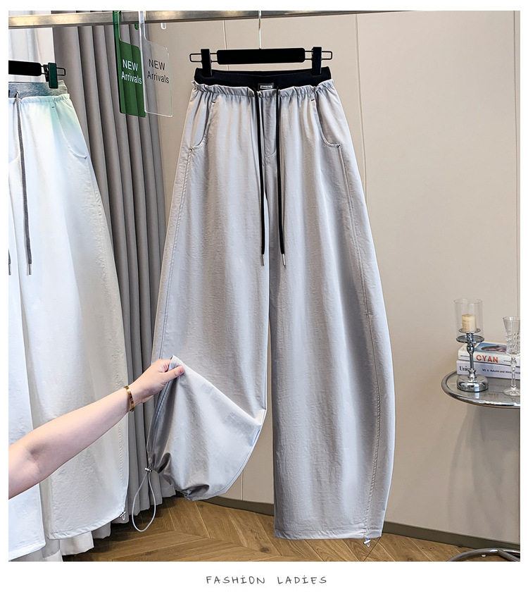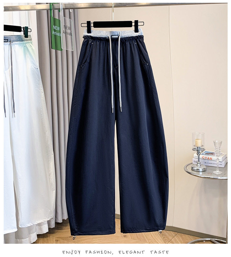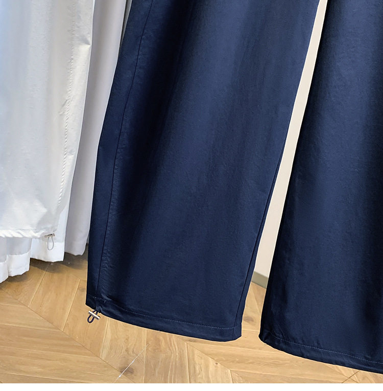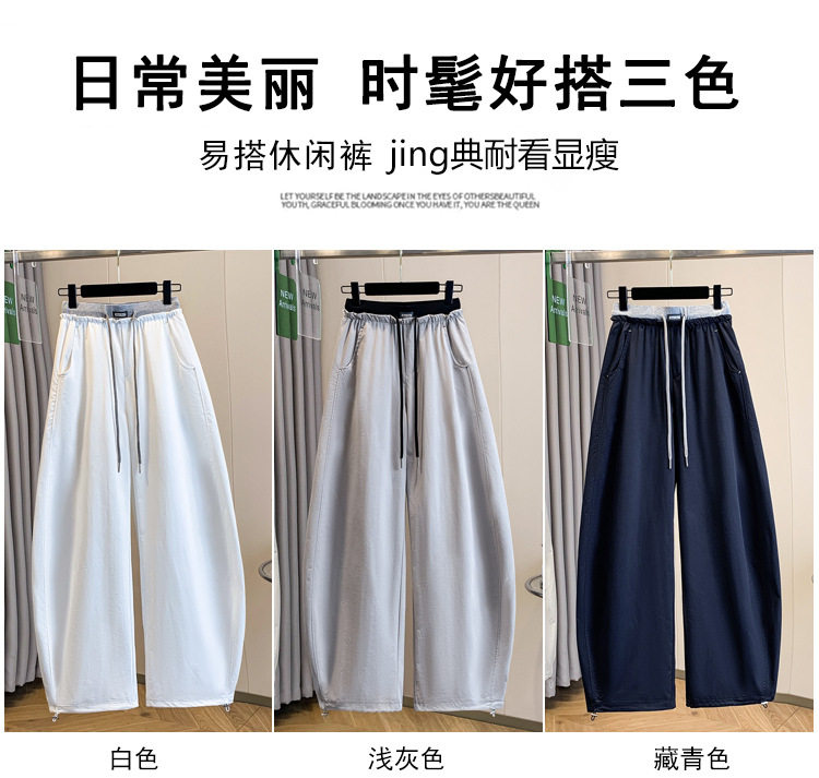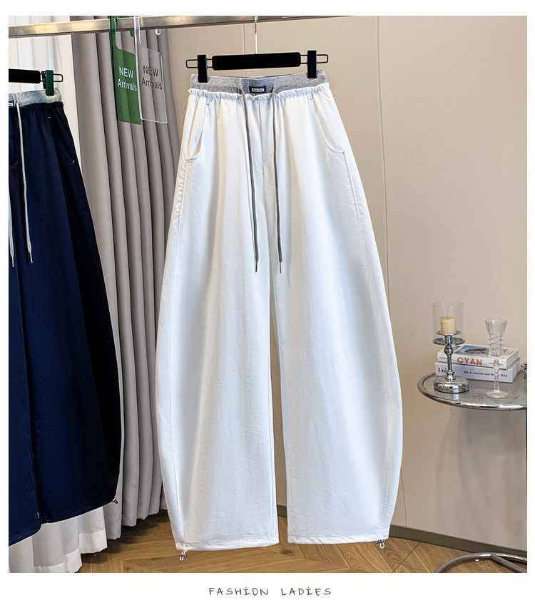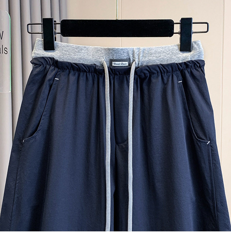 春夏爆款高腰系带阔腿裤女拼接腰头宽松显瘦休闲裤束脚两穿弯刀裤 NDK-X8029