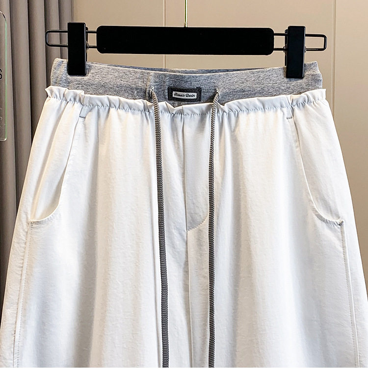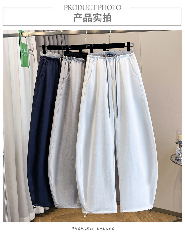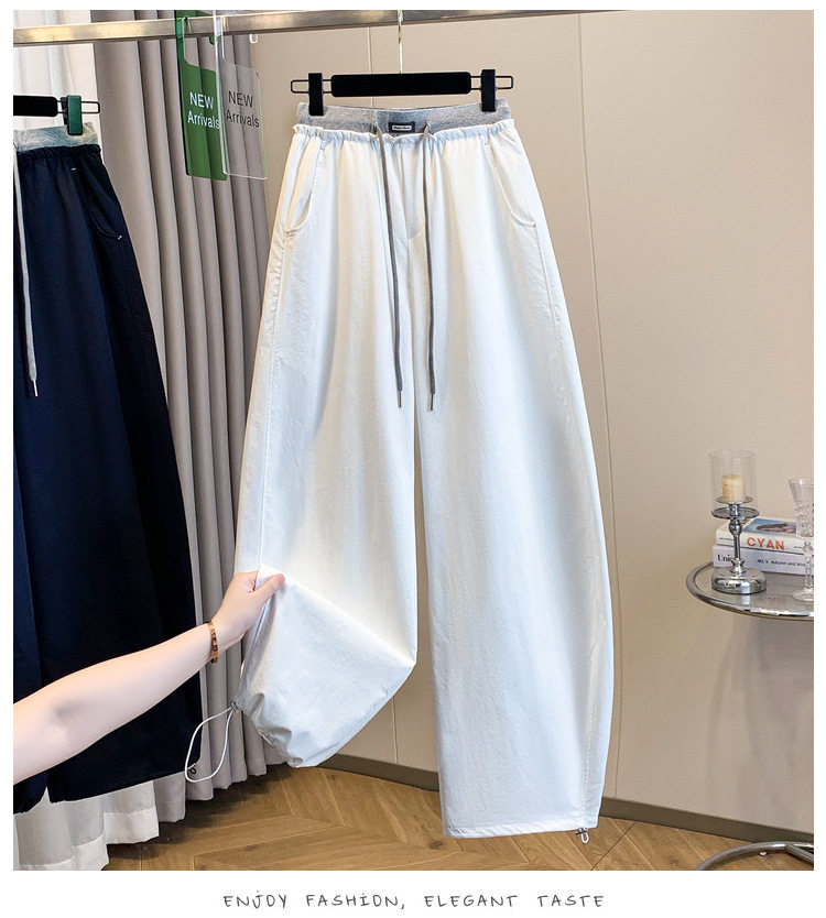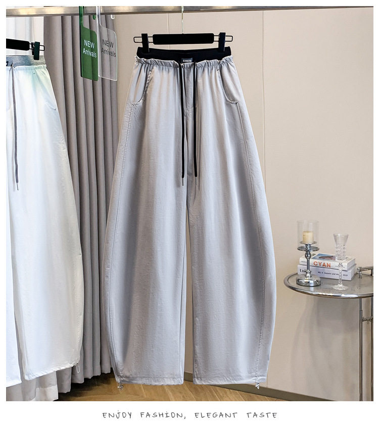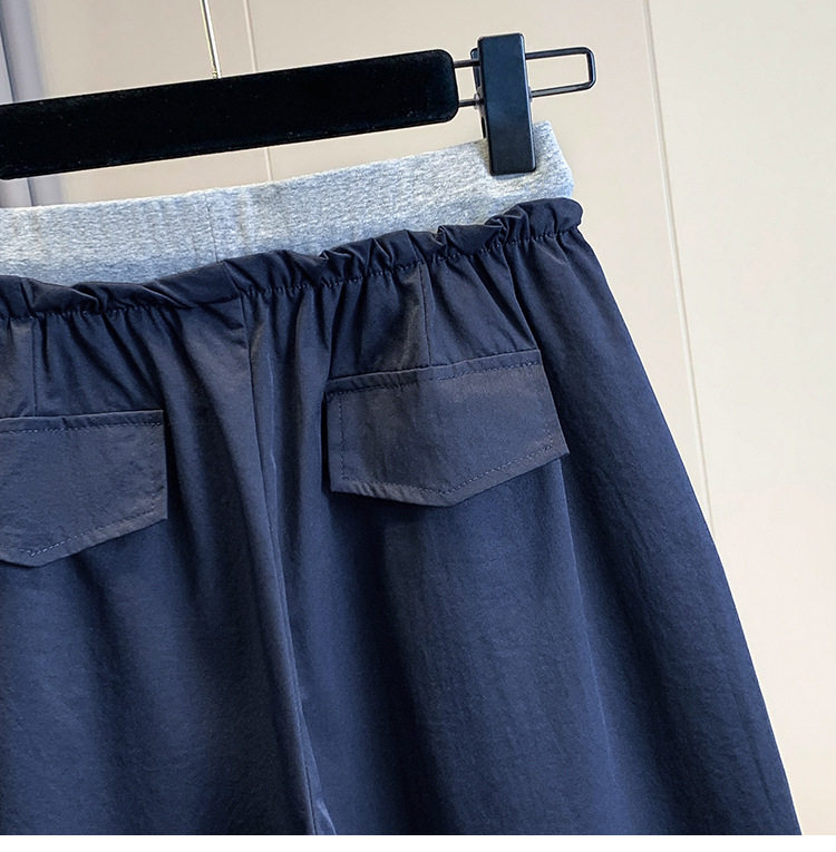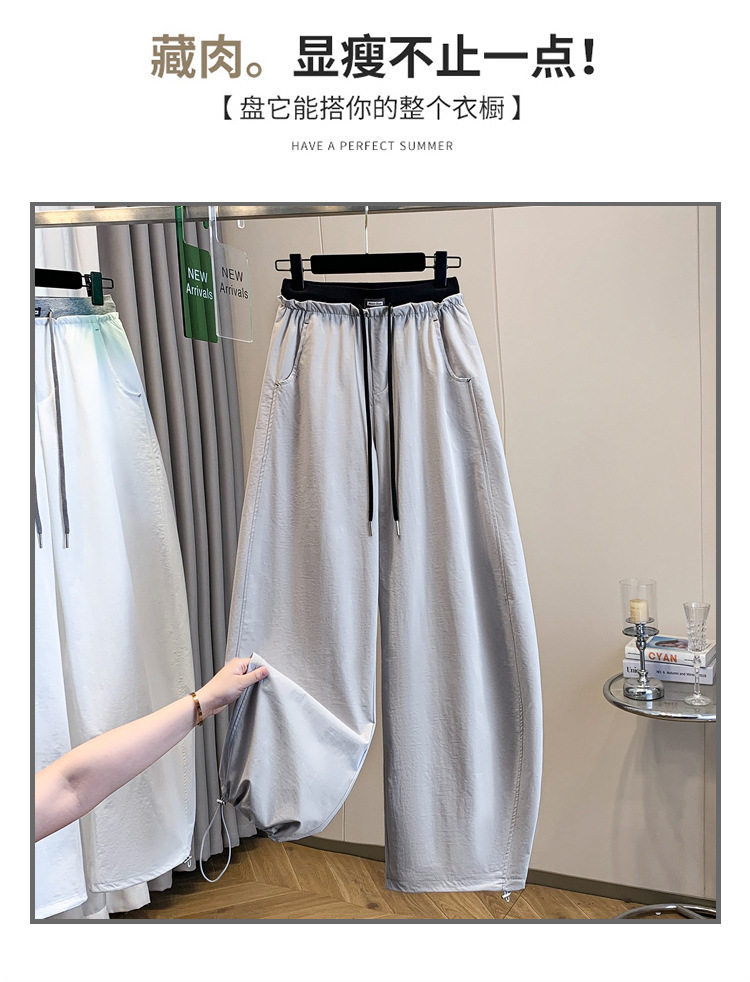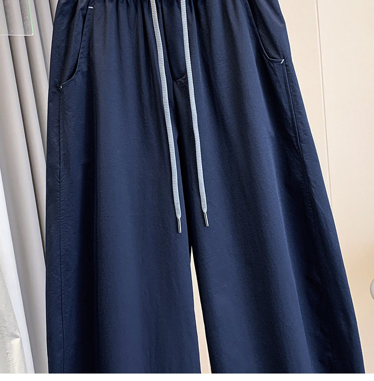 春夏爆款高腰系带阔腿裤女拼接腰头宽松显瘦休闲裤束脚两穿弯刀裤 NDK-X8029