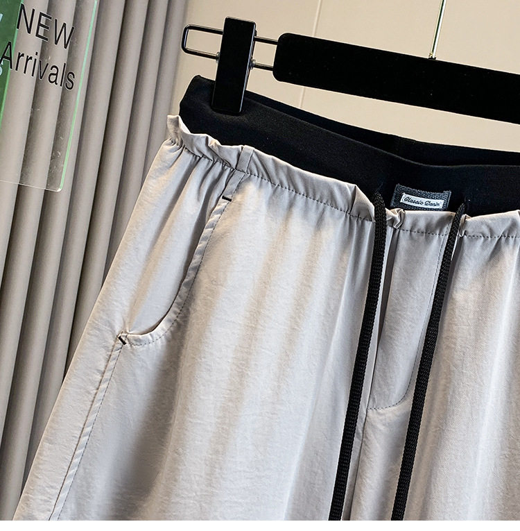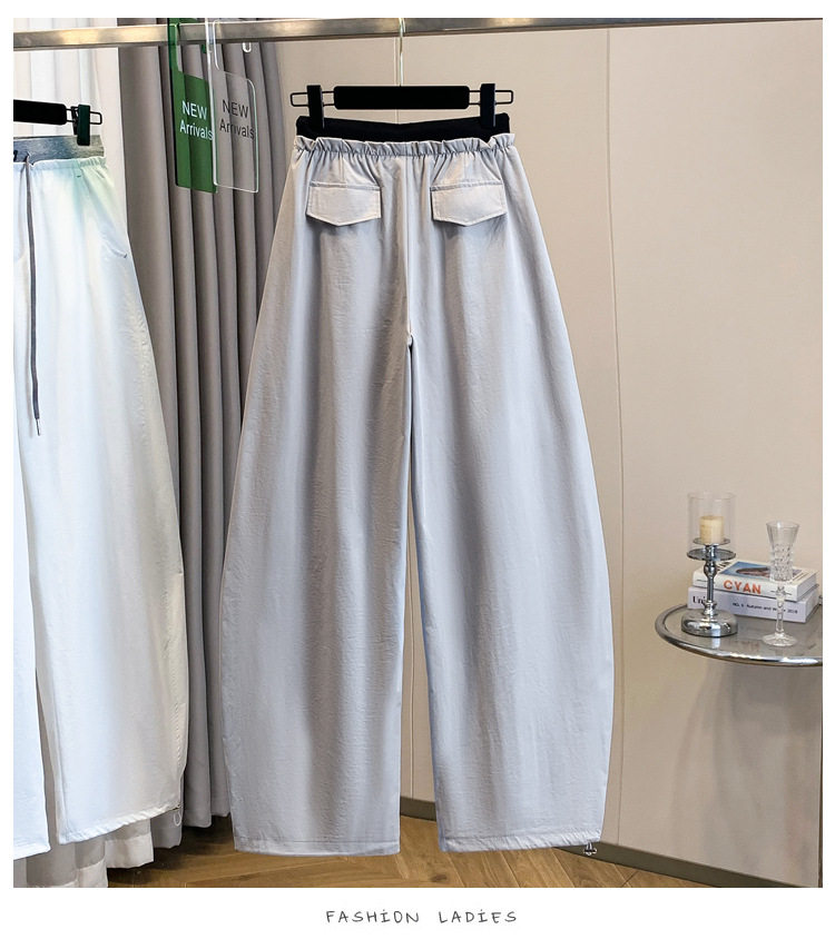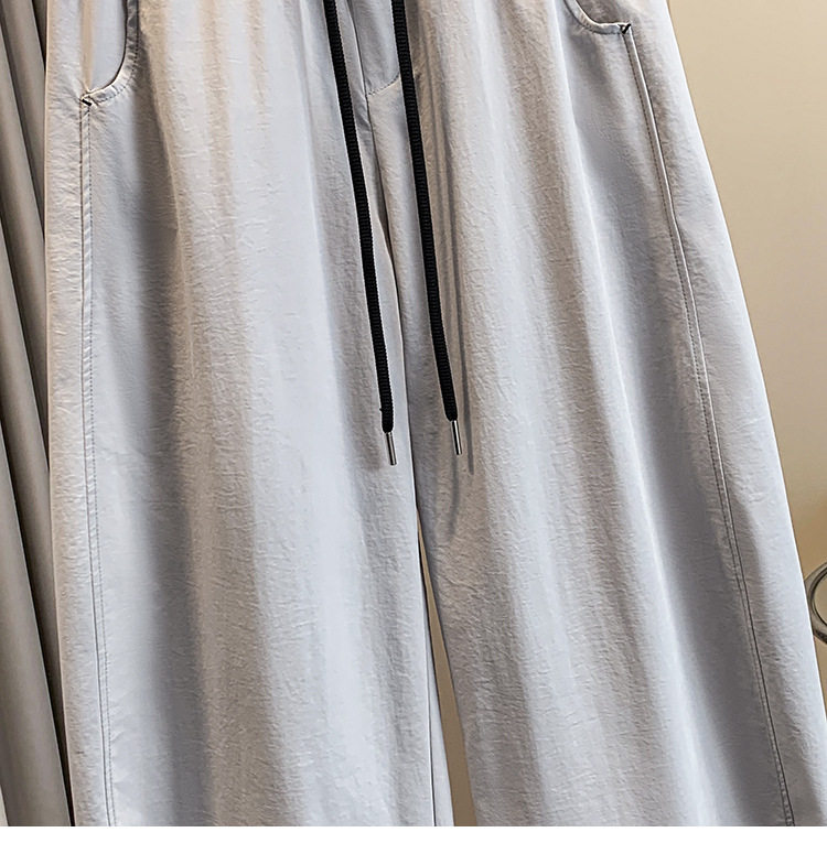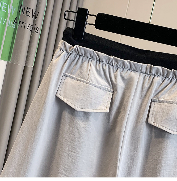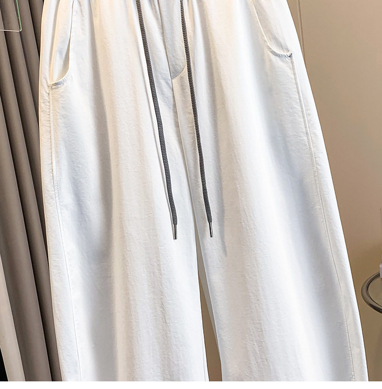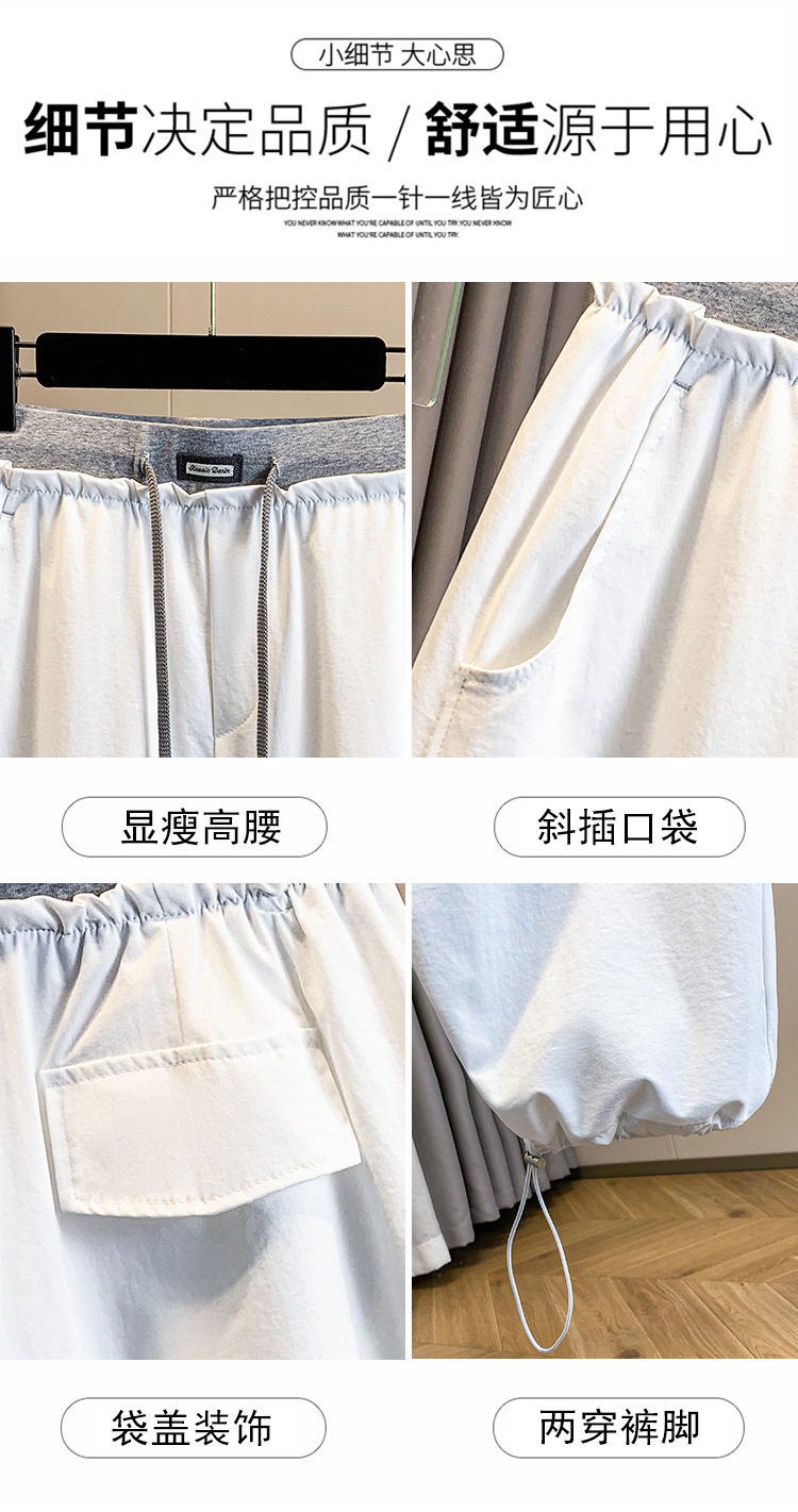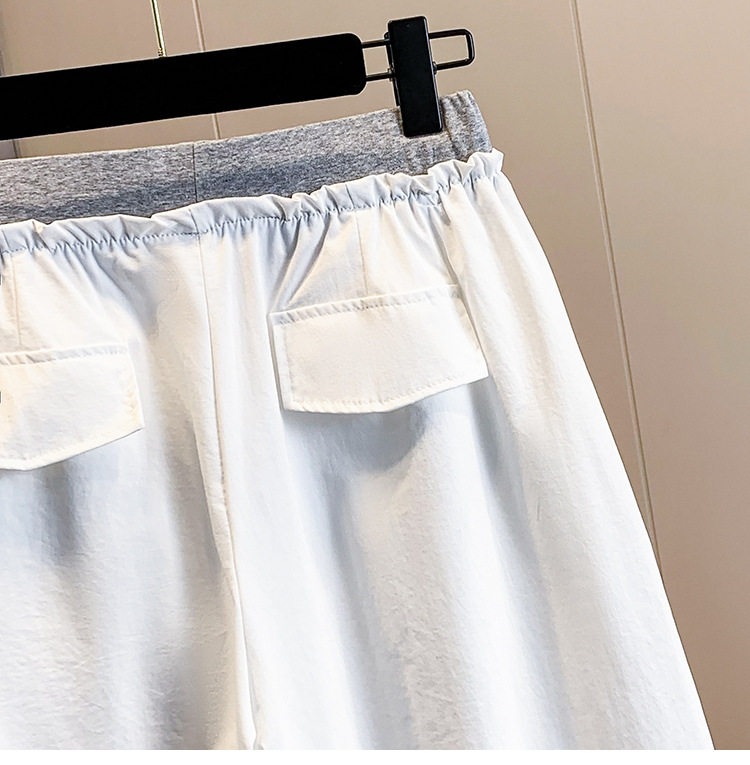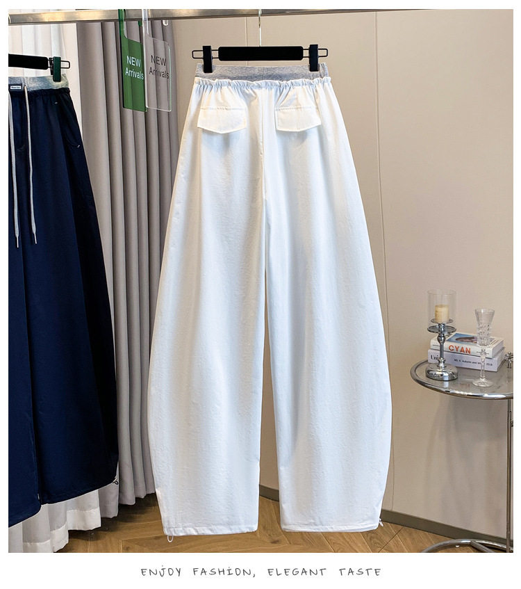 春夏爆款高腰系带阔腿裤女拼接腰头宽松显瘦休闲裤束脚两穿弯刀裤 NDK-X8029