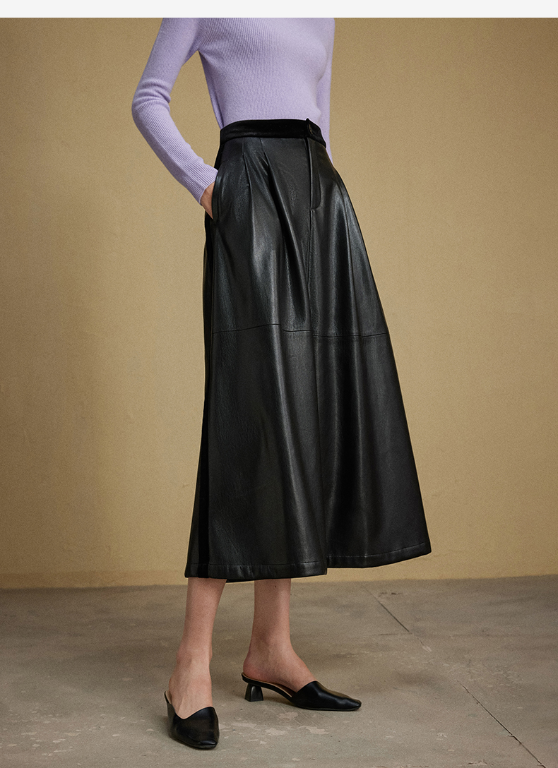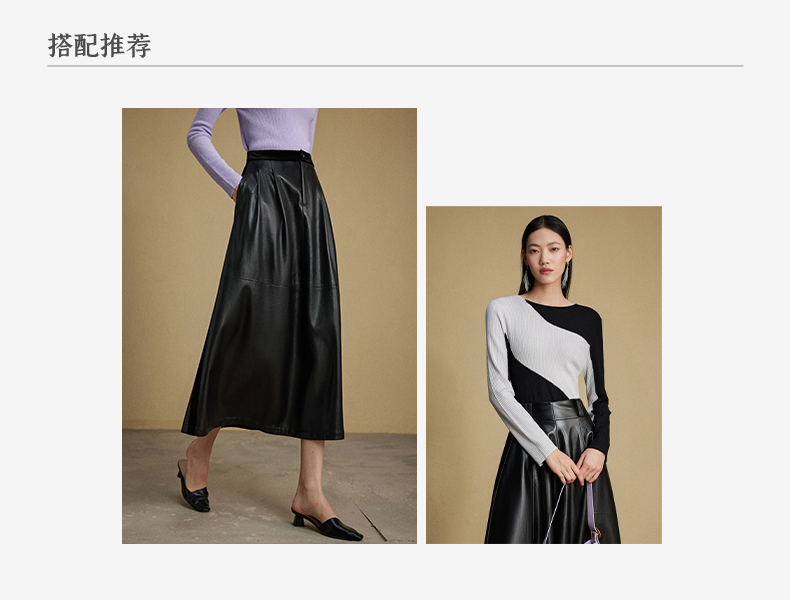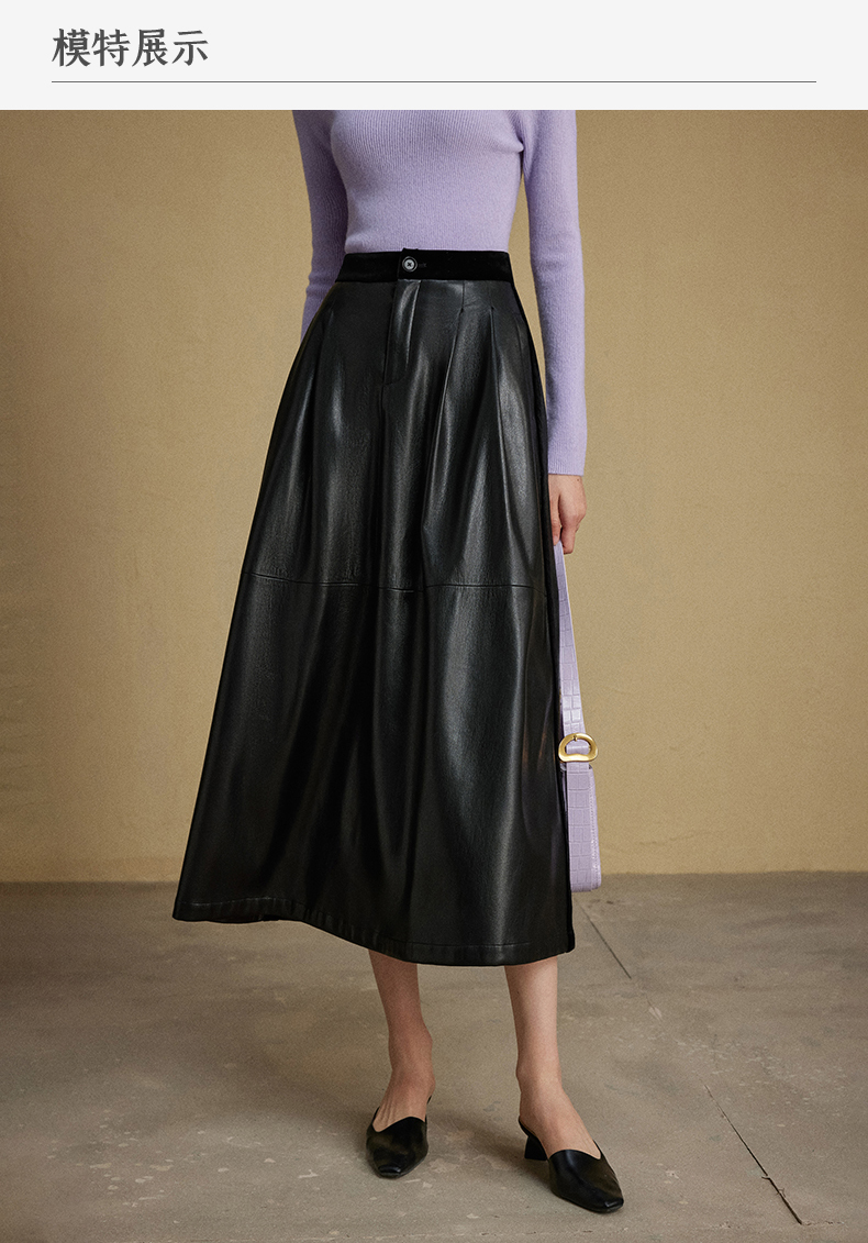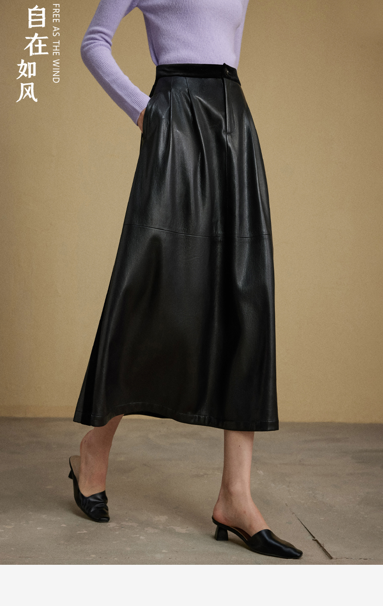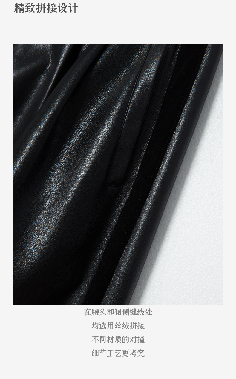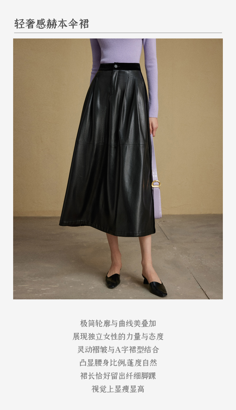 西嘉C+IMPRESS/西嘉静奢风黑色皮裙半身裙女中长款秋a字蛋白pu皮伞裙BQ2304033