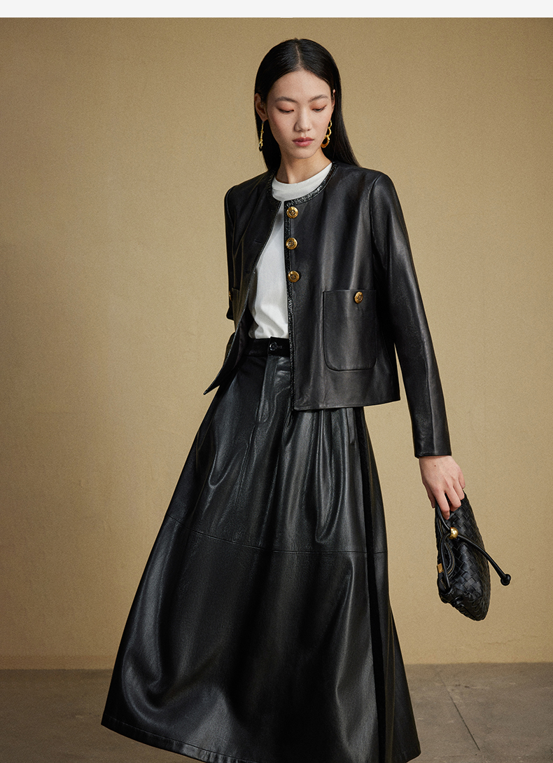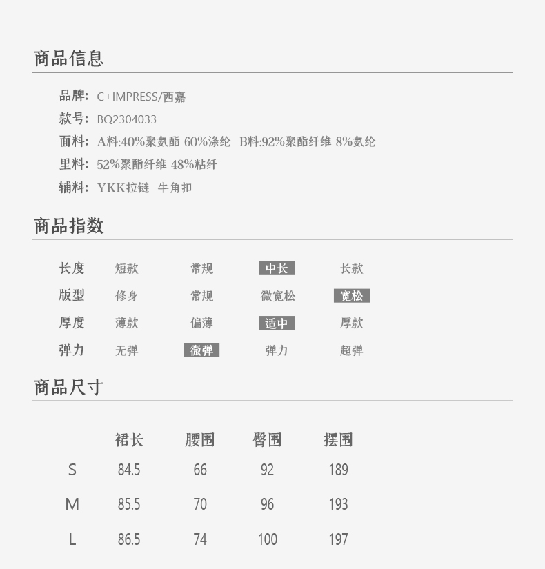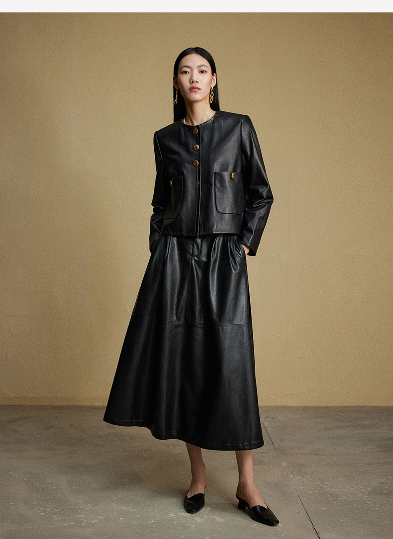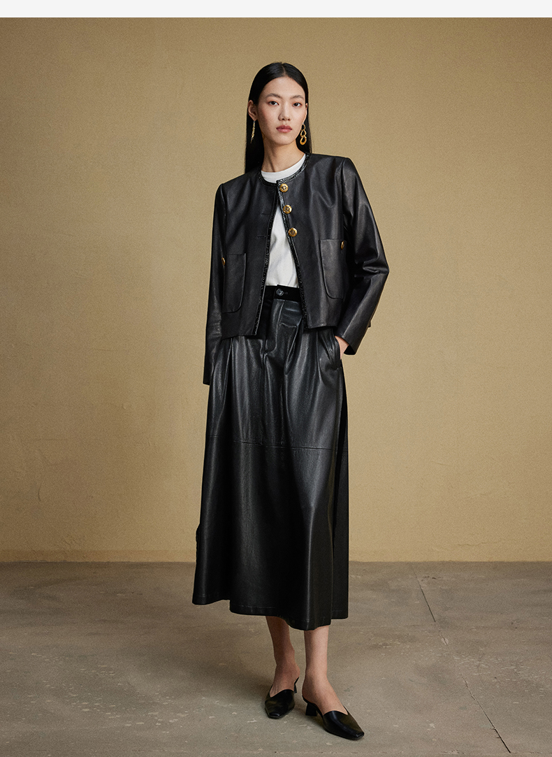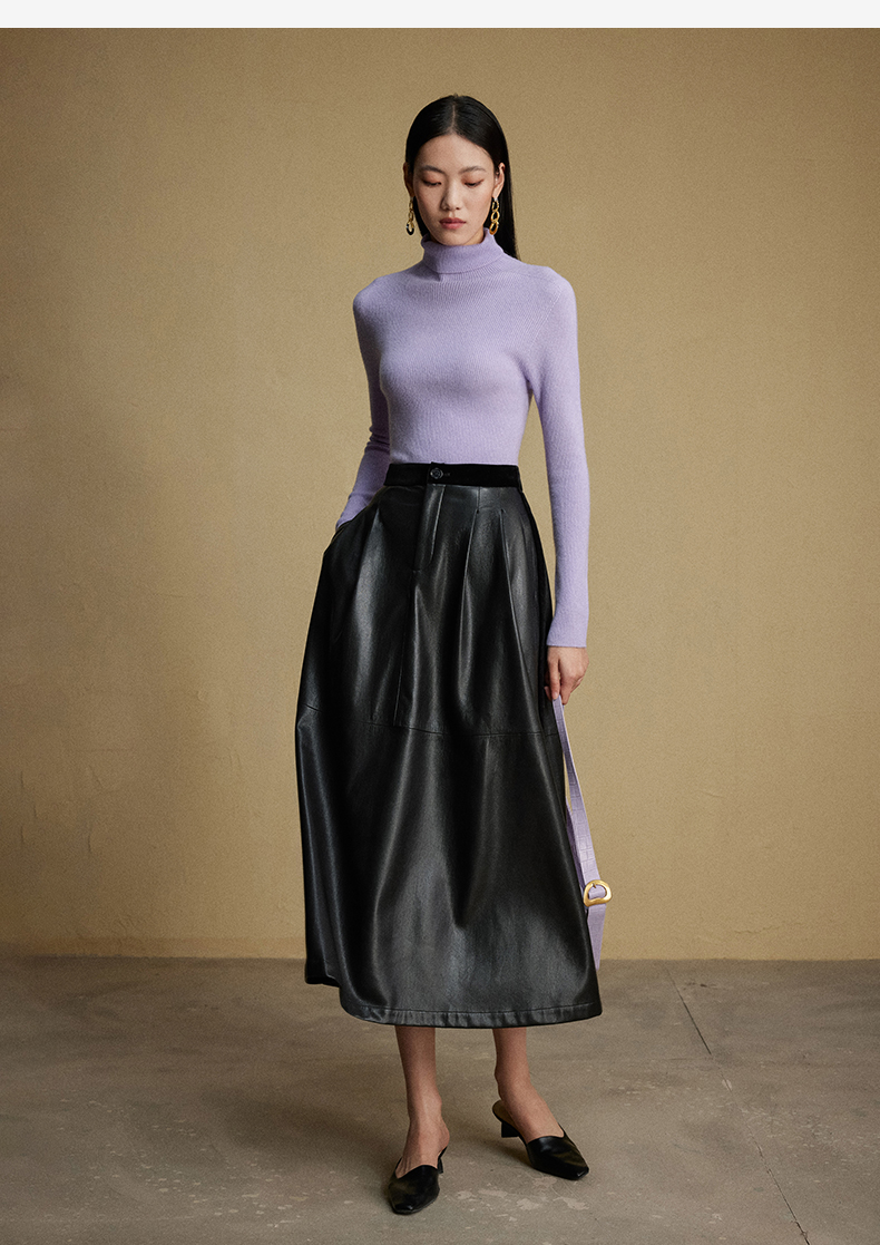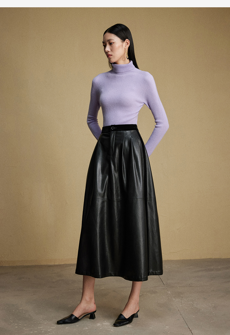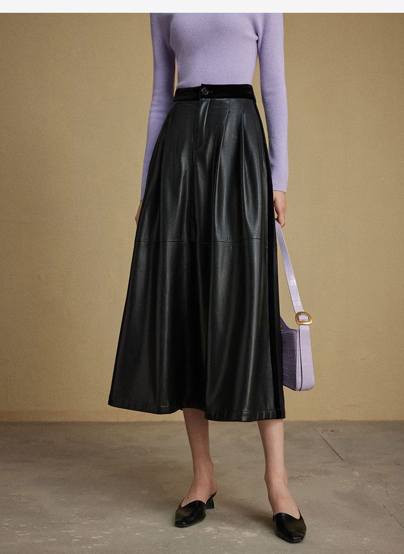 西嘉C+IMPRESS/西嘉静奢风黑色皮裙半身裙女中长款秋a字蛋白pu皮伞裙BQ2304033