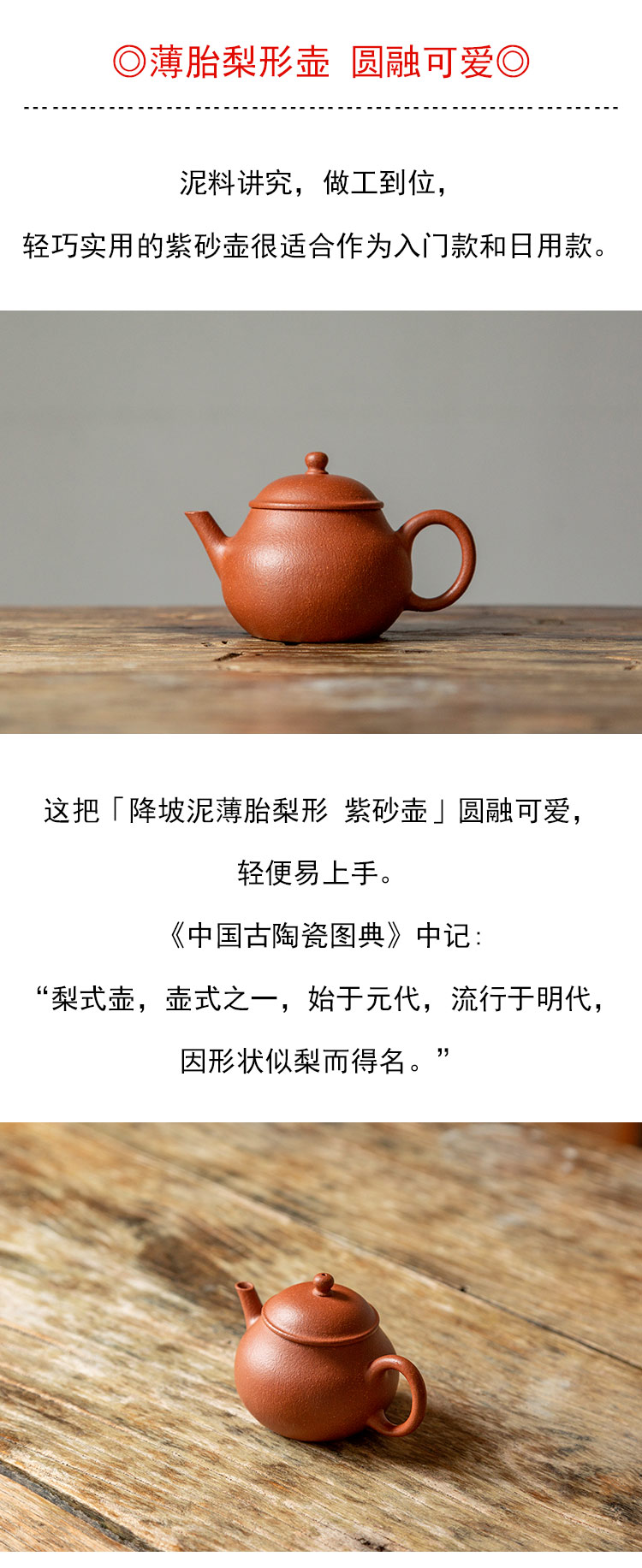 茶香记 降坡泥薄胎梨形紫砂壶 入门日用款 小巧可爱 轻巧实用