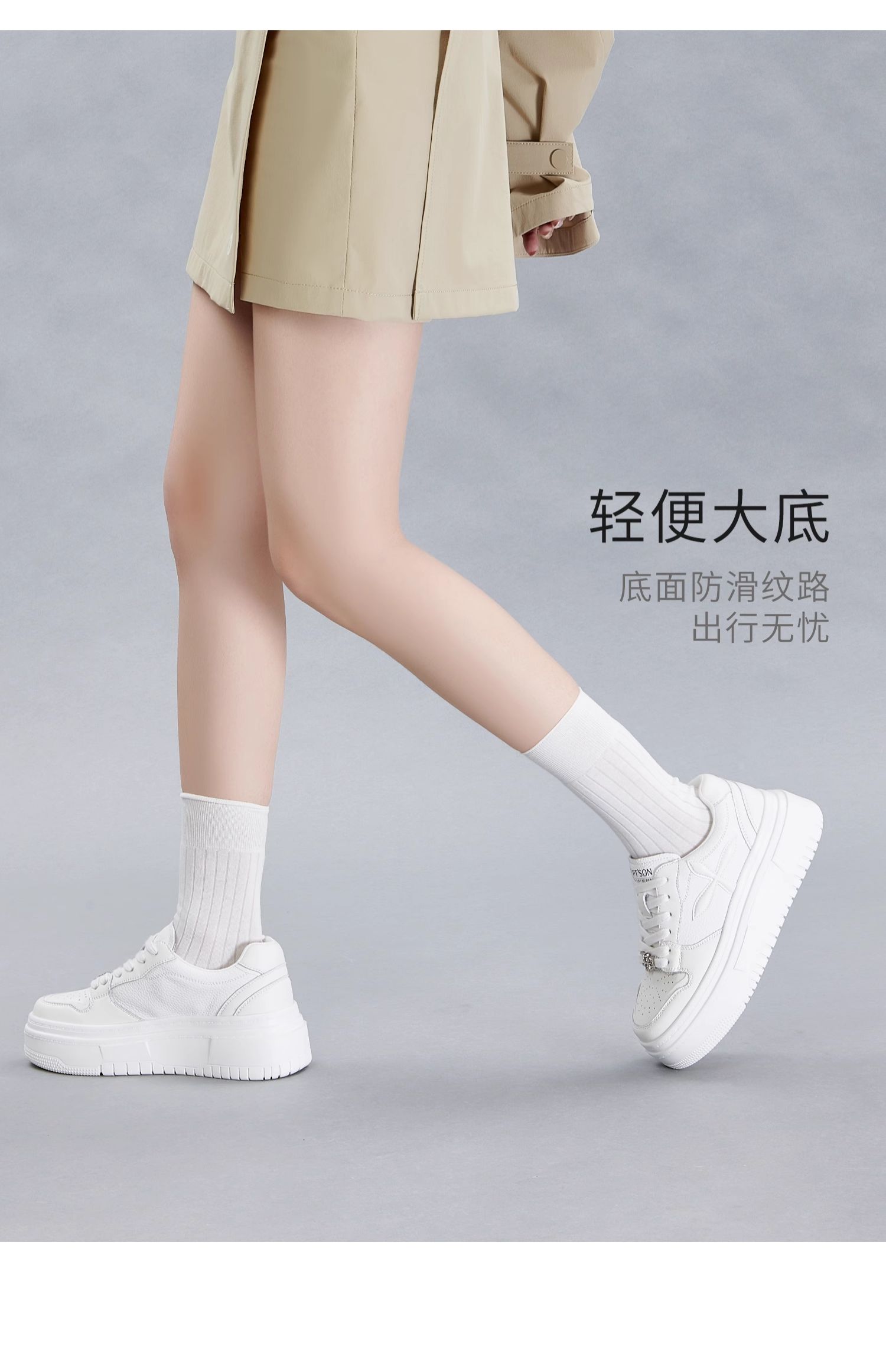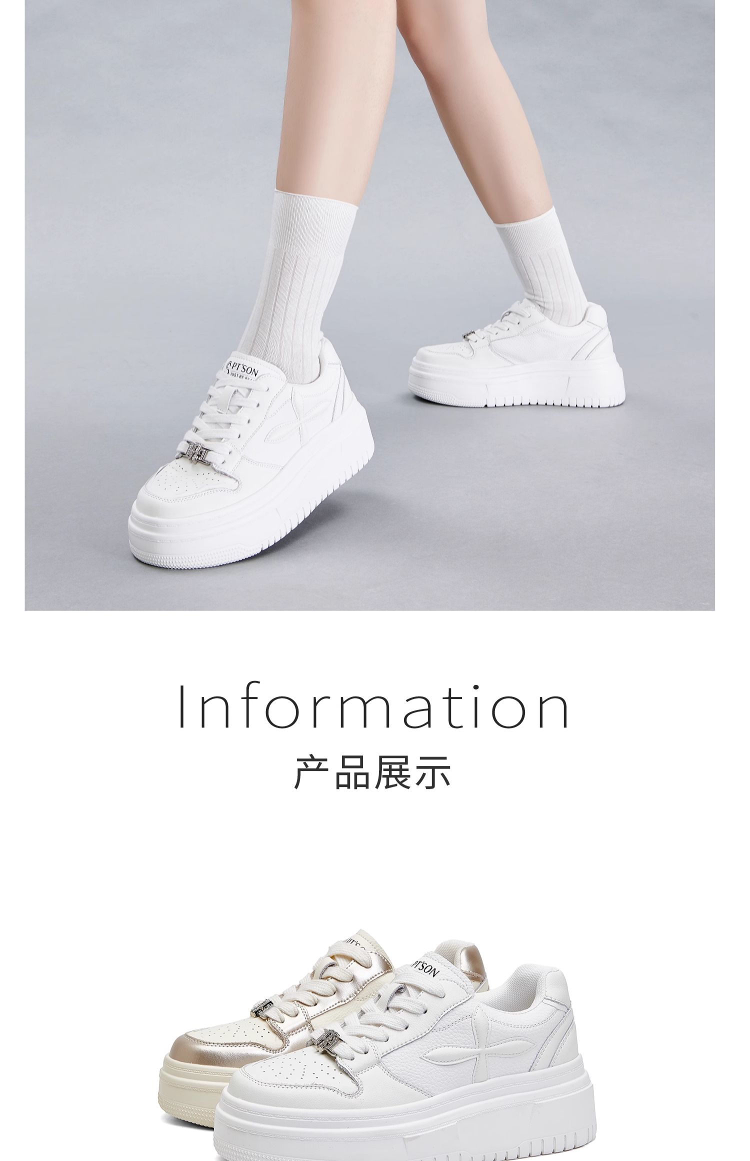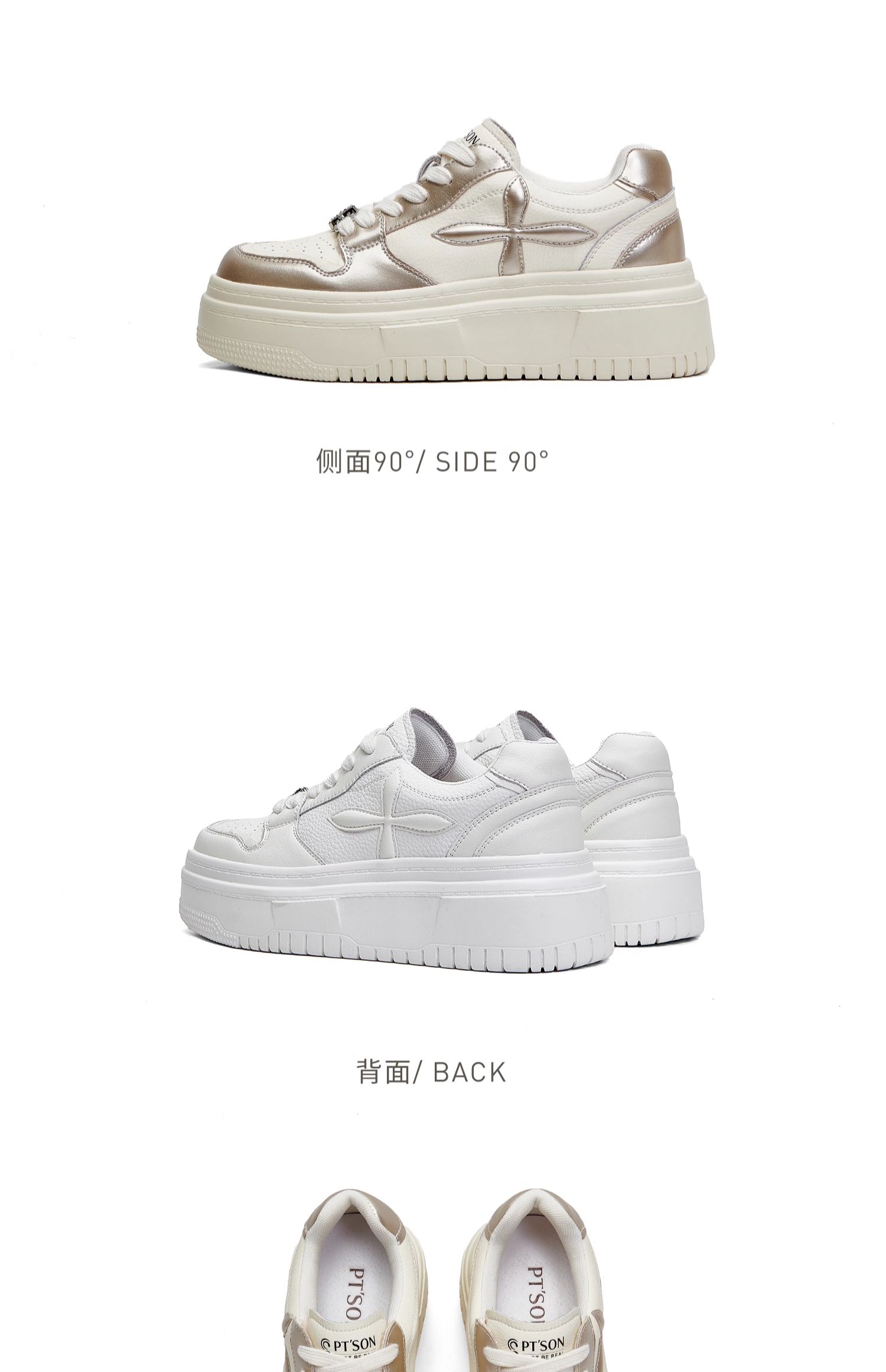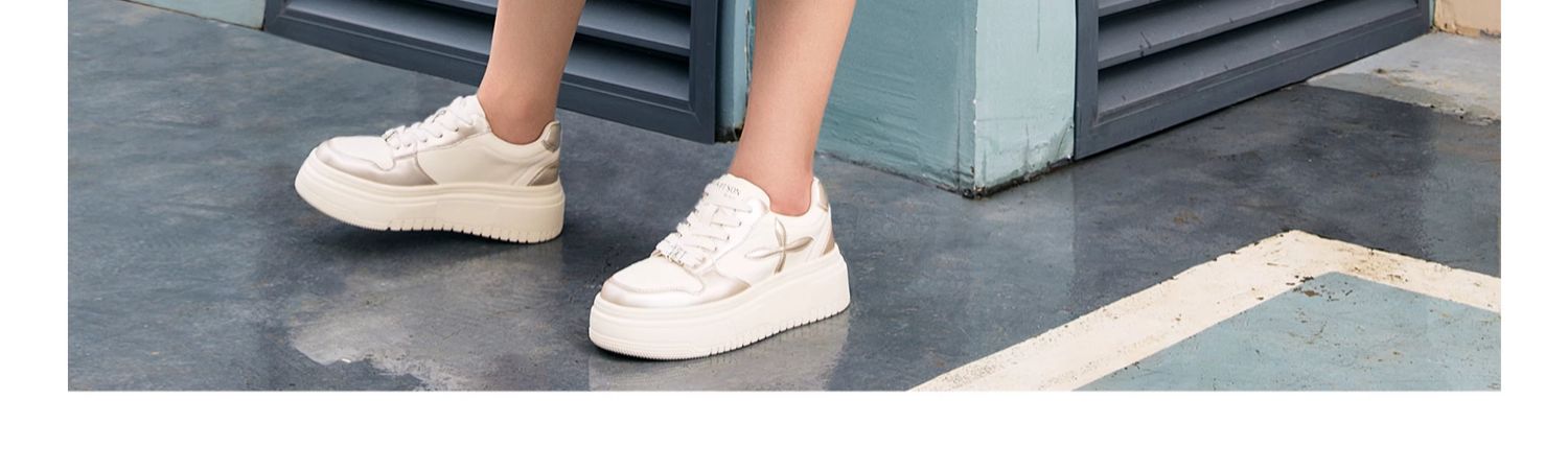 百田森PXP2C697早秋厚底休闲小白鞋女圆头松糕底增高板鞋运动