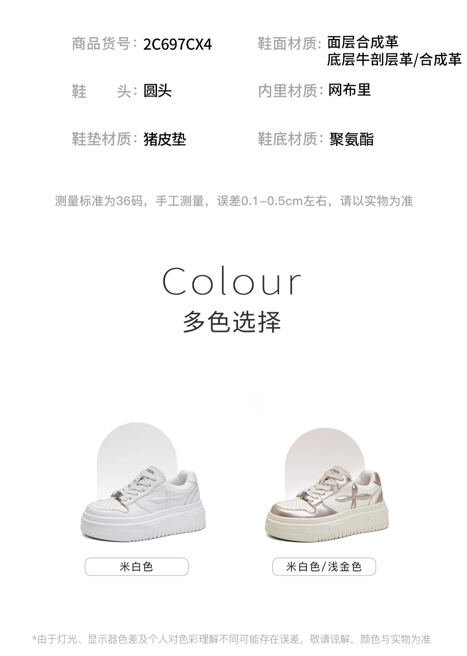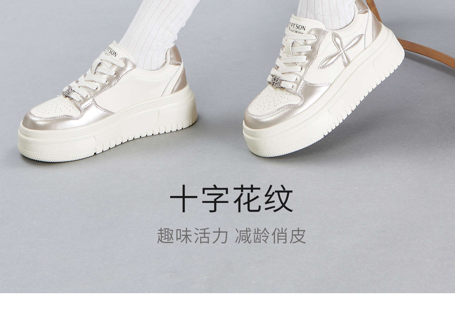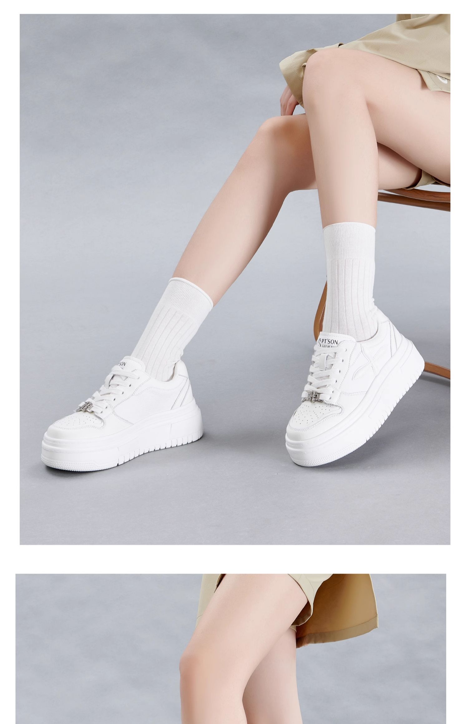 百田森PXP2C697早秋厚底休闲小白鞋女圆头松糕底增高板鞋运动