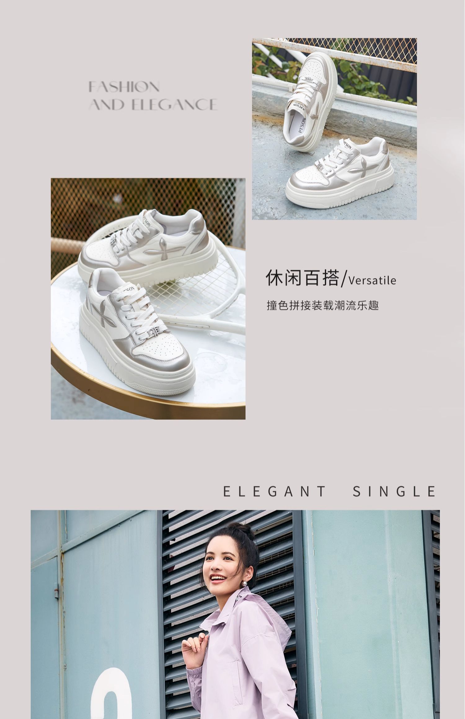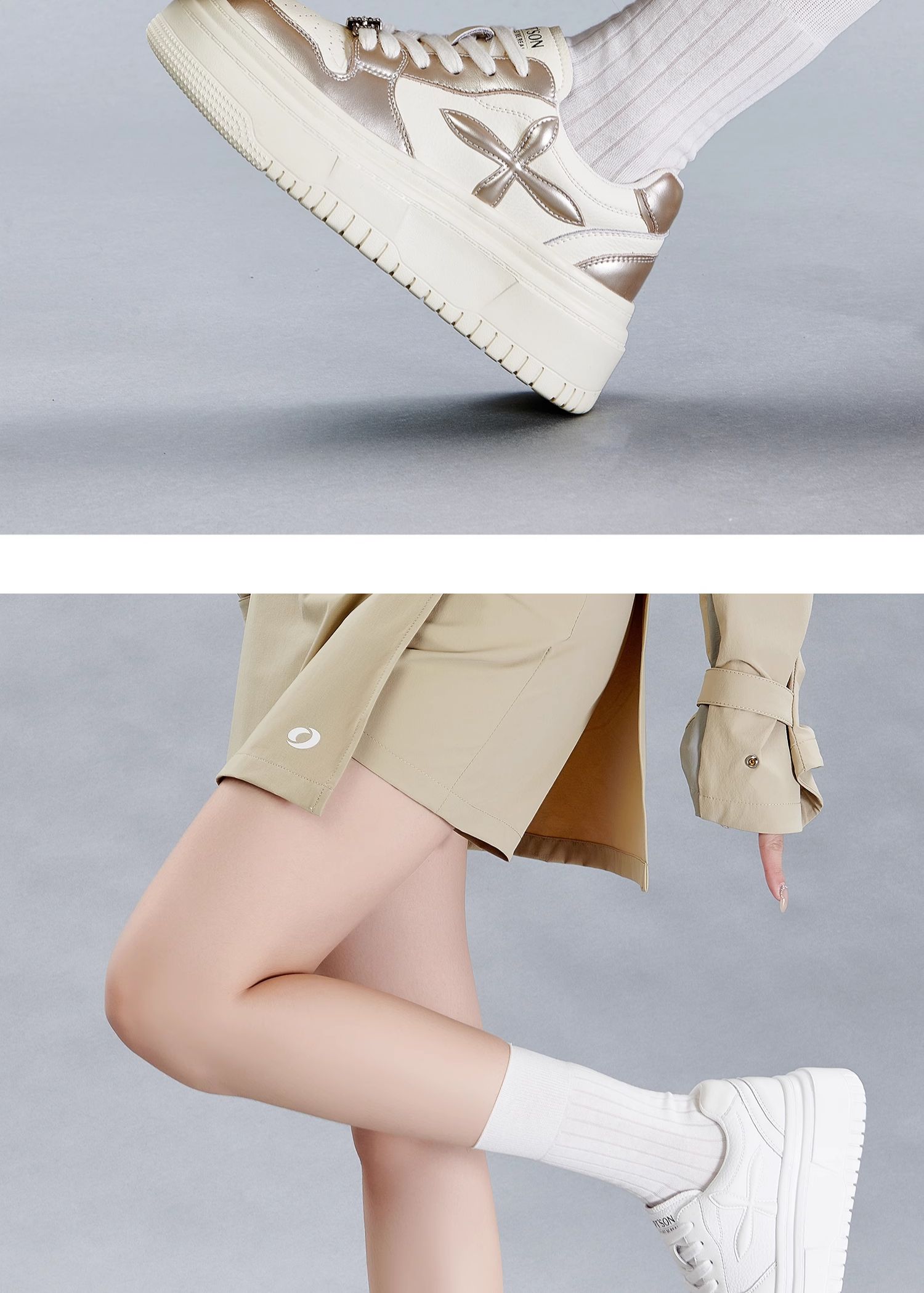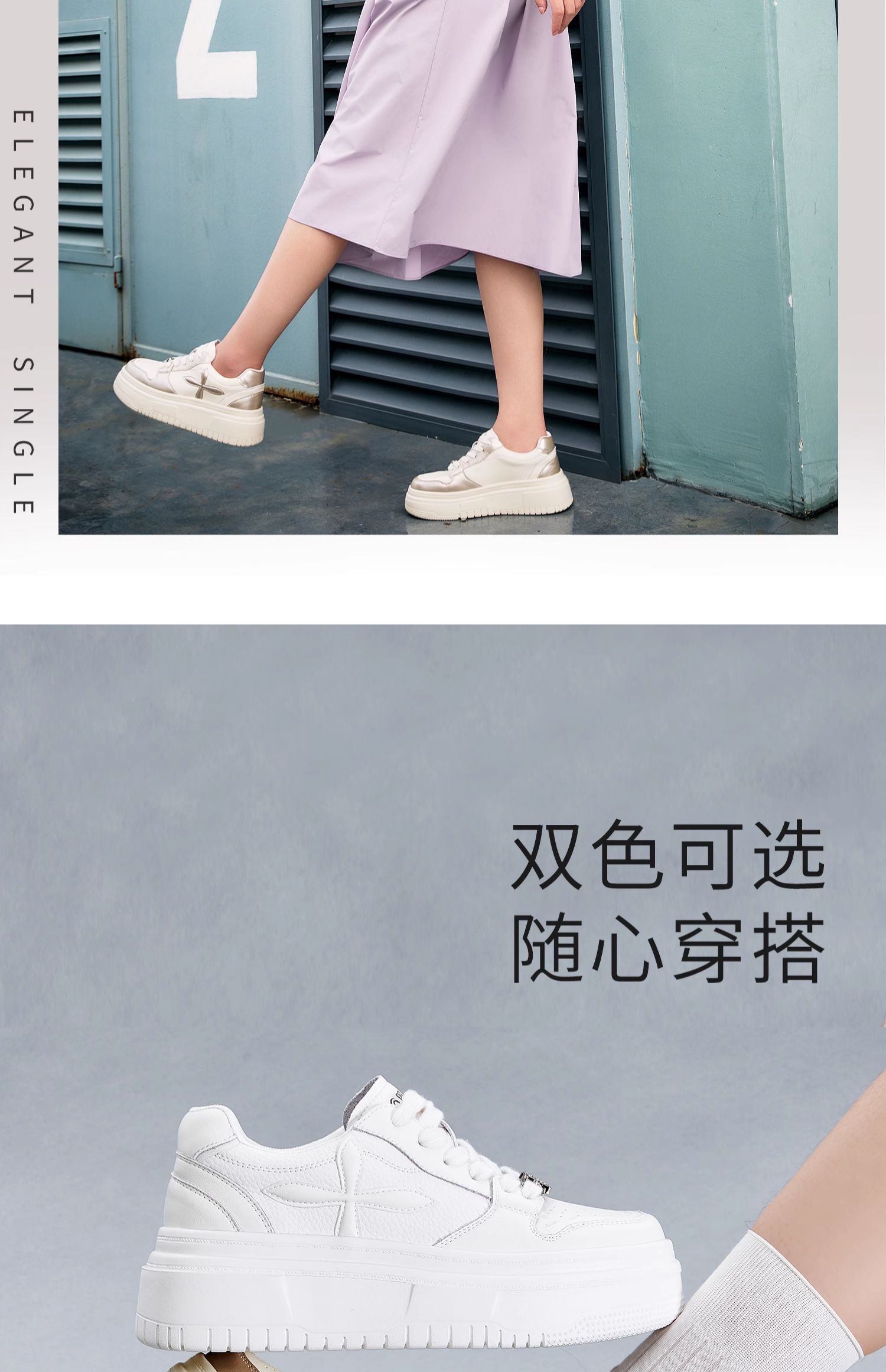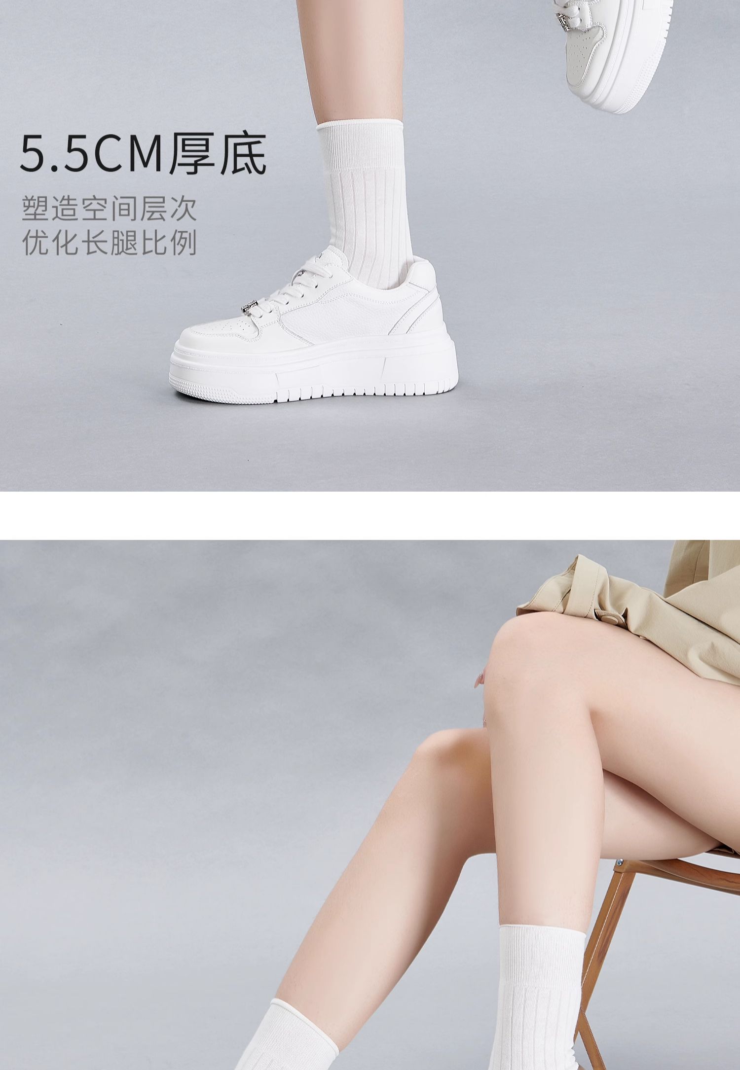 百田森PXP2C697早秋厚底休闲小白鞋女圆头松糕底增高板鞋运动