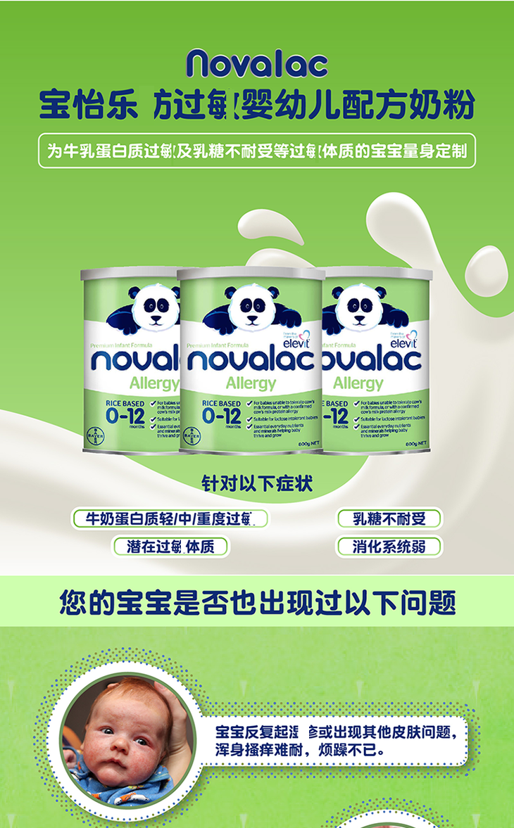 直邮~ 澳洲拜耳宝怡乐大米蛋白奶粉婴幼儿童宝宝特殊配方过敏水解800g*3罐
