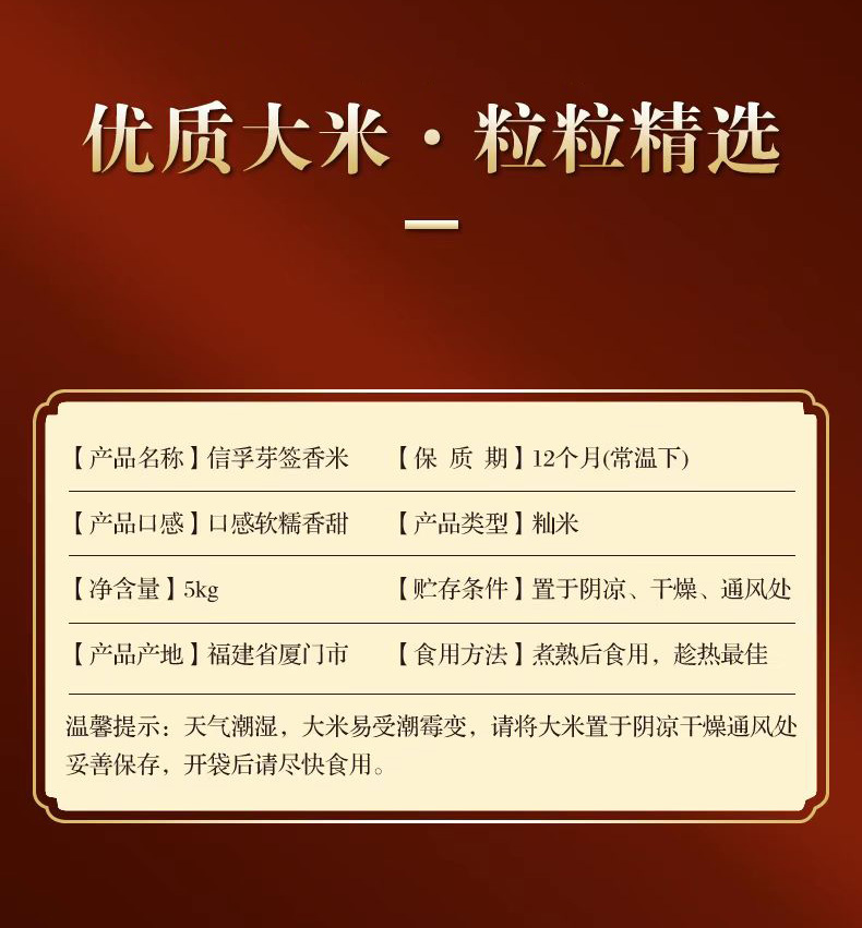 信孚1999芽签香米/1袋(5kg)生产日期:25年10月