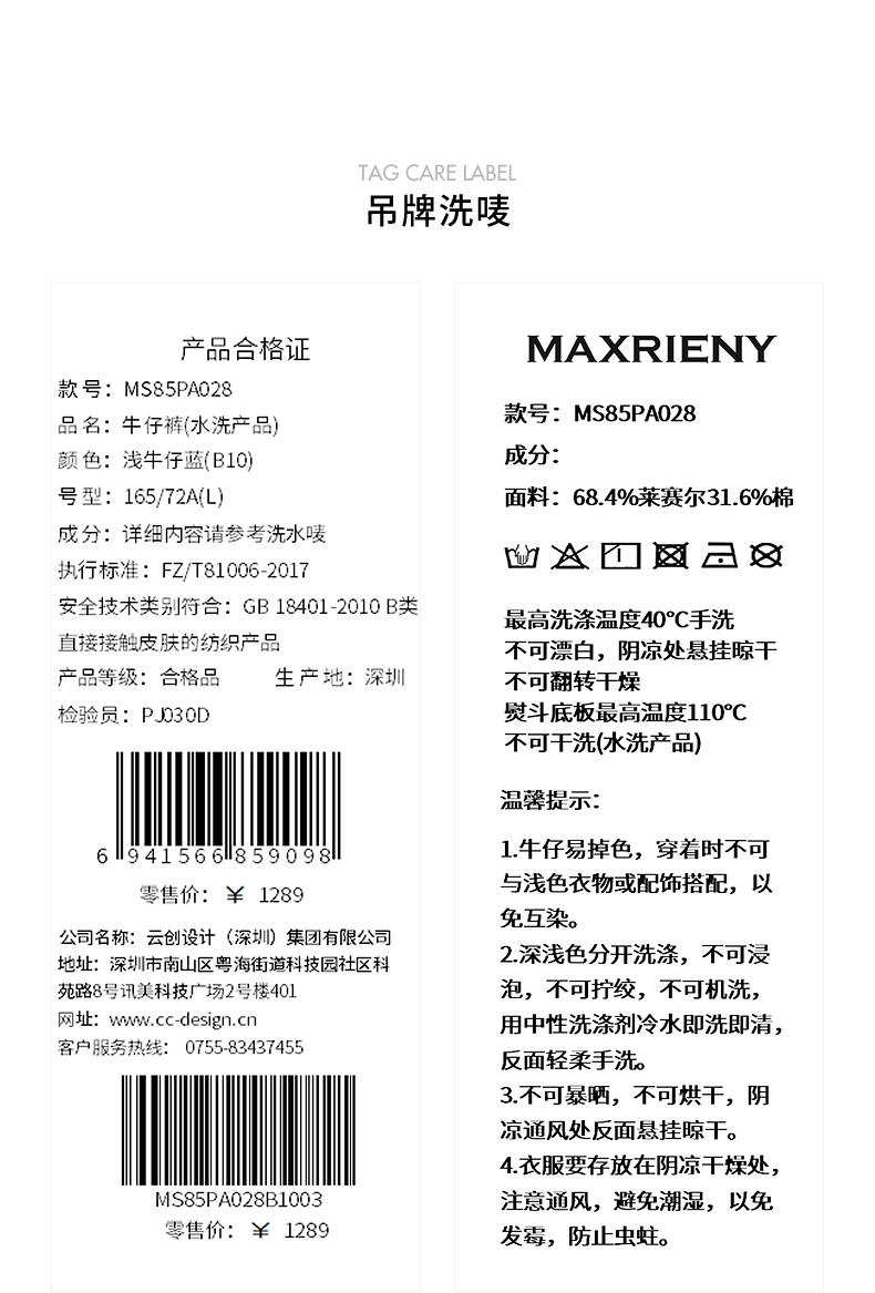 MAXRIENY 2024夏牛仔裤(货号:MS85PA028)