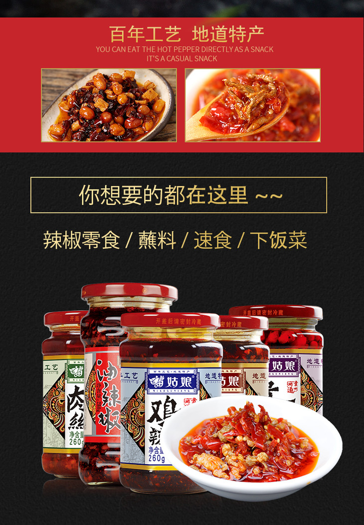 苗姑娘 牛肉油辣椒+肉丝泡椒+贵州五脆+鸡辣椒+油辣椒 1310g五瓶装全家福