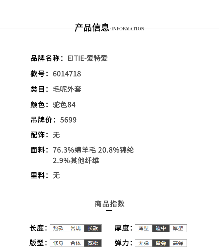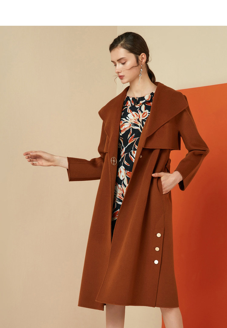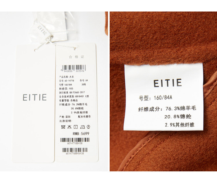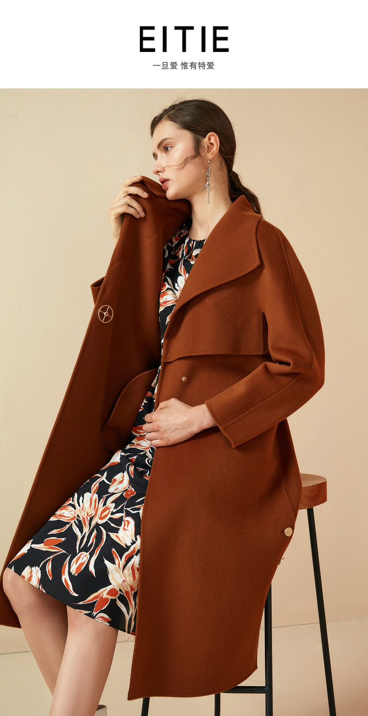 无货下架-EITIE爱特爱女装秋冬时尚斗篷中长收腰羊毛呢大衣双面呢6014718