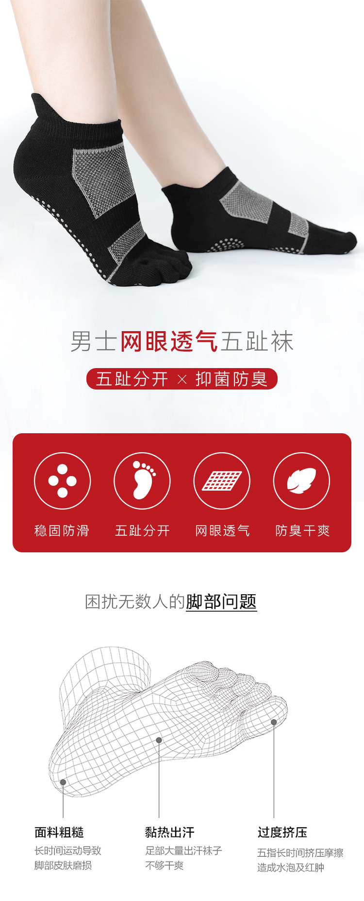F1055男装五趾袜 男瑜伽袜 黑色瑜伽袜子