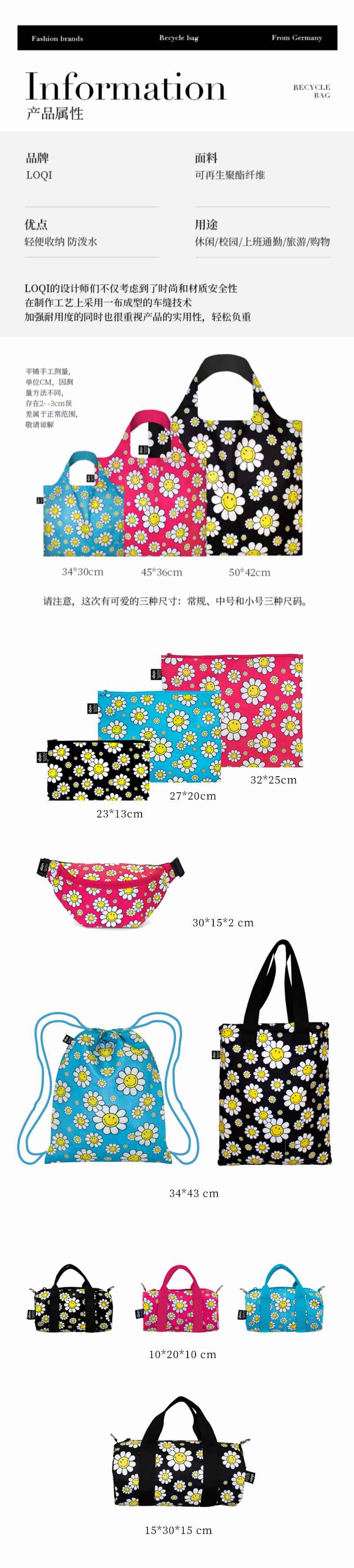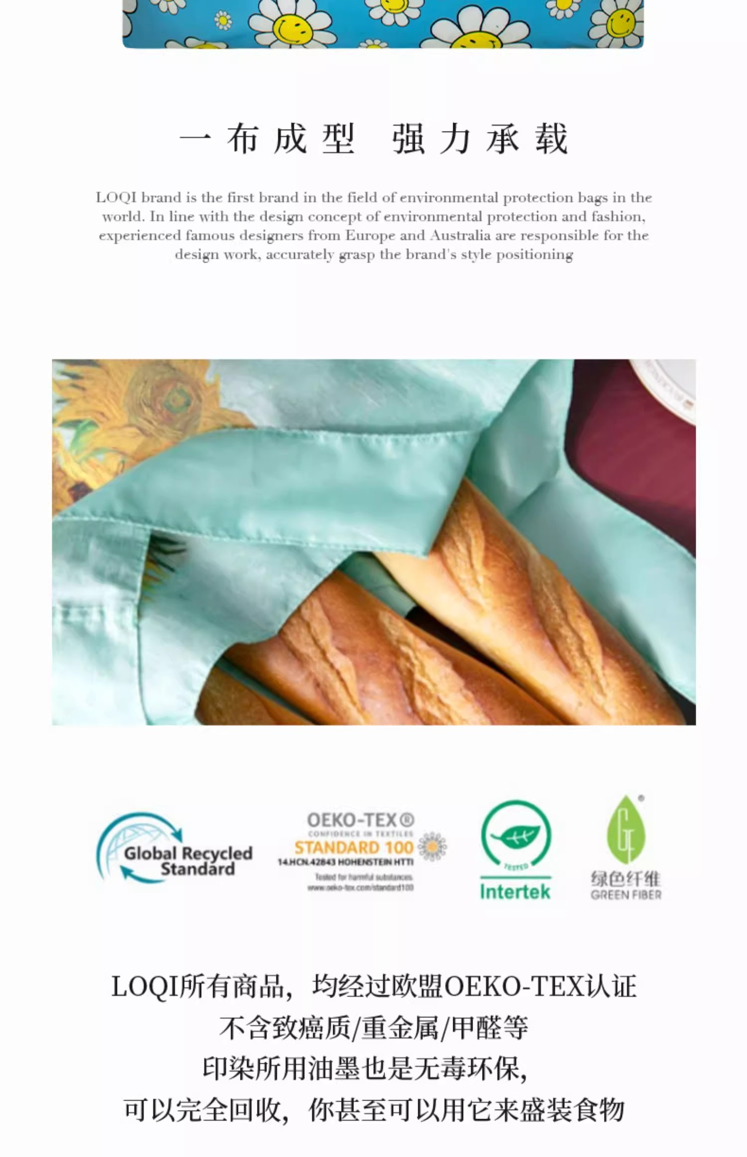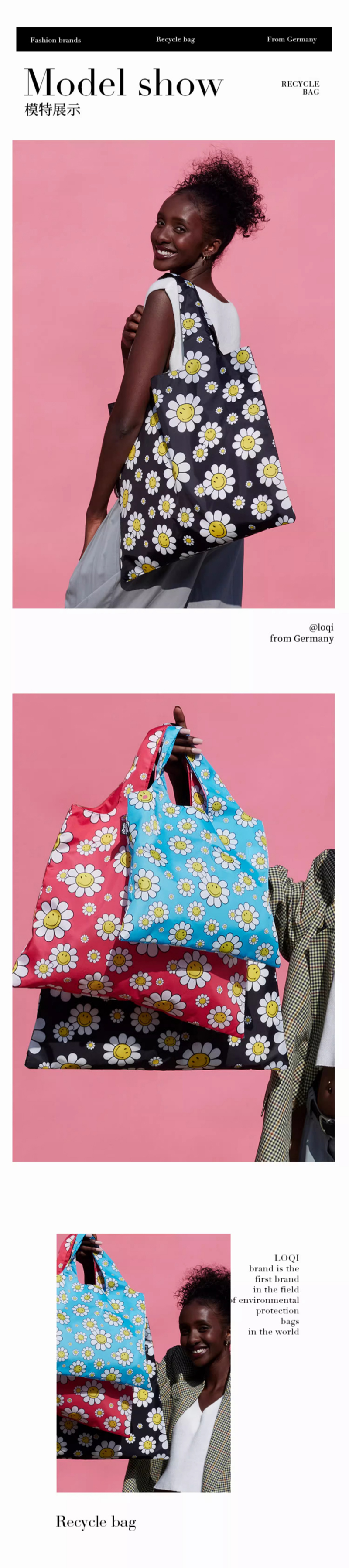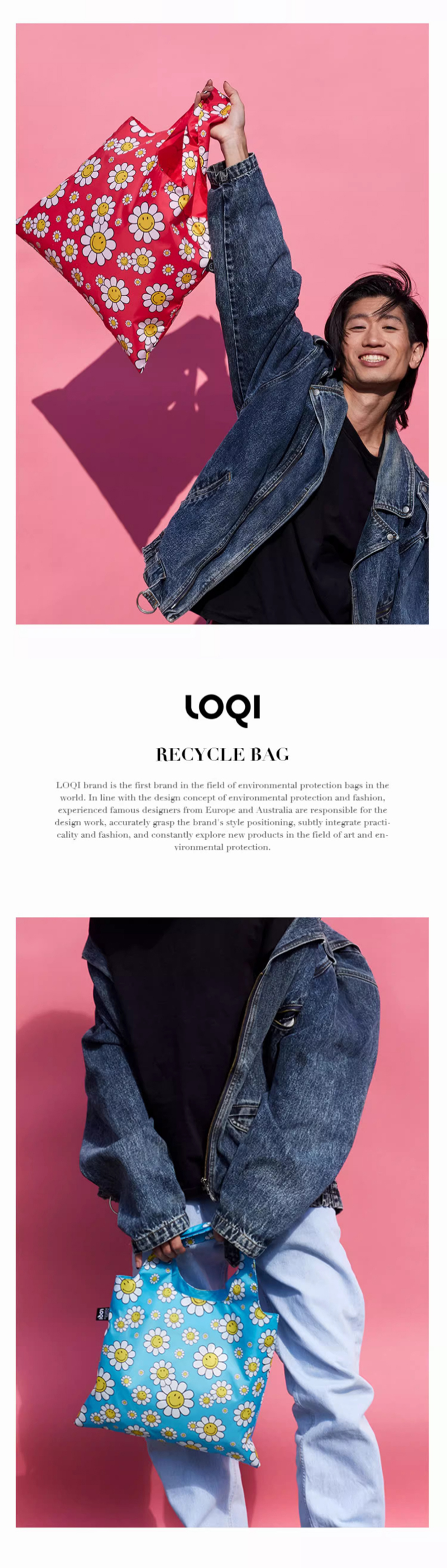 LOQI x Smiley花朵笑脸联名 时尚艺术环保万用袋 折叠大容量单肩手提购物袋承重40斤防泼水