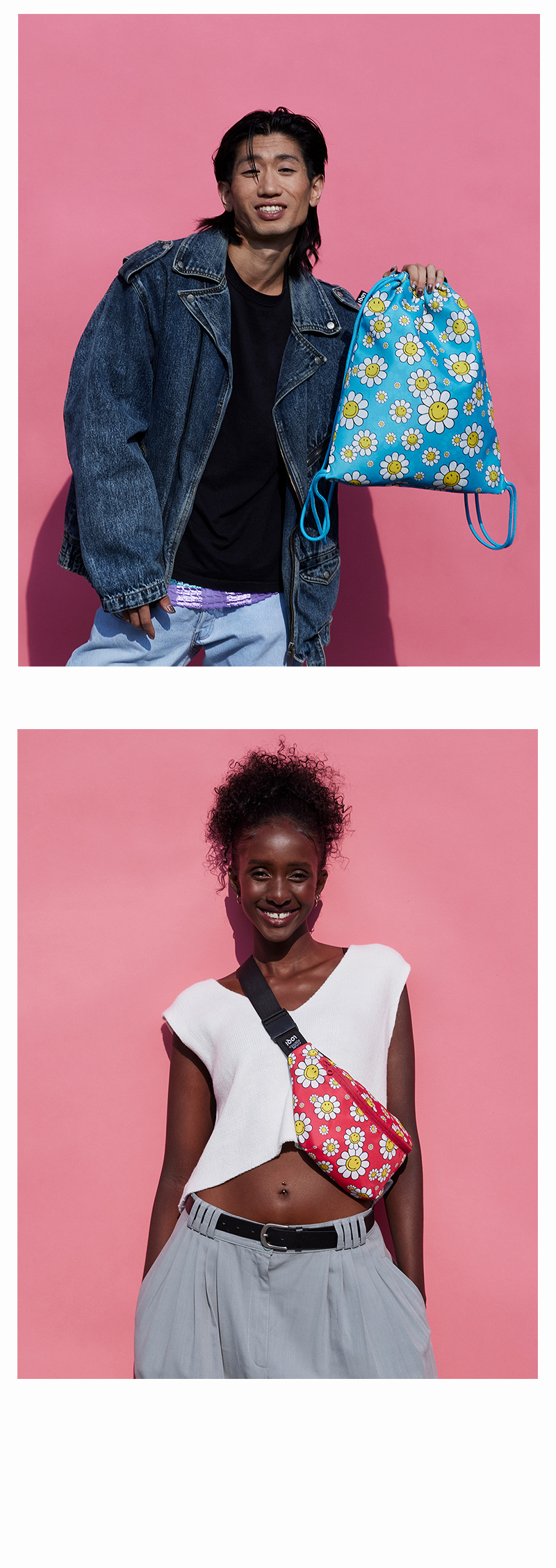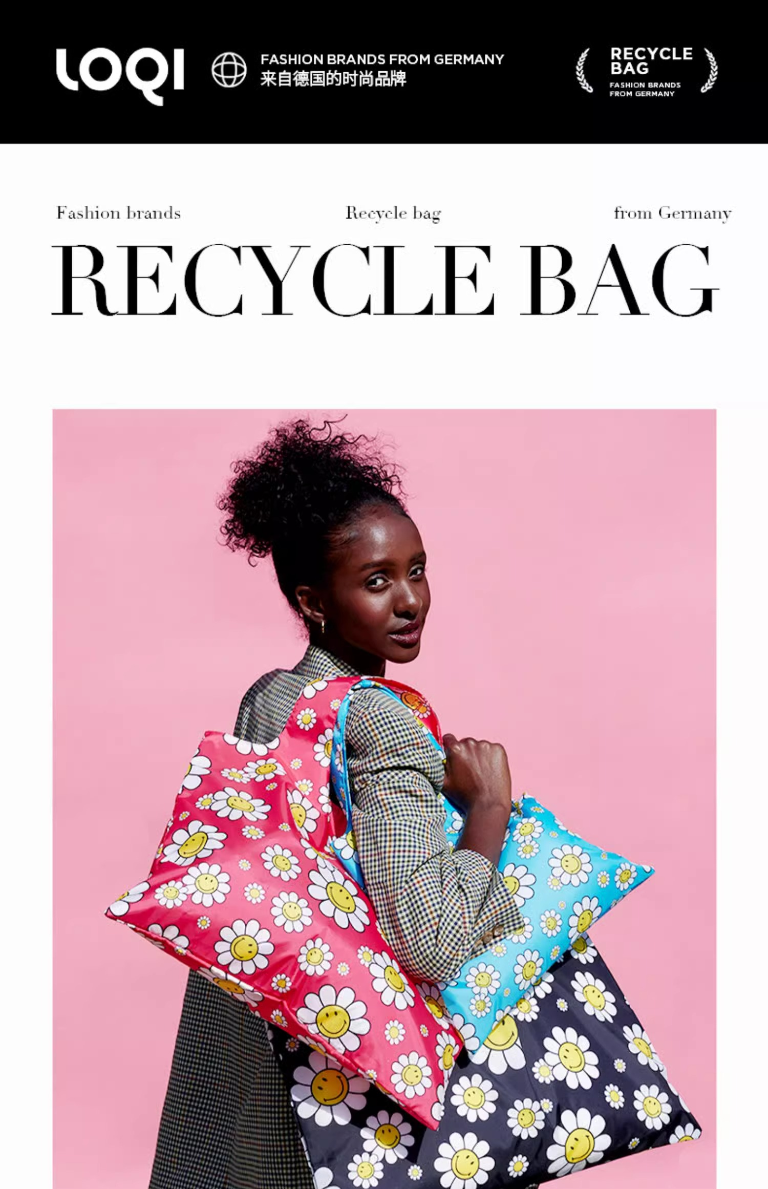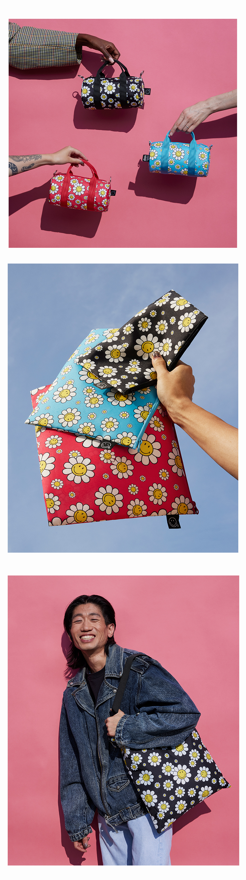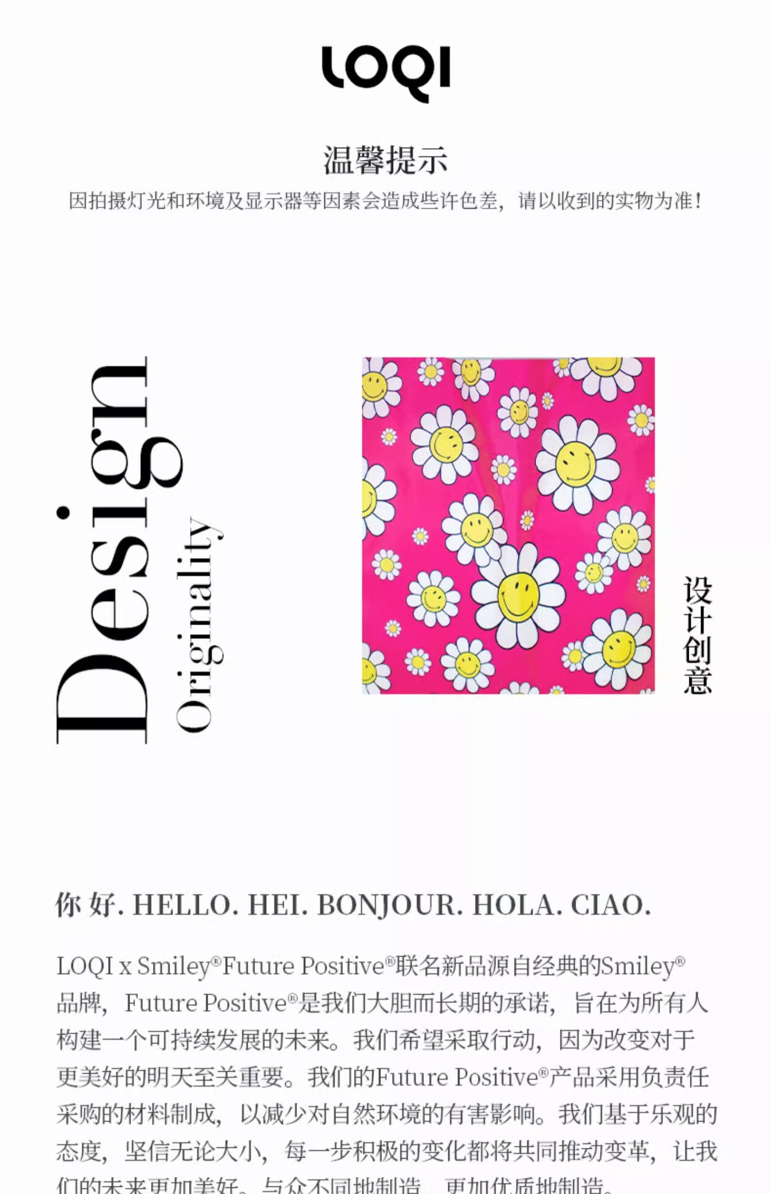 LOQI x Smiley花朵笑脸联名 时尚艺术环保万用袋 折叠大容量单肩手提购物袋承重40斤防泼水