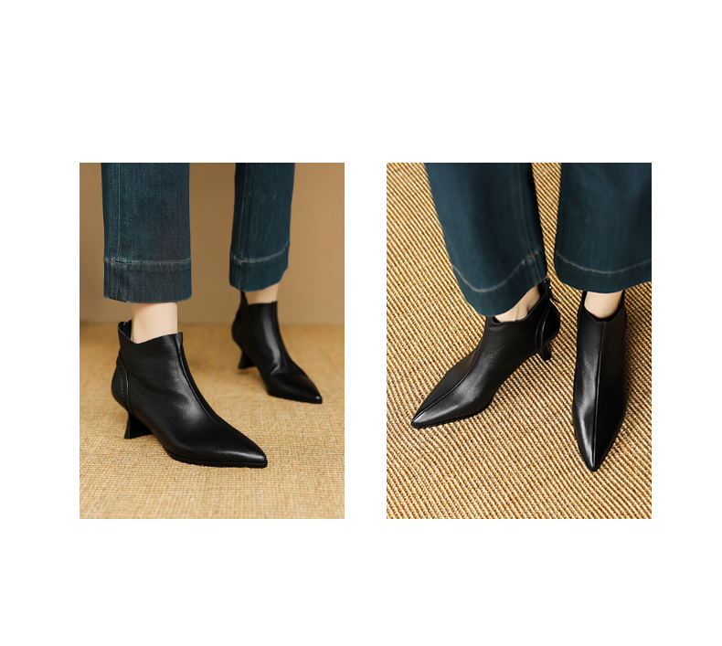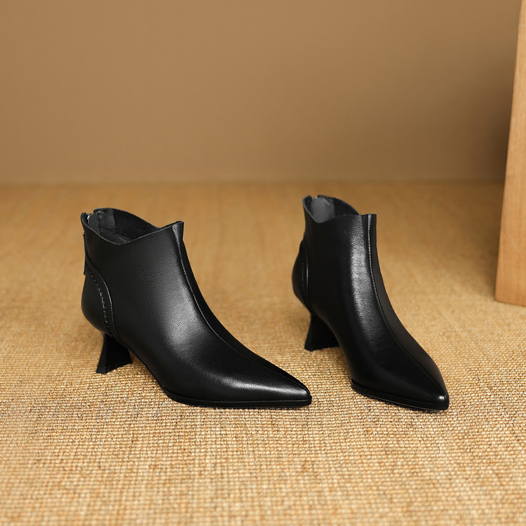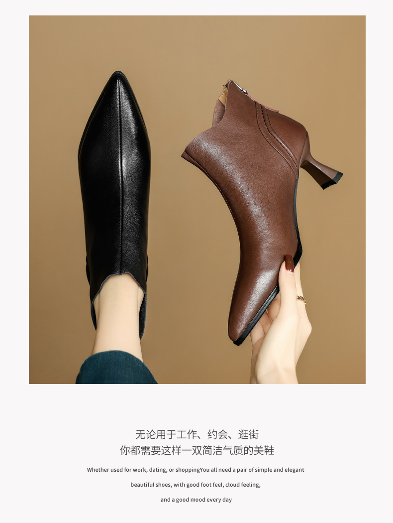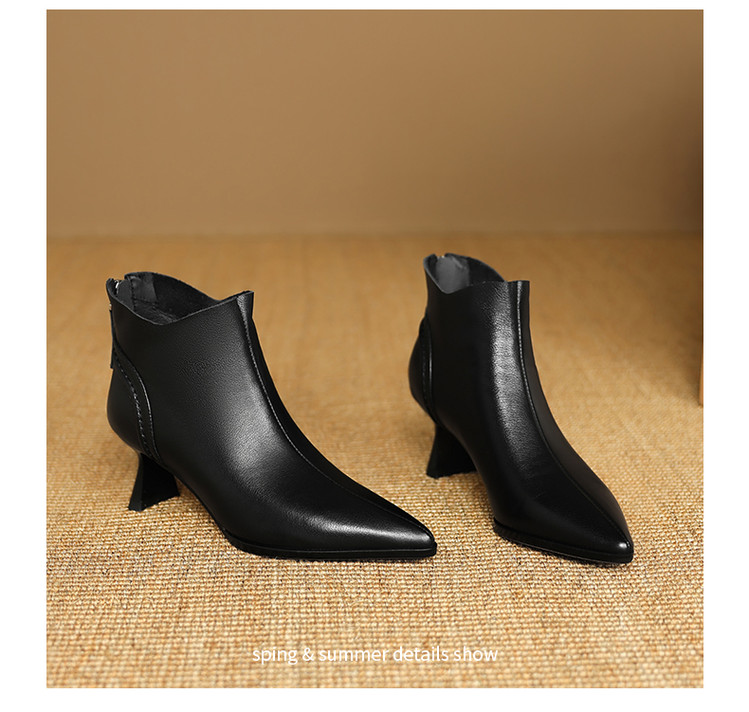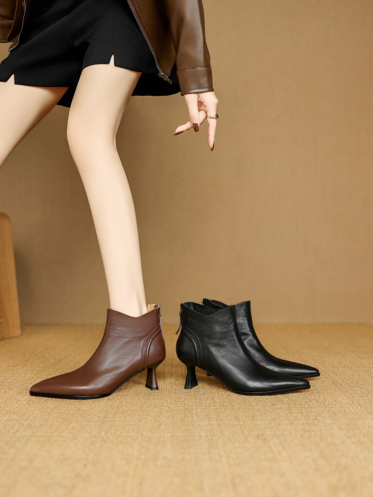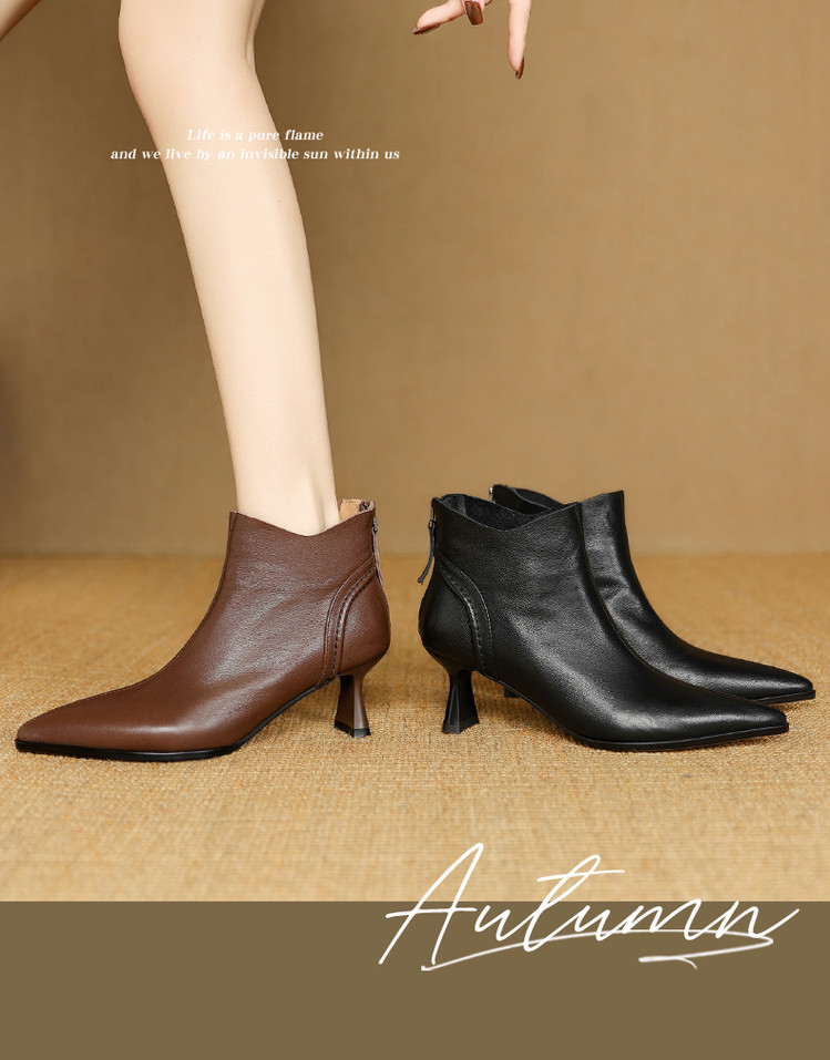 【预售5天】欧美气质头层牛皮踝靴尖头秋冬加绒高跟靴子通勤细跟短靴女DB&M6616