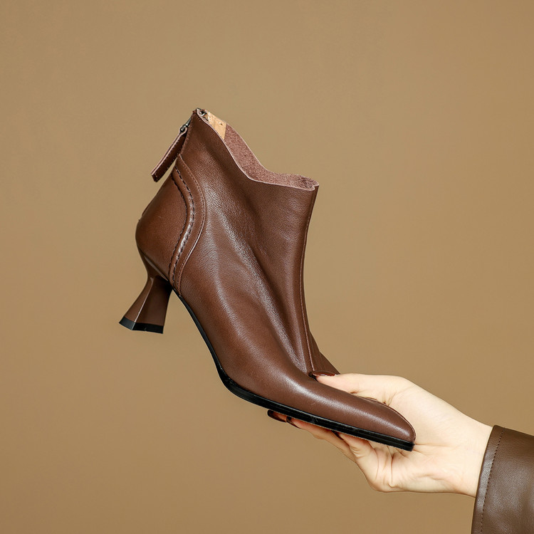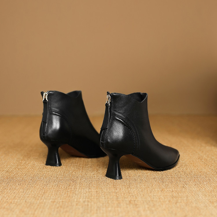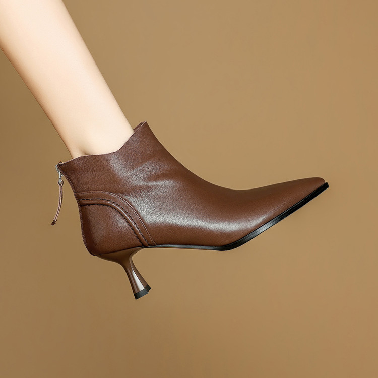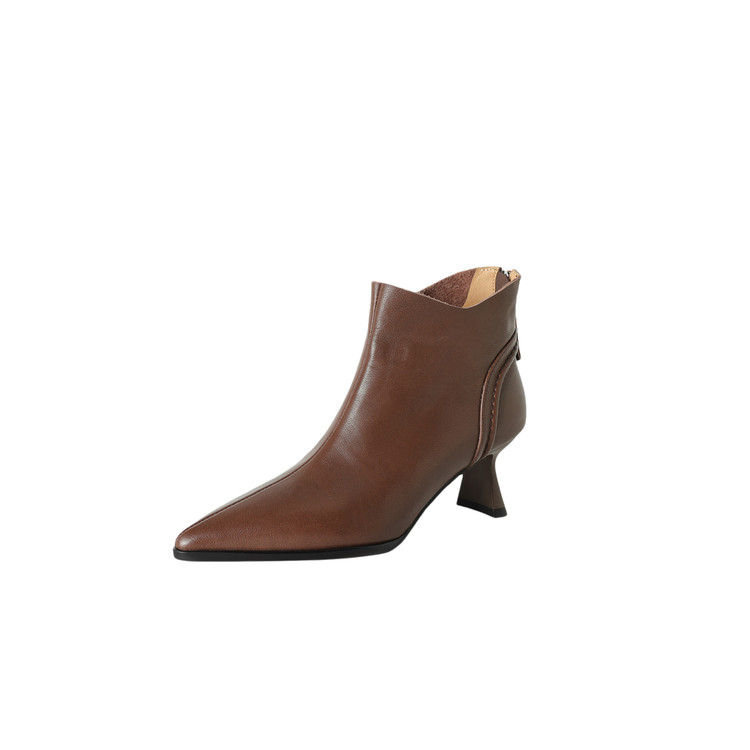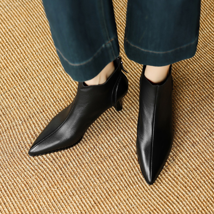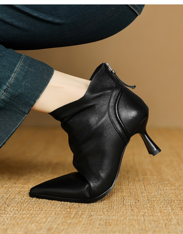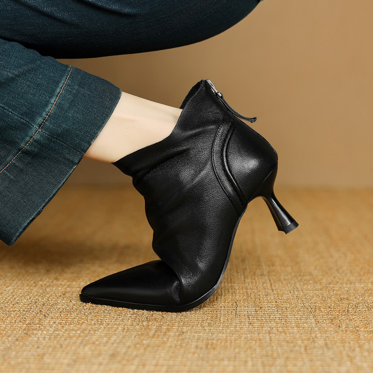 【预售5天】欧美气质头层牛皮踝靴尖头秋冬加绒高跟靴子通勤细跟短靴女DB&M6616
