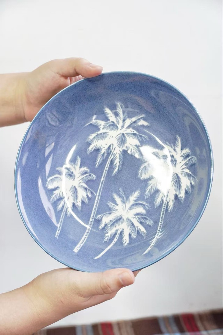 【孤品捡漏】Trees&wind油画艺术餐盘/日式风7英寸斗笠 图案随机,每个均为不同图案