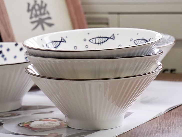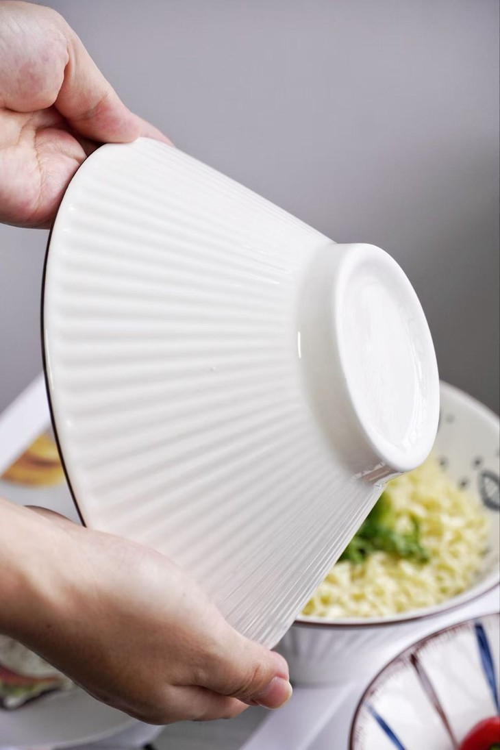 ✅精细竖纹陶瓷工艺,艺术感,防滑隔热,尤其适合盛放汤面等热食