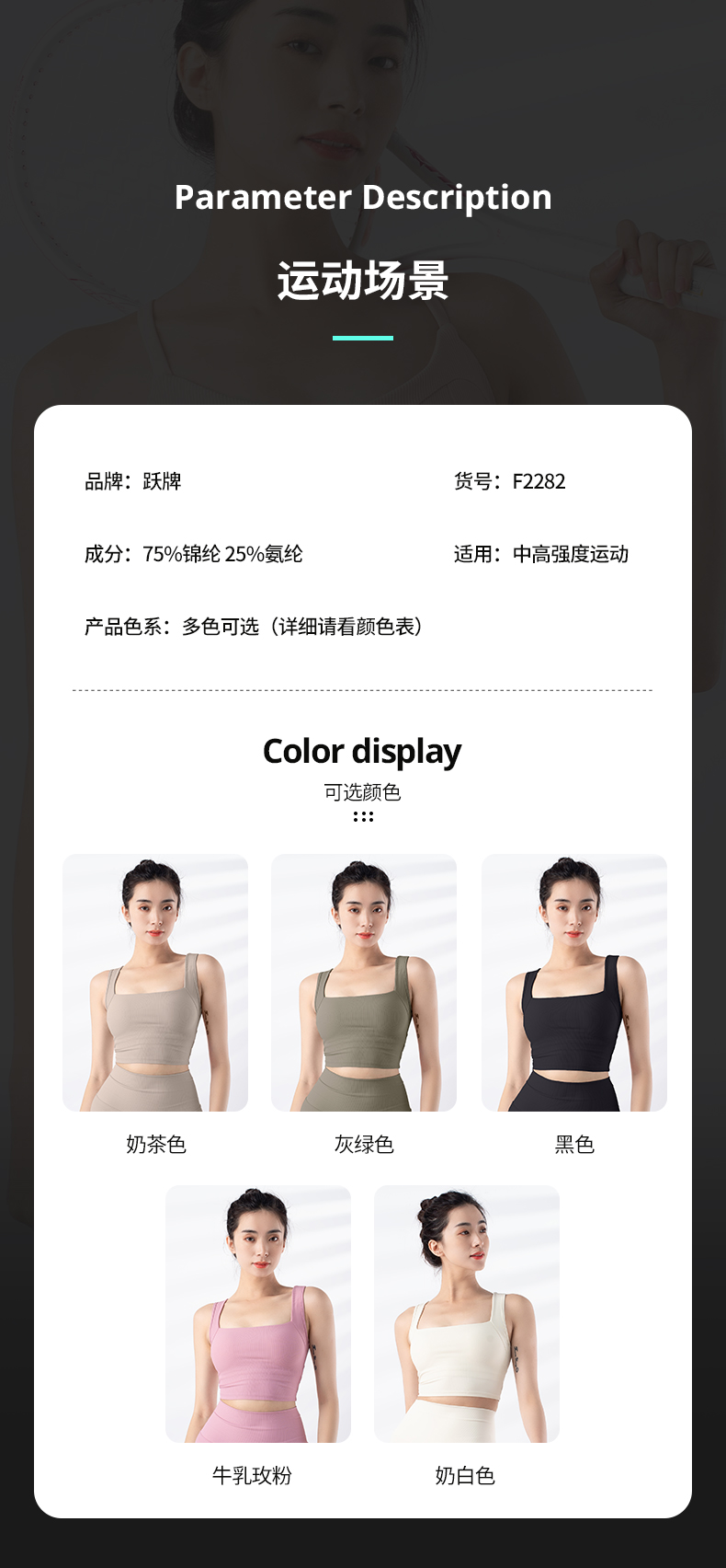 跃牌【禅语梵心系列】新品一体式固定杯跑步速干防震瑜伽文胸 F2282(一体式胸垫)