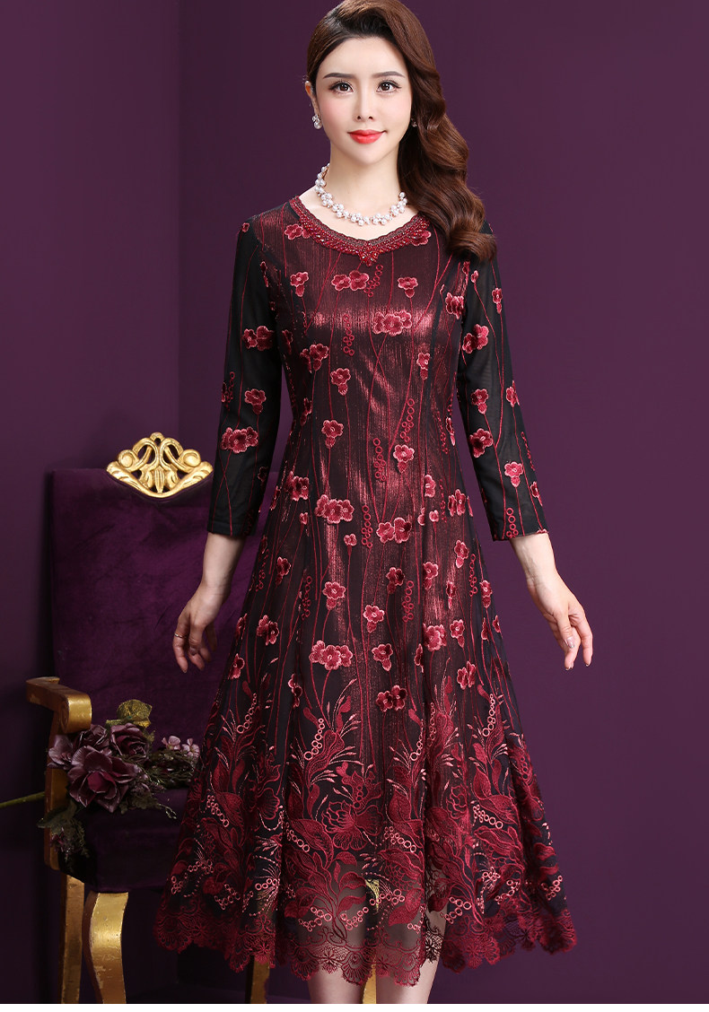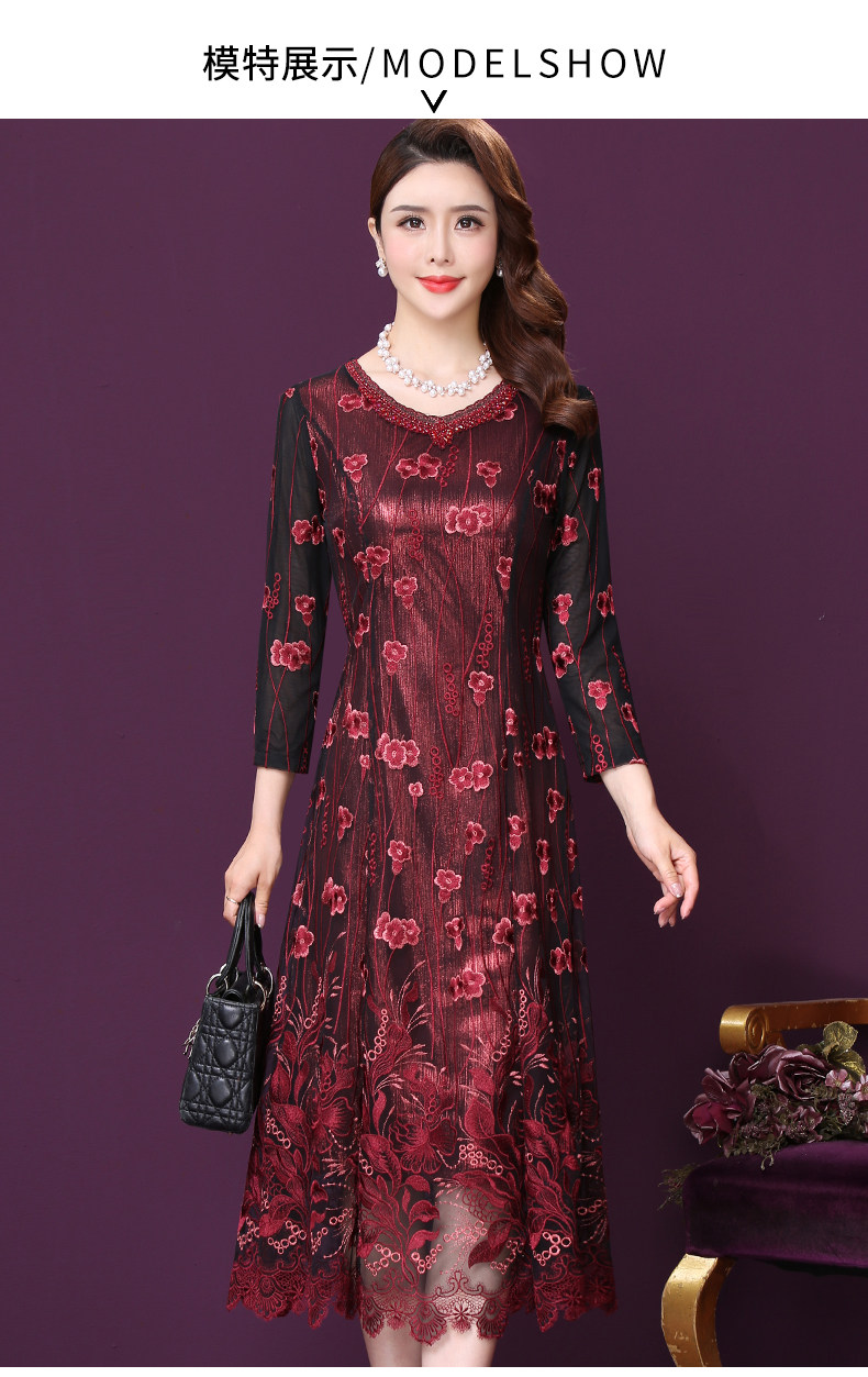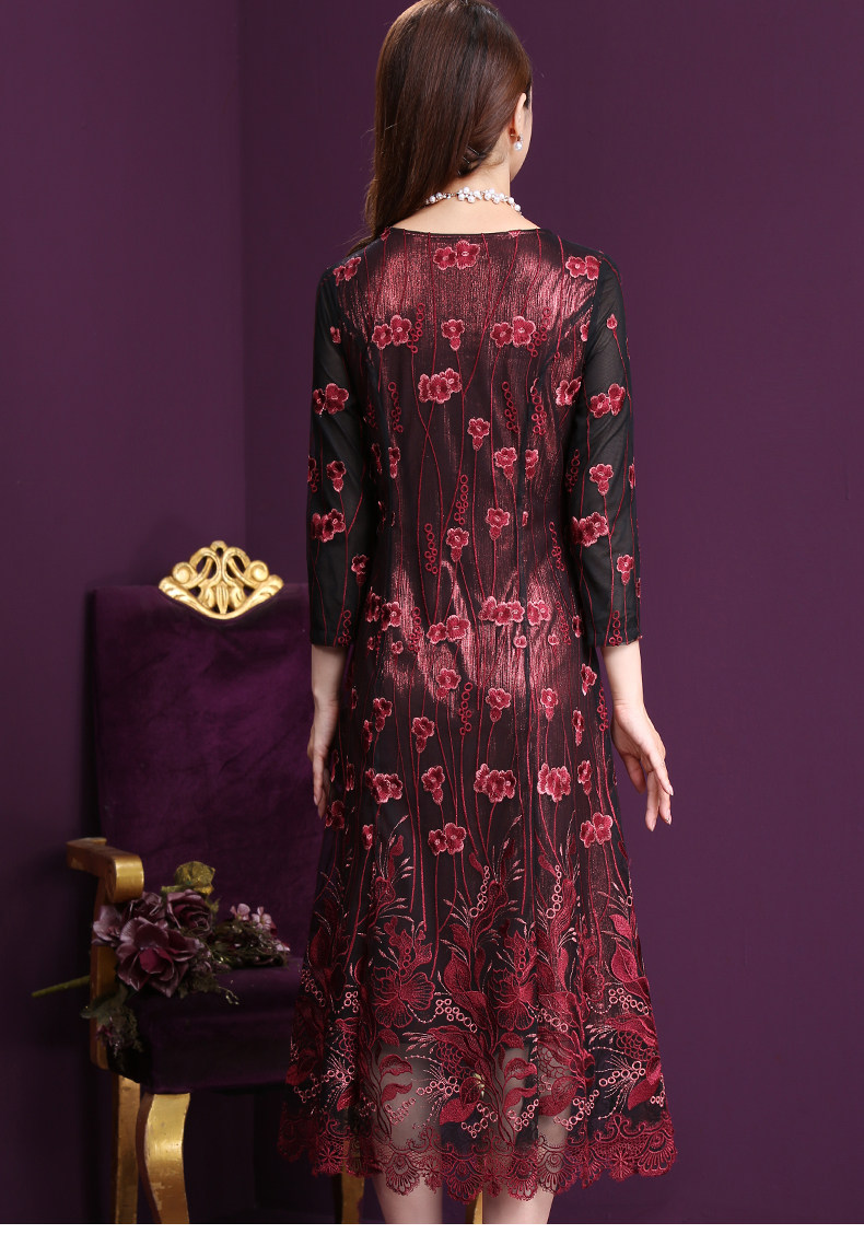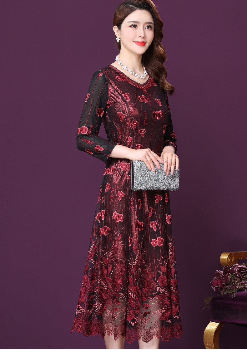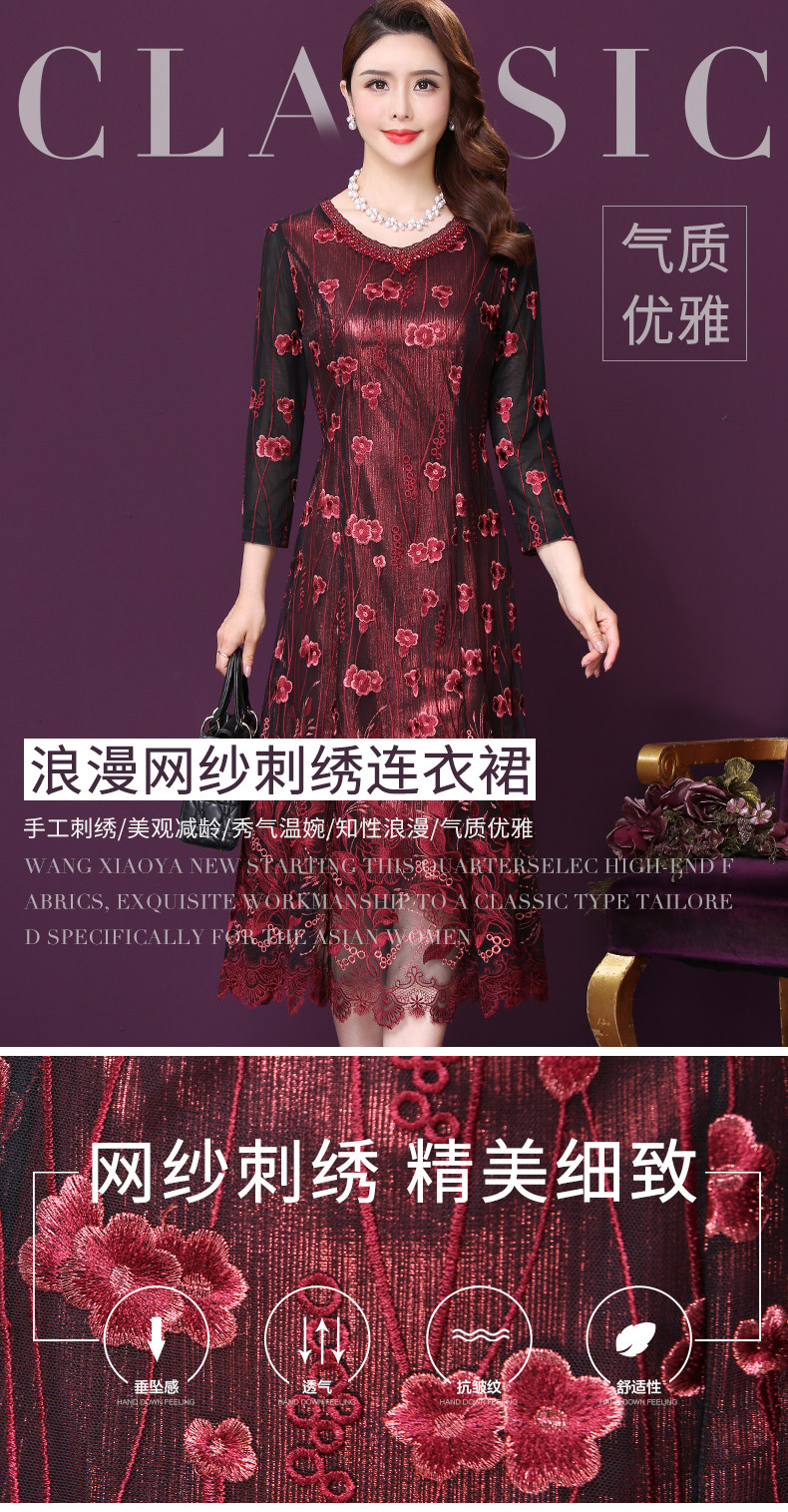 WXY-W-M1-6566新款女婚宴装妈妈礼服网纱法式刺绣A字裙
