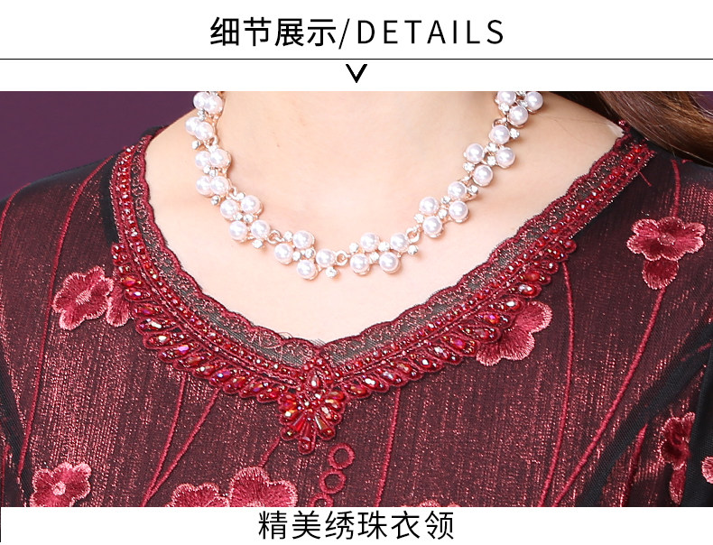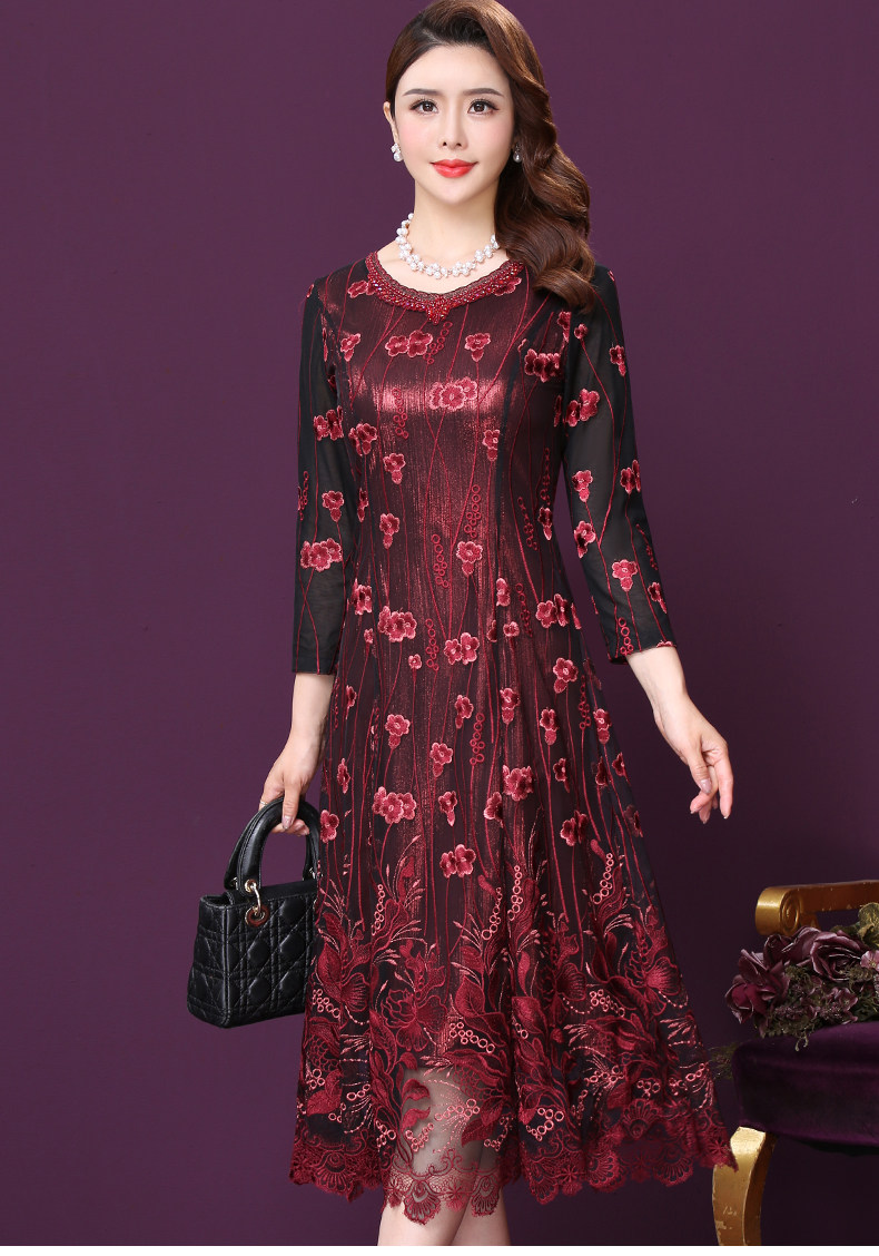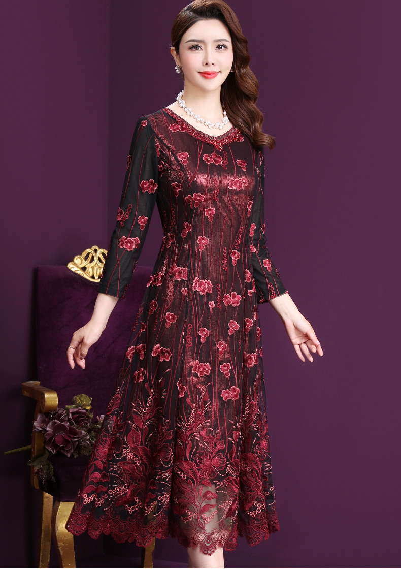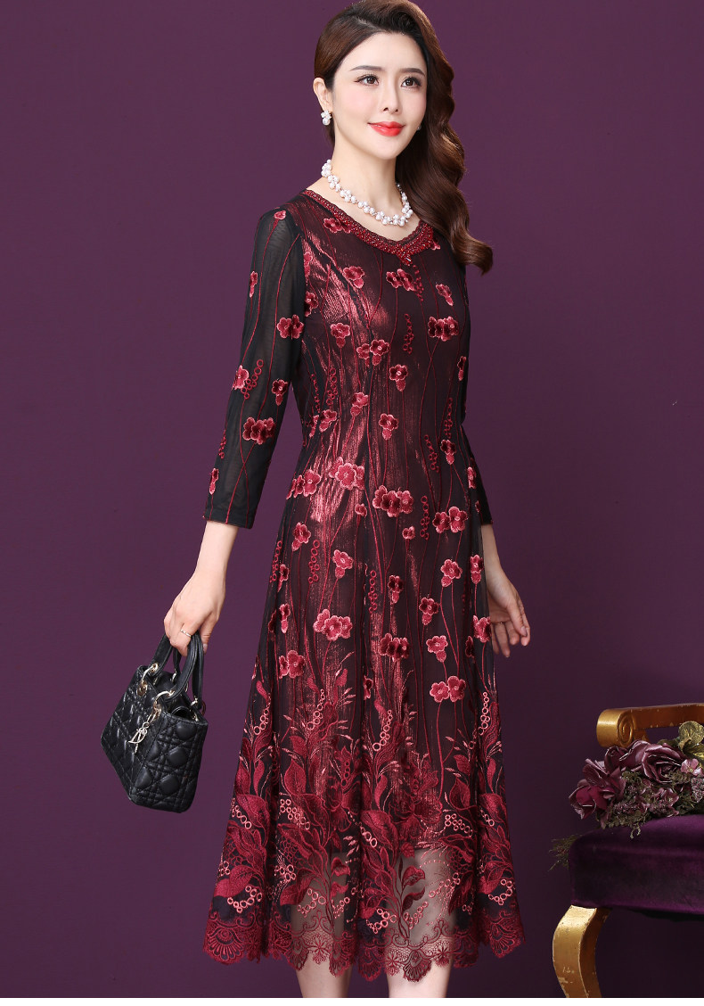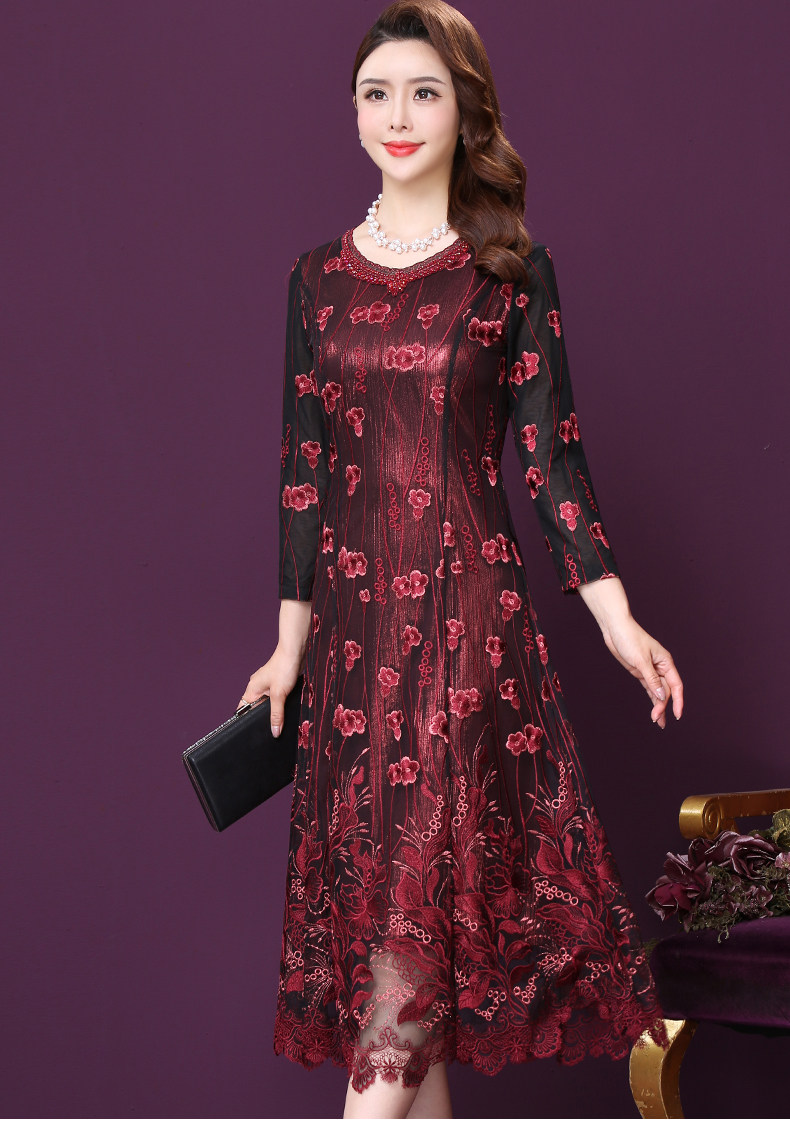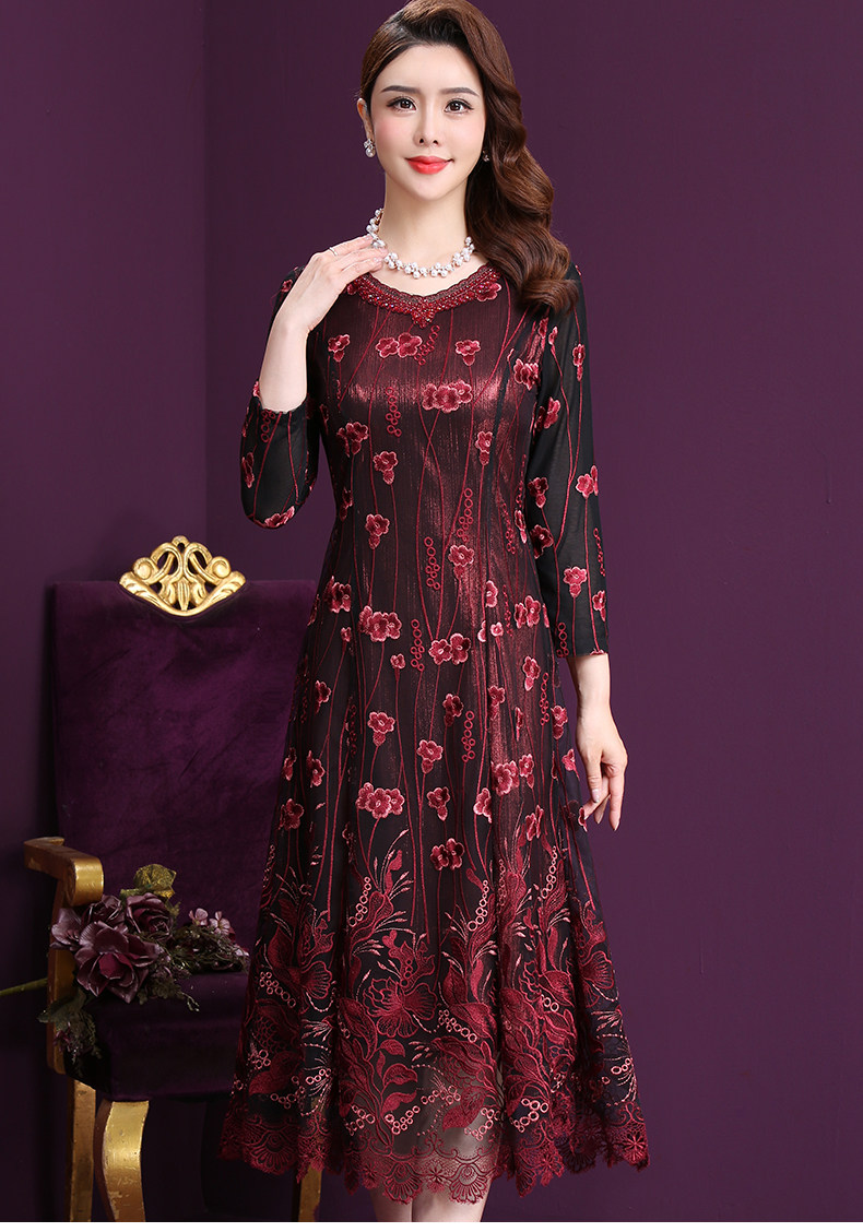 WXY-W-M1-6566新款女婚宴装妈妈礼服网纱法式刺绣A字裙