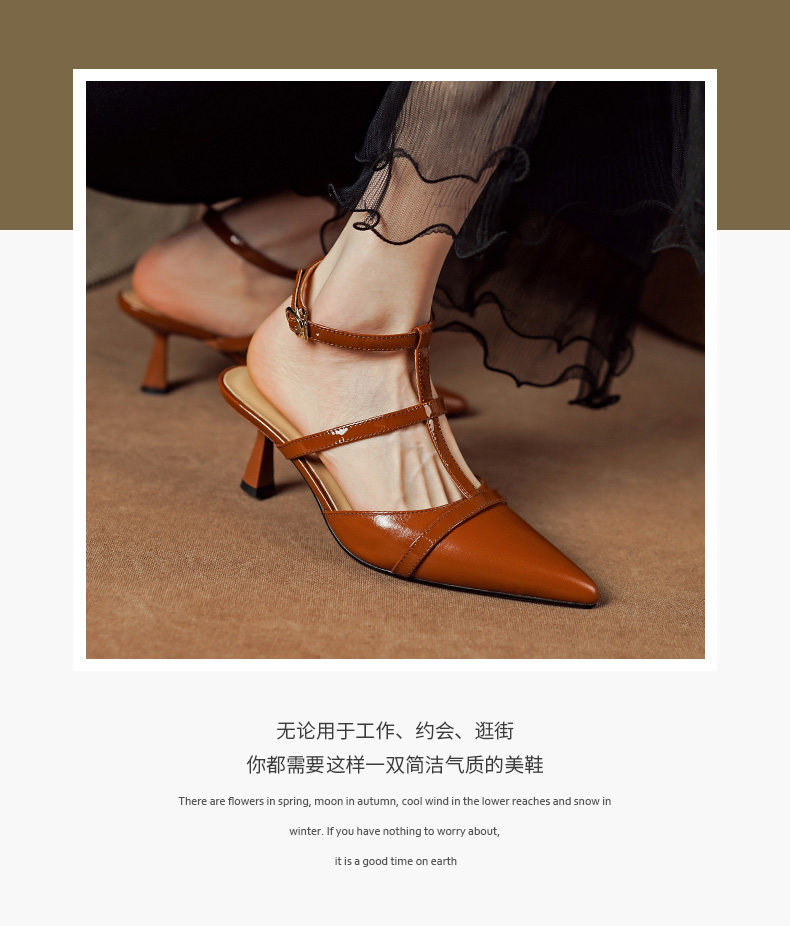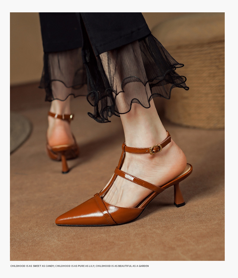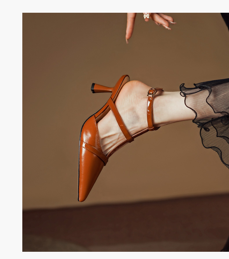 性感优雅,尖头真皮高跟凉鞋PS1291