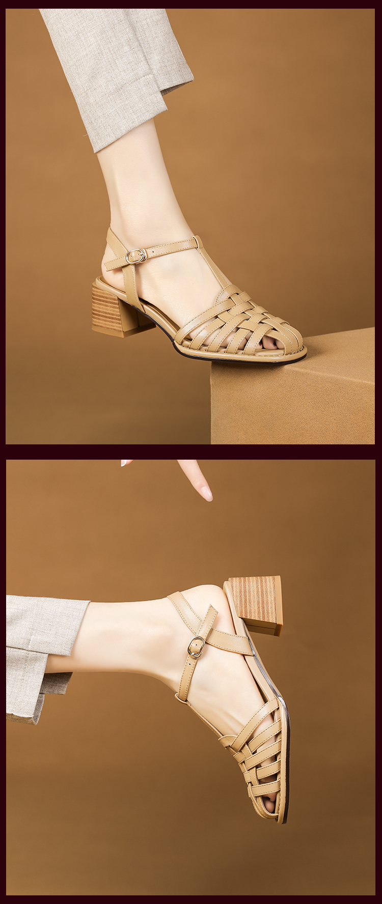 夏季新款,真皮编织粗跟凉鞋XYM-k777