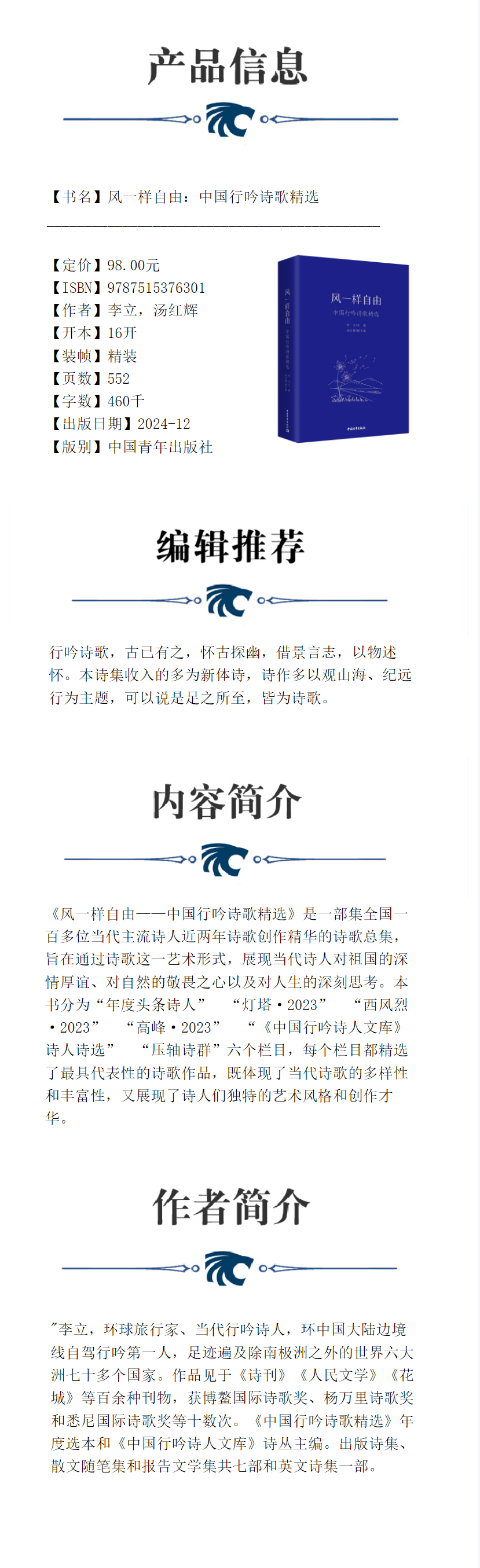 风一样自由:中国行吟诗歌精选 李立 汤红辉著 中国青年出版社