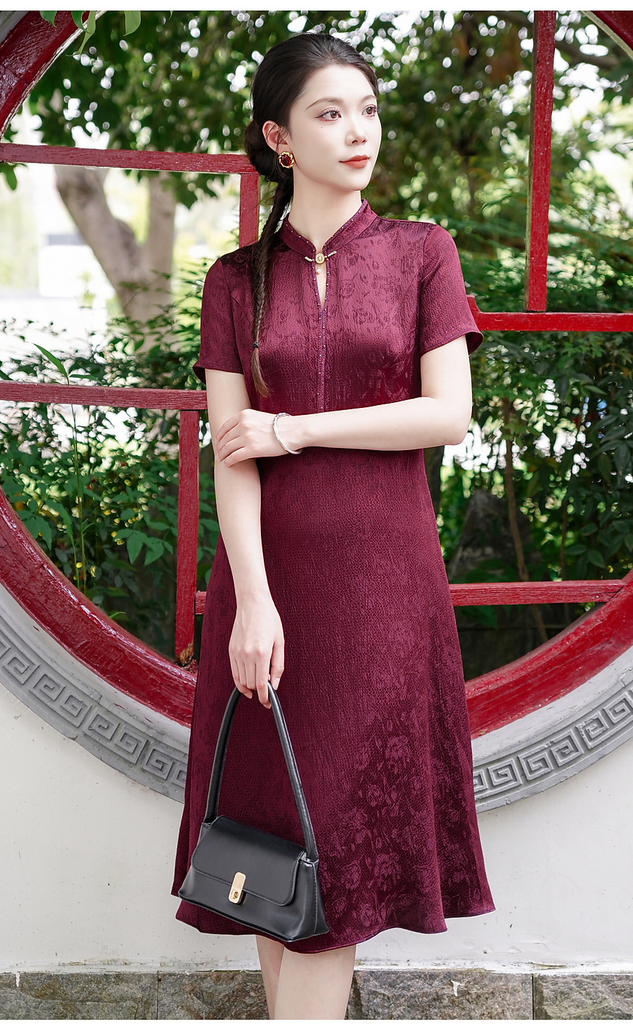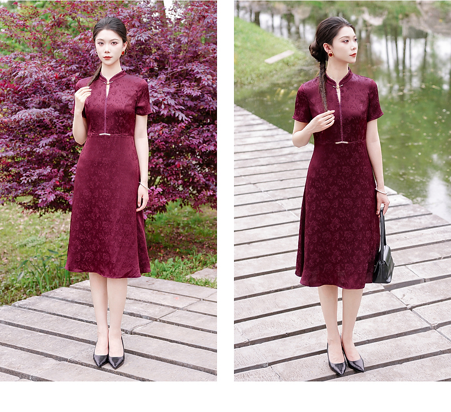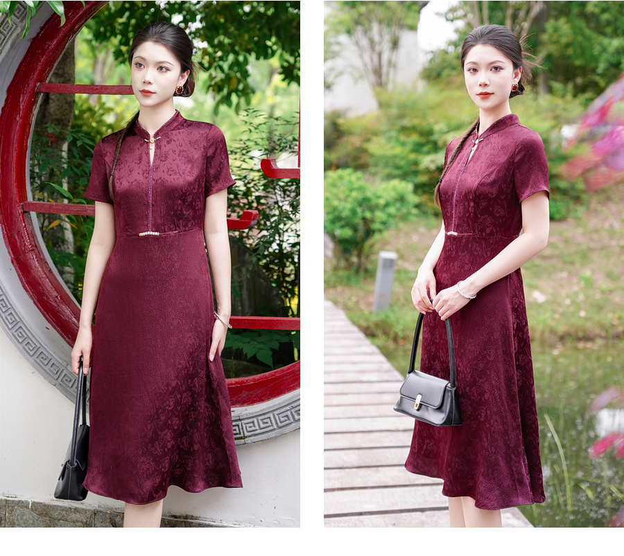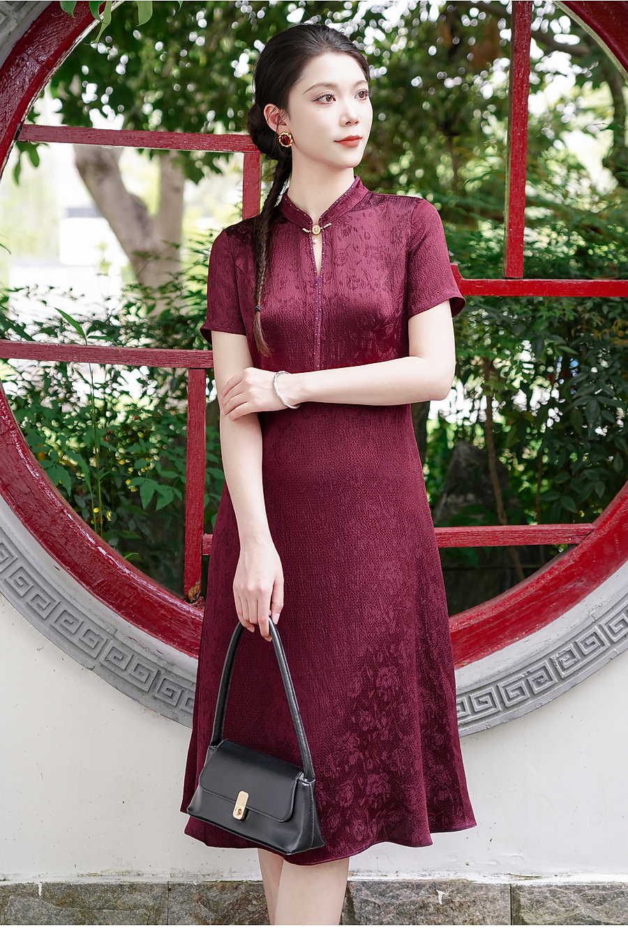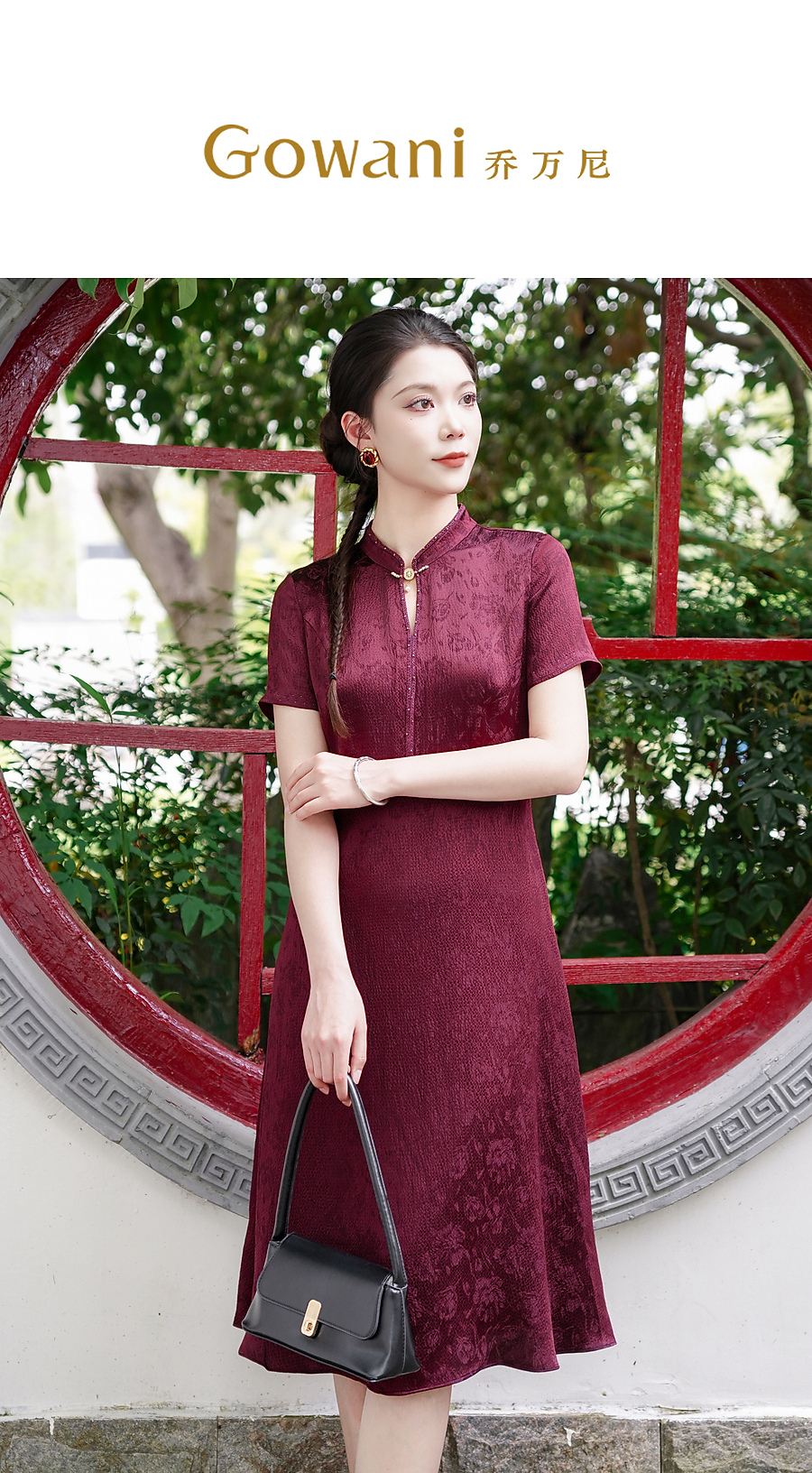 乔万尼2026夏季新款桑蚕丝连衣裙100%真丝旗袍中长款提花EK2E173