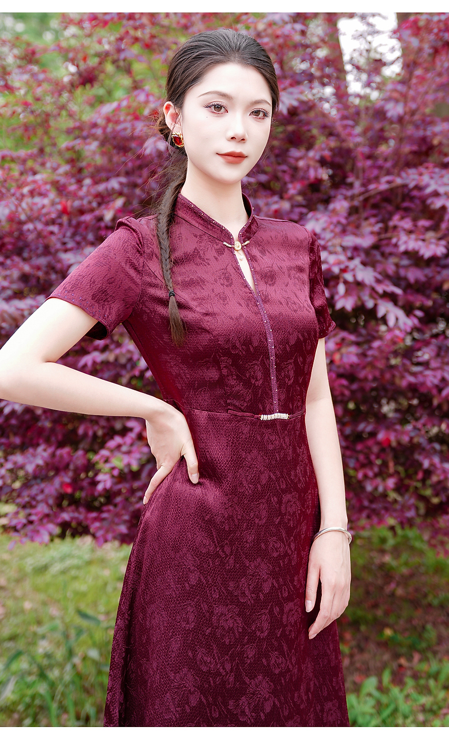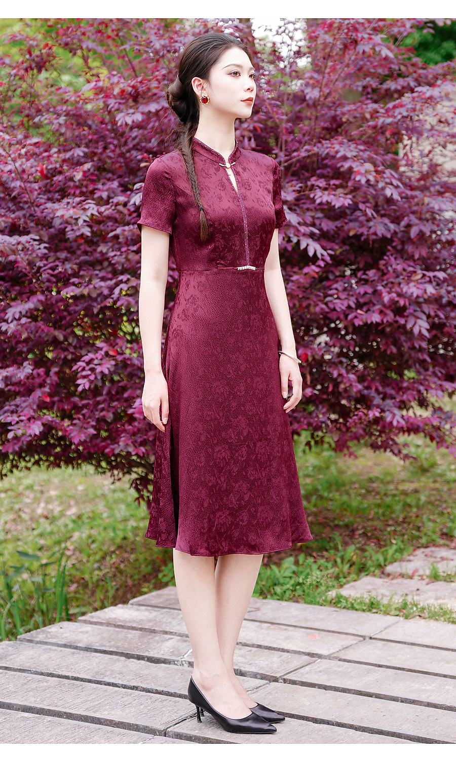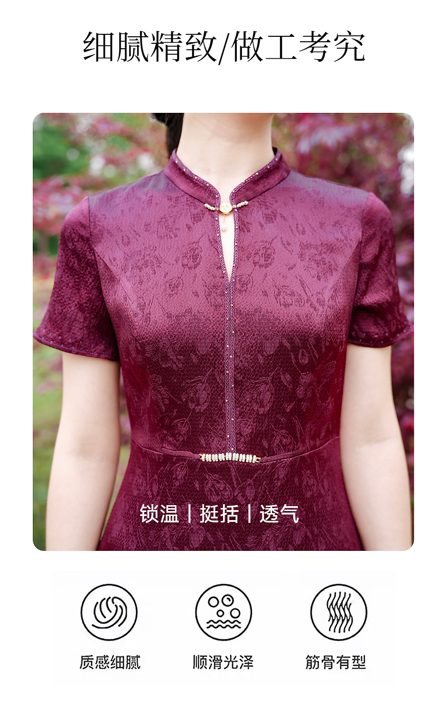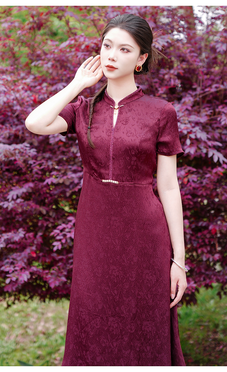 乔万尼2026夏季新款桑蚕丝连衣裙100%真丝旗袍中长款提花EK2E173