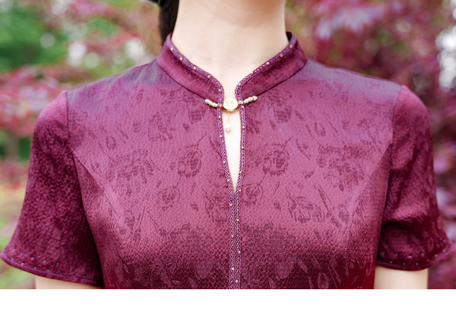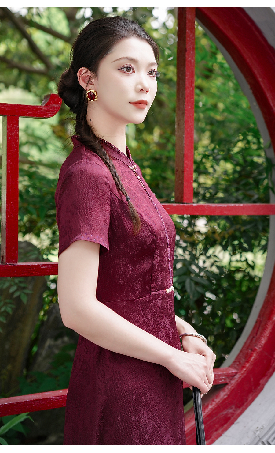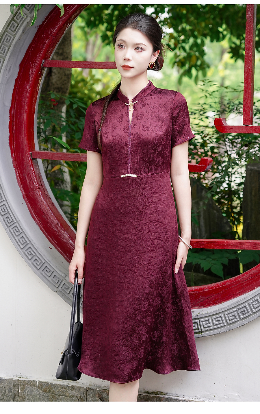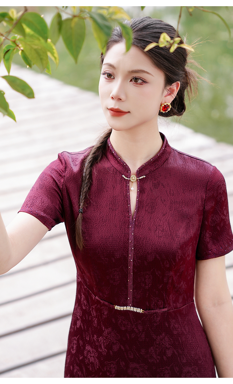 乔万尼2026夏季新款桑蚕丝连衣裙100%真丝旗袍中长款提花EK2E173